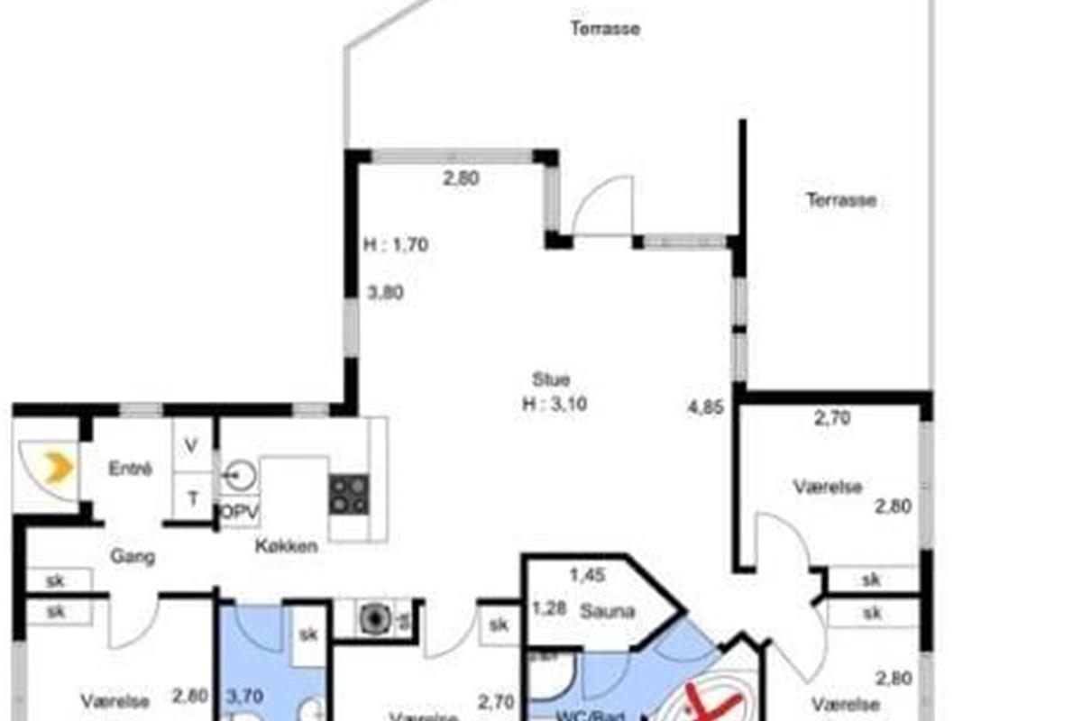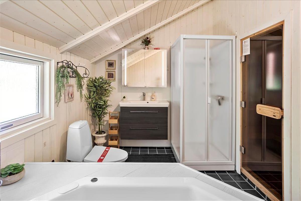 Vom Wohnzimmer gehen die drei weiteren Schlafzimmer ab, sowie ein weiteres Badezimmer, das WC und Dusche und eine Sauna enthält.
