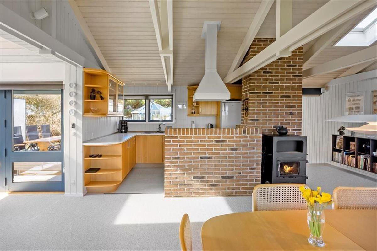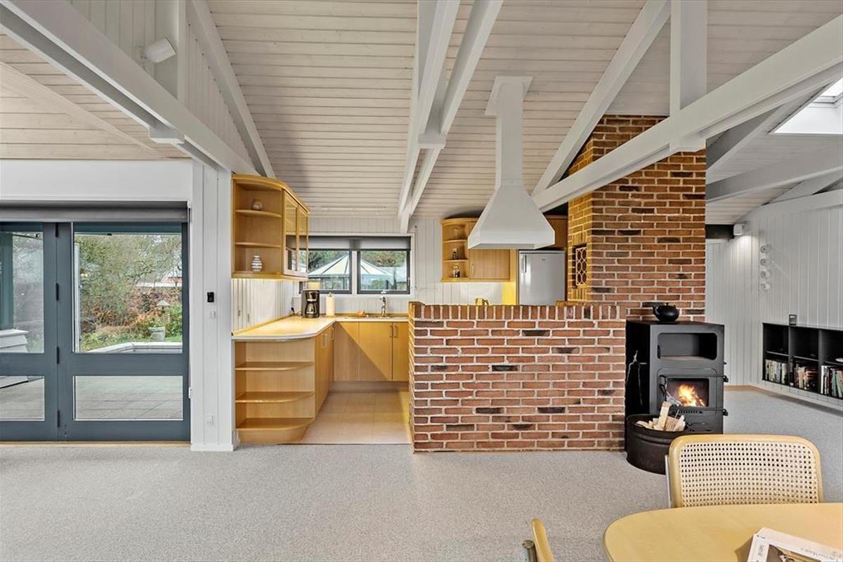 Das Herzstück des Hauses bildet die helle, offene Küche, die nahtlos in den Wohn- und Essbereich übergeht. Von hier aus genießt man nicht nur einen herrlichen Blick auf das Wasser, sondern hat auch direkten Zugang zur großzügigen Terrasse und dem gepflegten Garten.