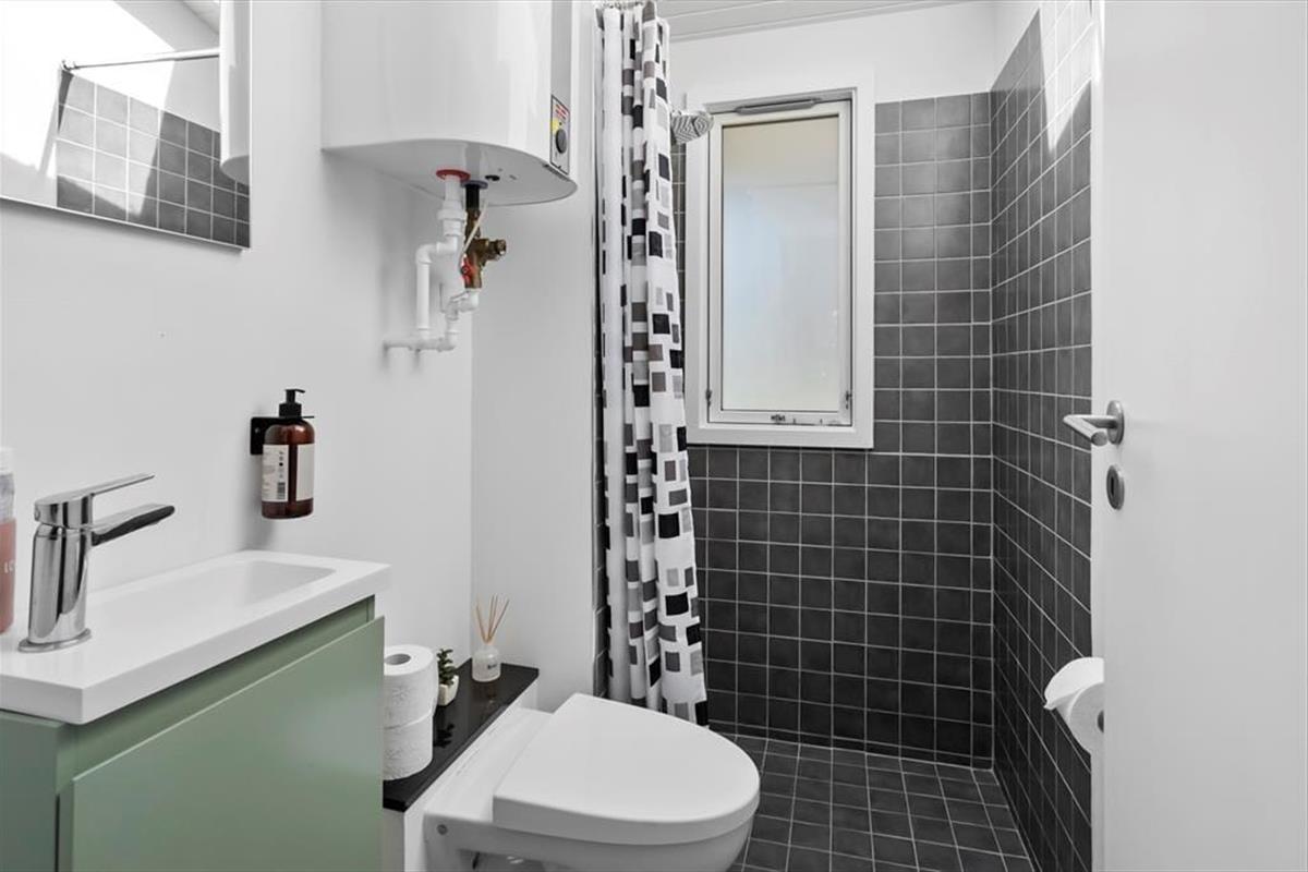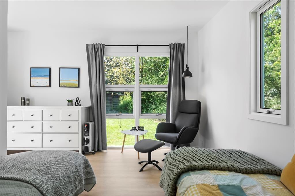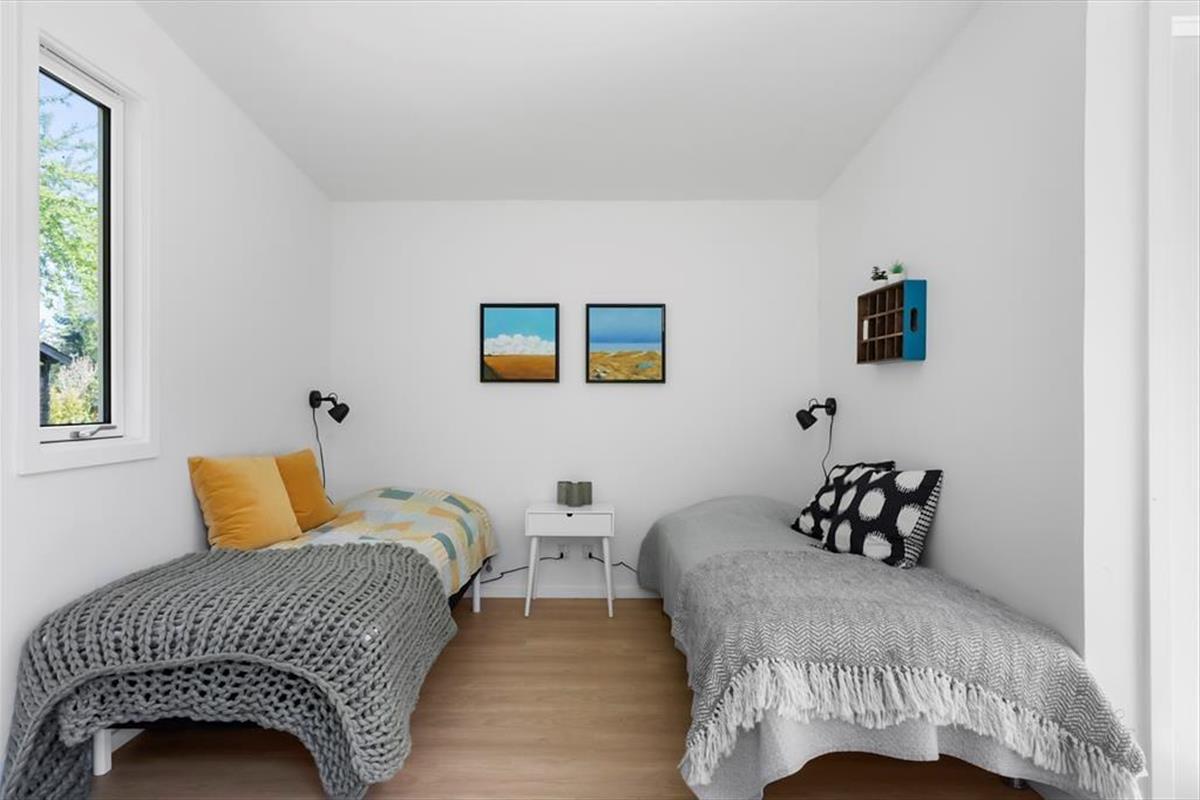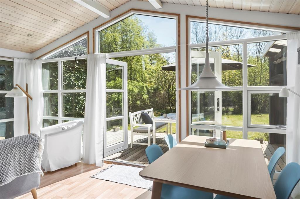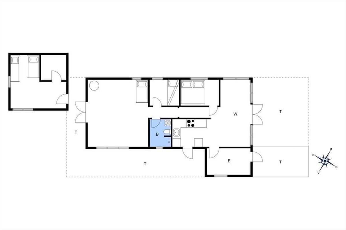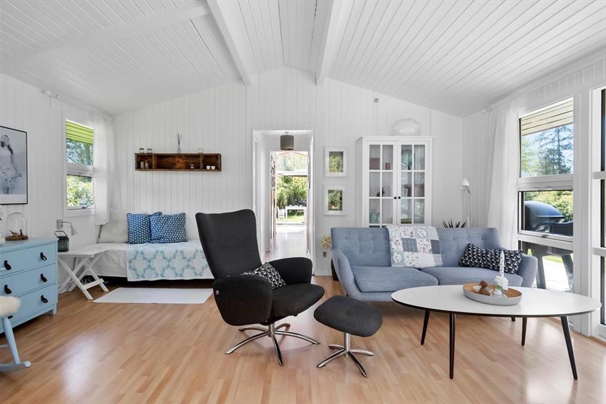 Das Sommerhaus bietet eine Eingangshalle mit Zugang zur offenen Küche des Hauses. Hier gibt es einen Essbereich und eine gemütliche Ecke. Von hier aus gelangt man auf die wunderschönen Terrassen des Hauses. Darüber hinaus bietet das Haus ein großes, schönes Wohnzimmer mit einem Holzofen, 2 gute Schlafzimmer mit einem Doppelbett in einem Schlafzimmer und einem Etagenbett im anderen Schlafzimmer. Vom Wohnzimmer aus hat man Zugang zur Terrasse und zum Anbau des Hauses. Der Anbau verfügt über 2 Schlafplätze mit 2 Einzelbetten. Schließlich bietet das Cottage ein Badezimmer mit Toilette, Dusche und Waschbecken.
