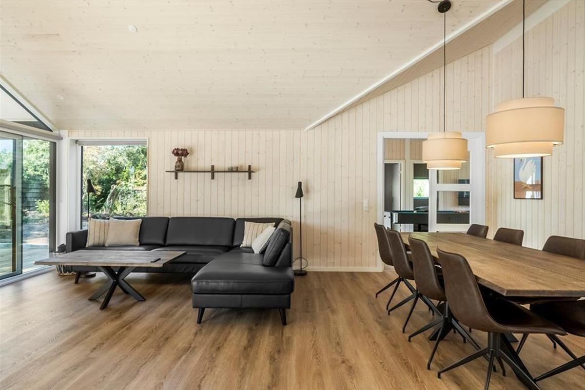 Das Sommerhaus liegt auf einem schönen Grundstück von 1.138 m² und bietet viel Platz zum Entspannen und für Aktivitäten. Die 100 m² große Holzterrasse ist mit Gartenmöbeln, Sonnenliegen und einem Grill ausgestattet – ideal für gemütliche Mahlzeiten und entspannte Momente in der Sonne. Darüber hinaus lädt eine großzügige Rasenfläche zum Spielen, Ballspielen und für jede Menge Outdoor-Spaß für Kinder und Erwachsene ein.