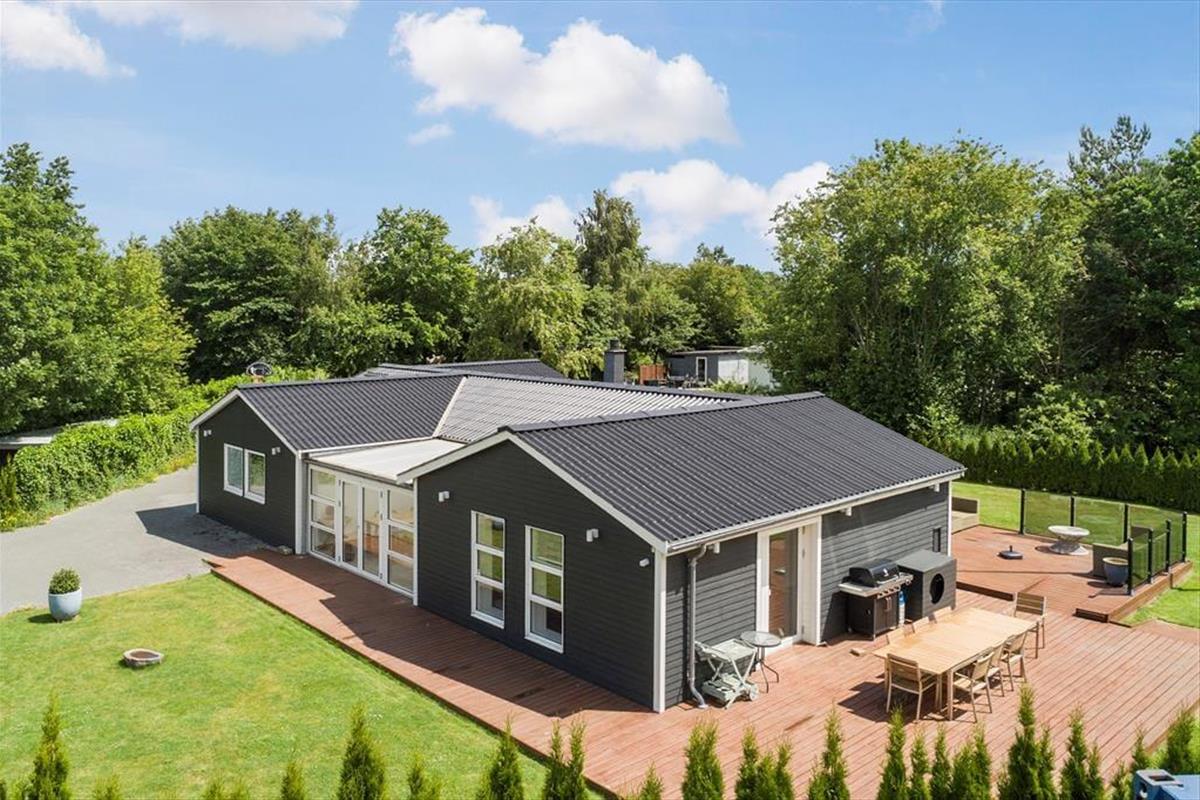 Das Ferienhaus verfügt über eine schöne, große Holzterrasse mit Gartenmöbeln, Grill und Sonnenliegen. Auf der Terrasse befindet sich auch eine Außendusche. Darüber hinaus lädt eine große Rasenfläche zum Verweilen ein.