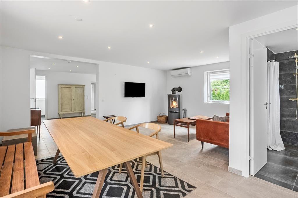 Der Mittelpunkt des Ferienhauses ist die helle, offene Wohnküche, die in den Essbereich und eine einladende Sofaecke übergeht. Von hier aus gelangt man direkt auf die schöne Terrasse, auf der man schöne Stunden verbringen kann.