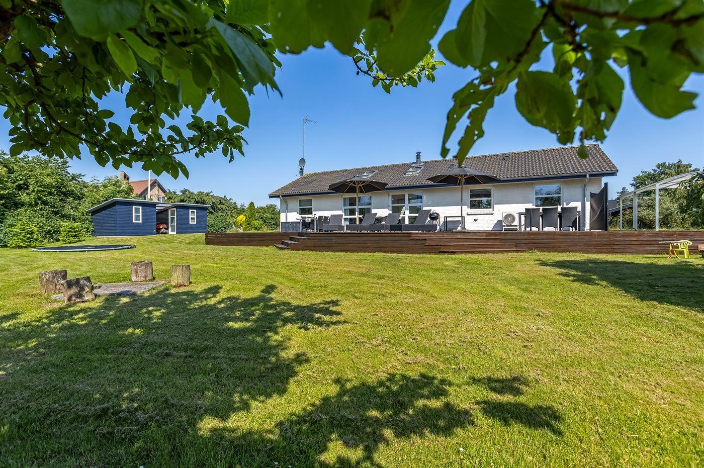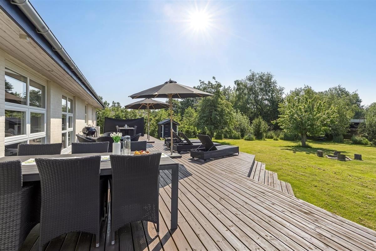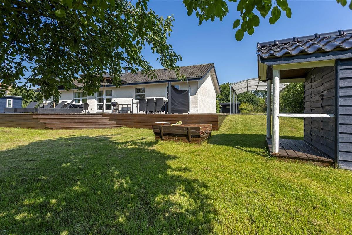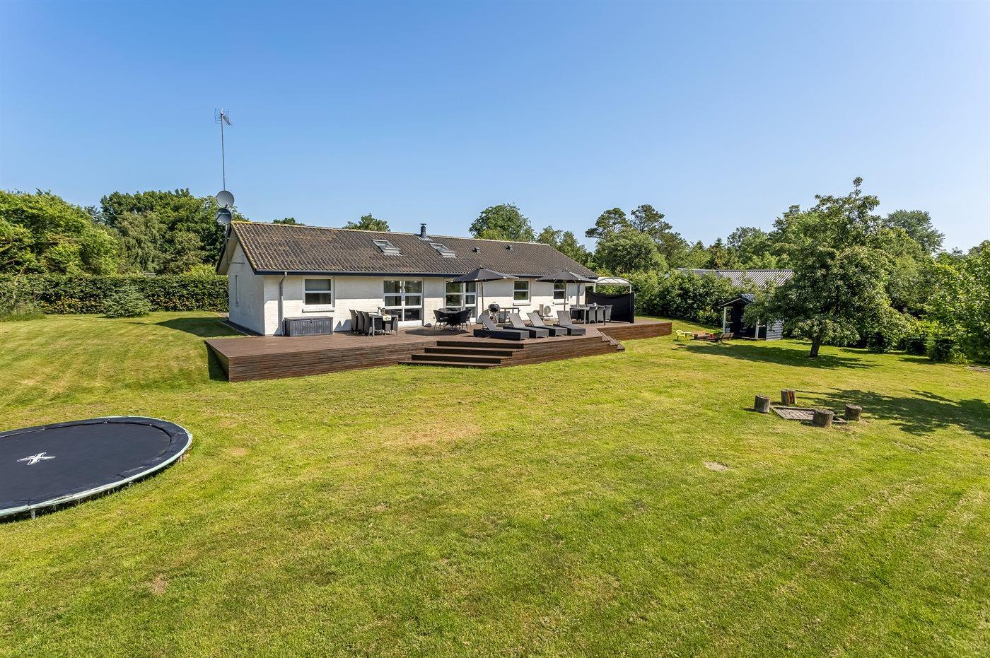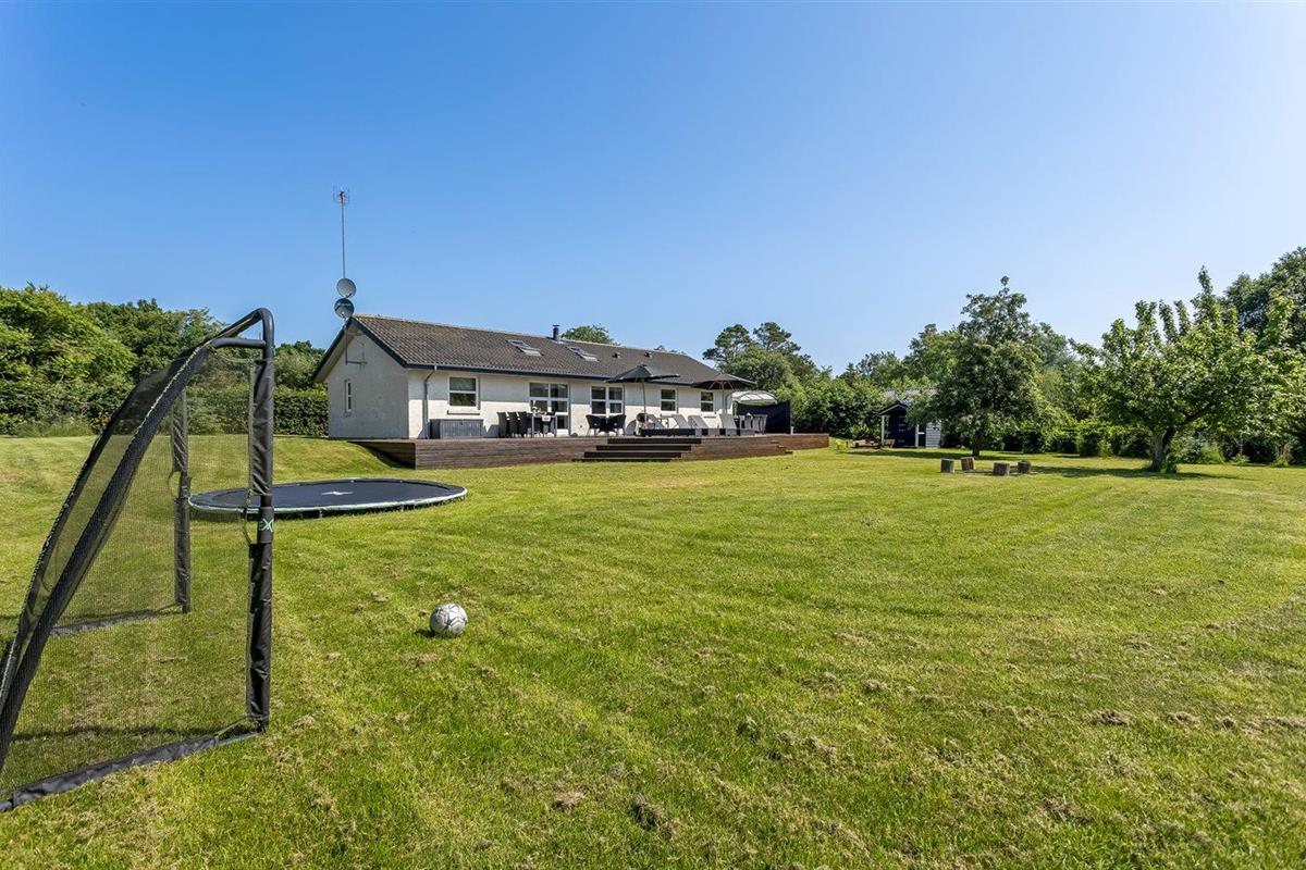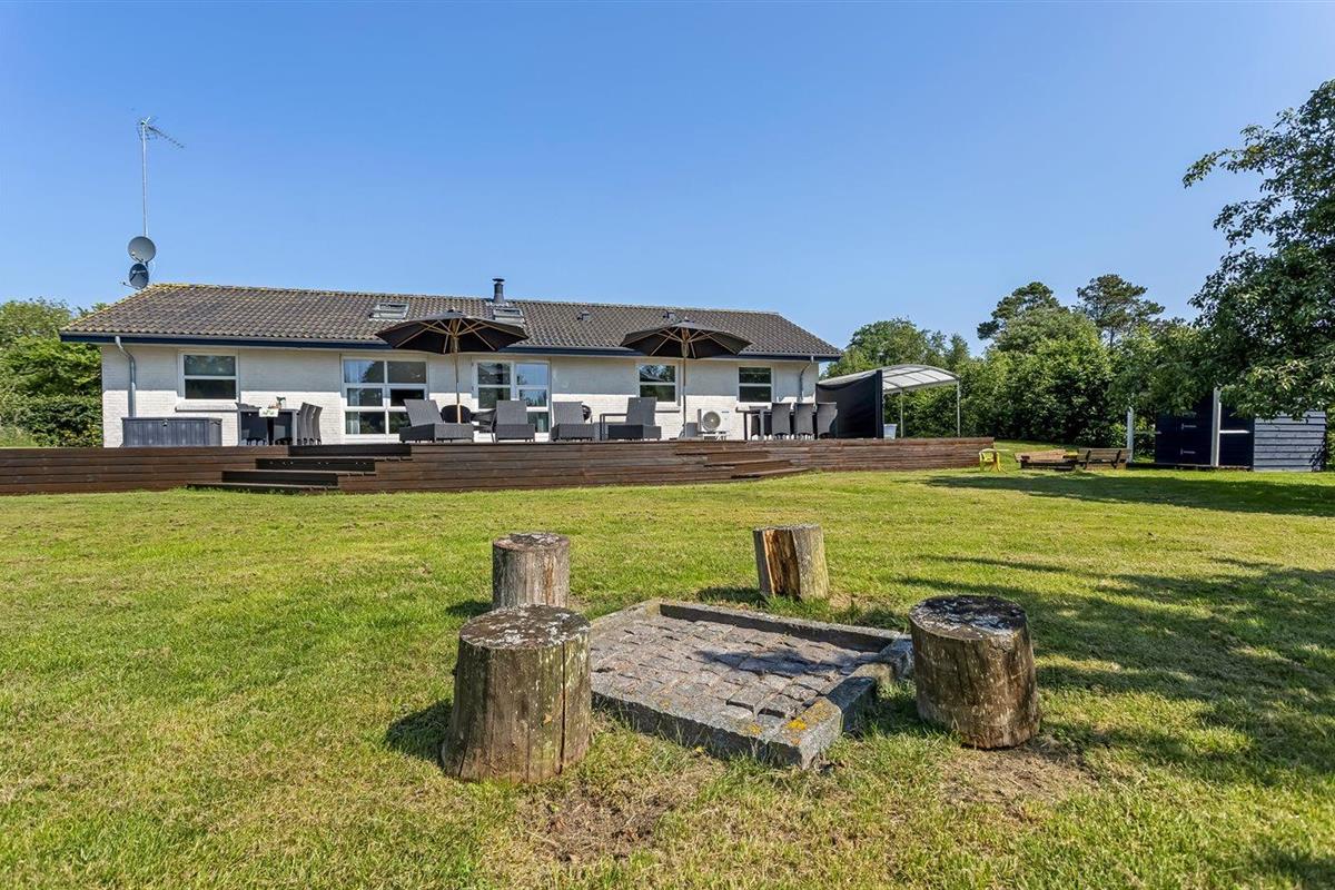 De vakantiewoning is gelegen op een 1900 m² groot aangelegde tuin. Afstand tot de zee 200 m. Dichtstbijzijnde winkel 100 m. Er is een golfbaan op een afstand van 2000 m. Bij de vakantiewoning hoort 100 m² terras. Zandbak. Speelhuisje. Trampoline. Voetbaldoel. Afstand tot speelplaats 100 m.Vuurplaats. Barbecue. Carport ter beschikking. Parkeerplaats bij het huis.