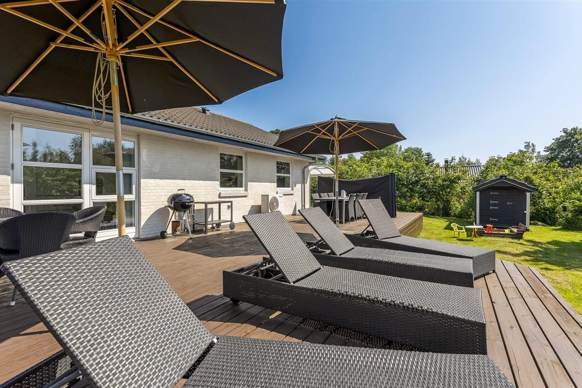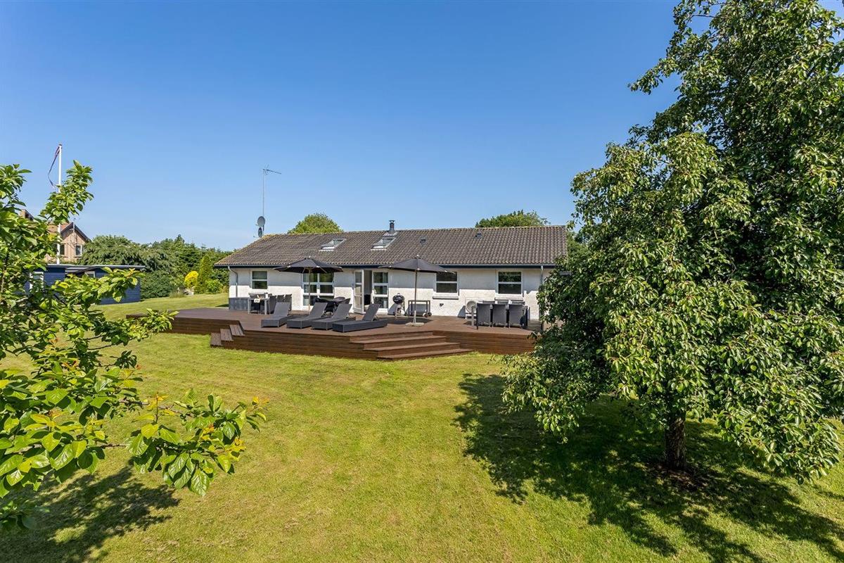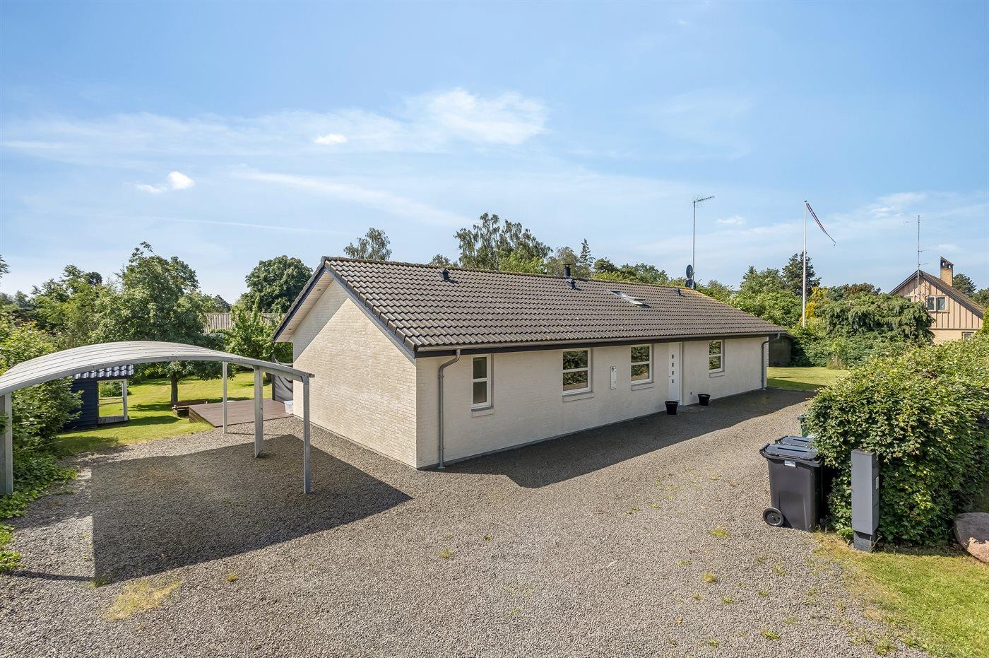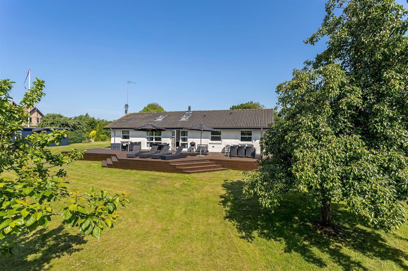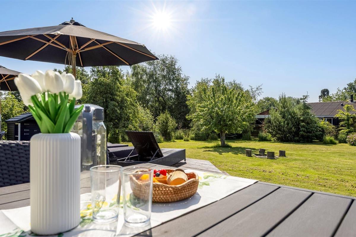 De vakantiewoning is gelegen op een 1900 m² groot aangelegde tuin. Afstand tot de zee 200 m. Dichtstbijzijnde winkel 100 m. Er is een golfbaan op een afstand van 2000 m. Bij de vakantiewoning hoort 100 m² terras. Zandbak. Speelhuisje. Trampoline. Voetbaldoel. Afstand tot speelplaats 100 m.Vuurplaats. Barbecue. Carport ter beschikking. Parkeerplaats bij het huis.