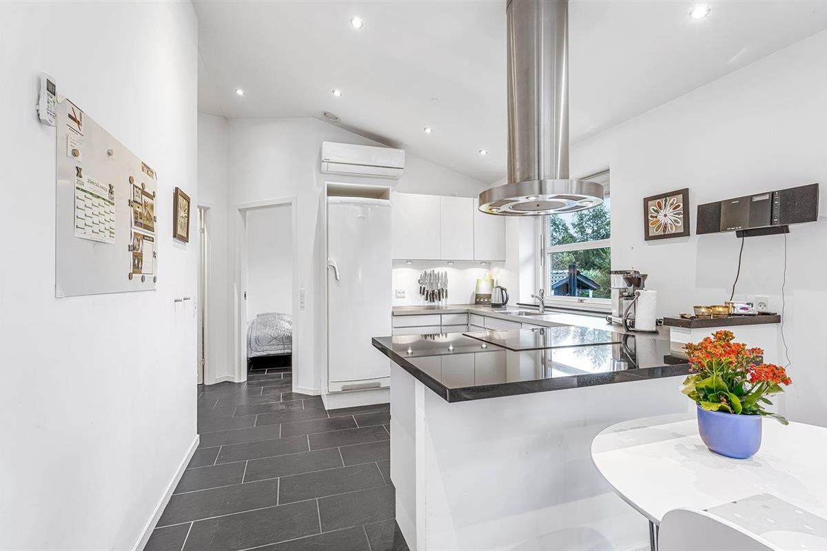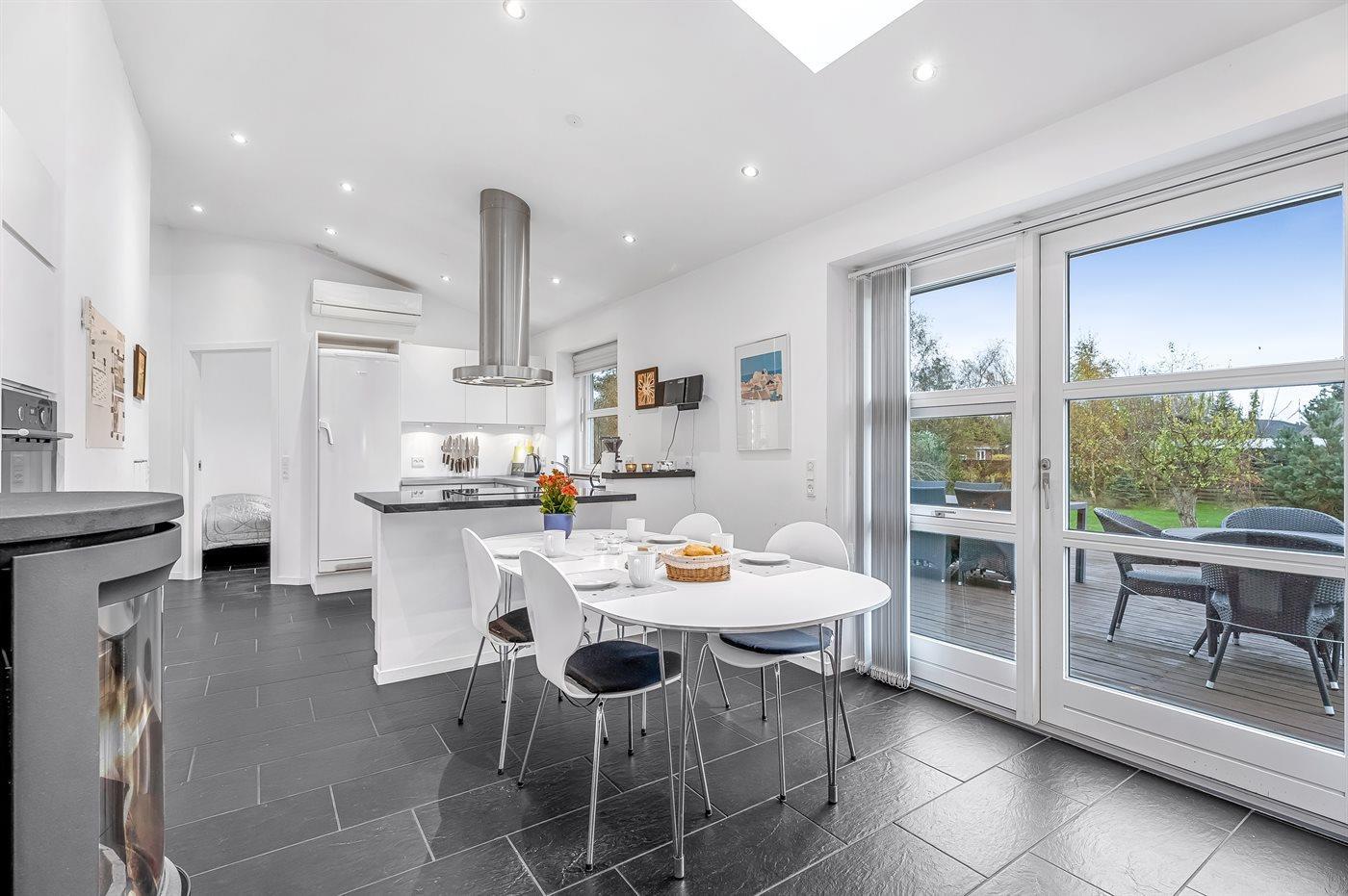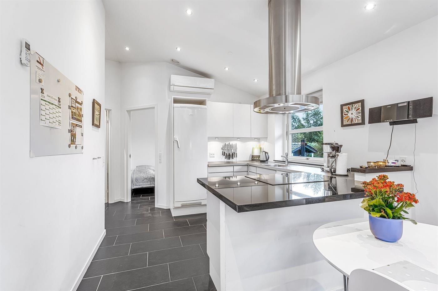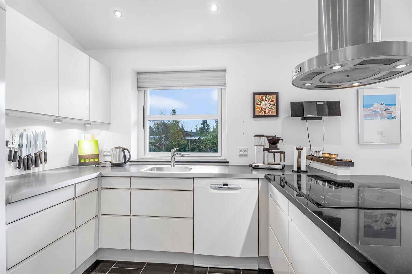 De keuken is uitgerust met koelkast Er is 4 inductiekookplaten, heteluchtoven, magnetron en vaatwasser.