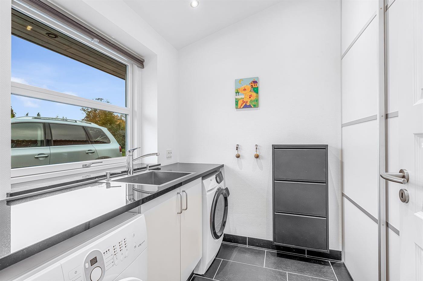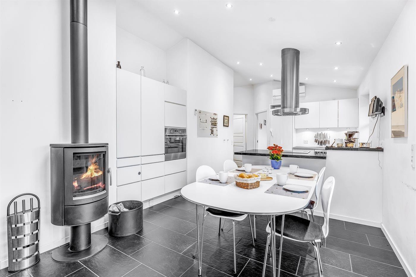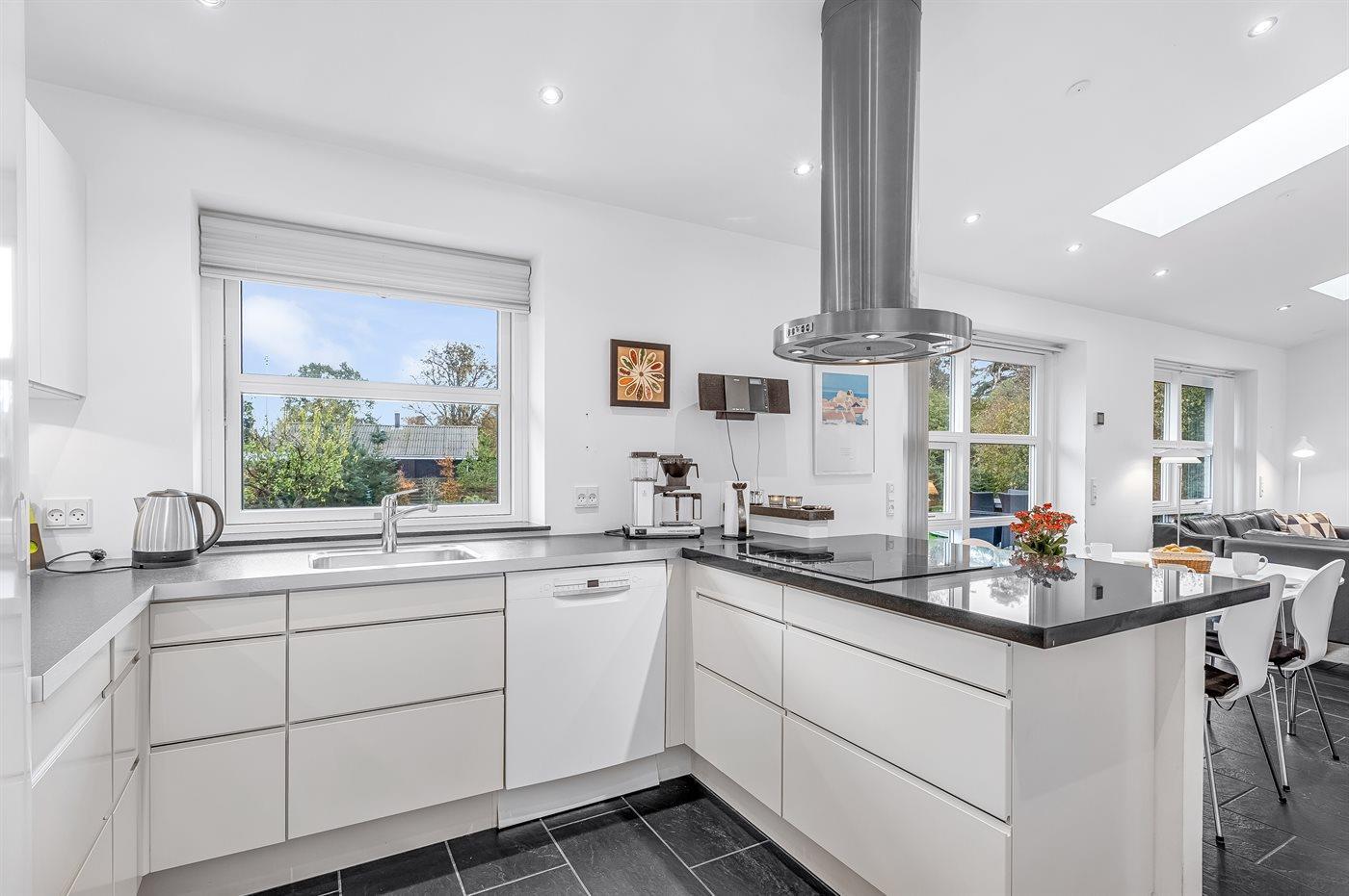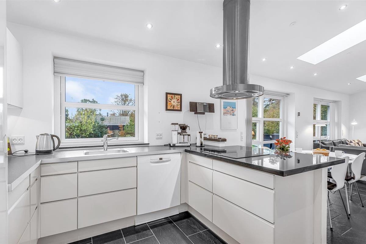 De keuken is uitgerust met koelkast Er is 4 inductiekookplaten, heteluchtoven, magnetron en vaatwasser.