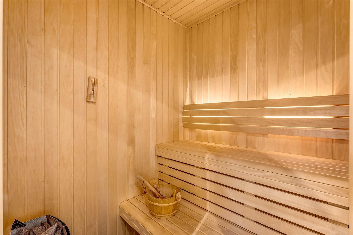 Er is 2 badkamers met douchehok en 2 toiletten. Er is vloerverwarming in 2 van de badkamers.Stoomcabine. De sauna biedt de gelegenheid tot ontspanning.