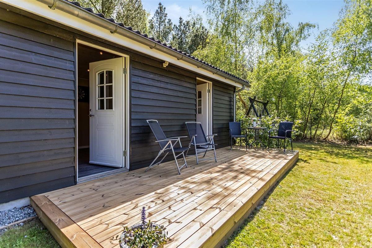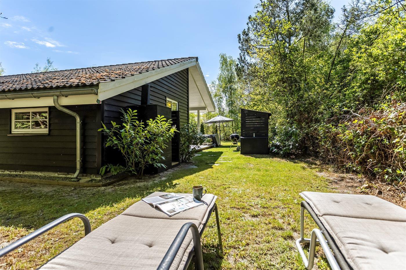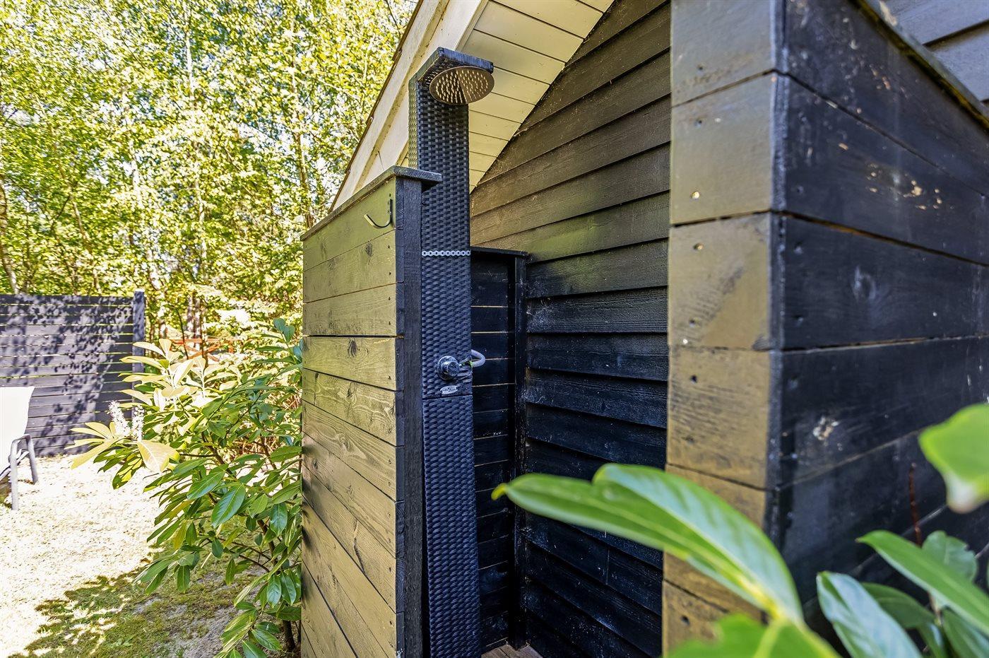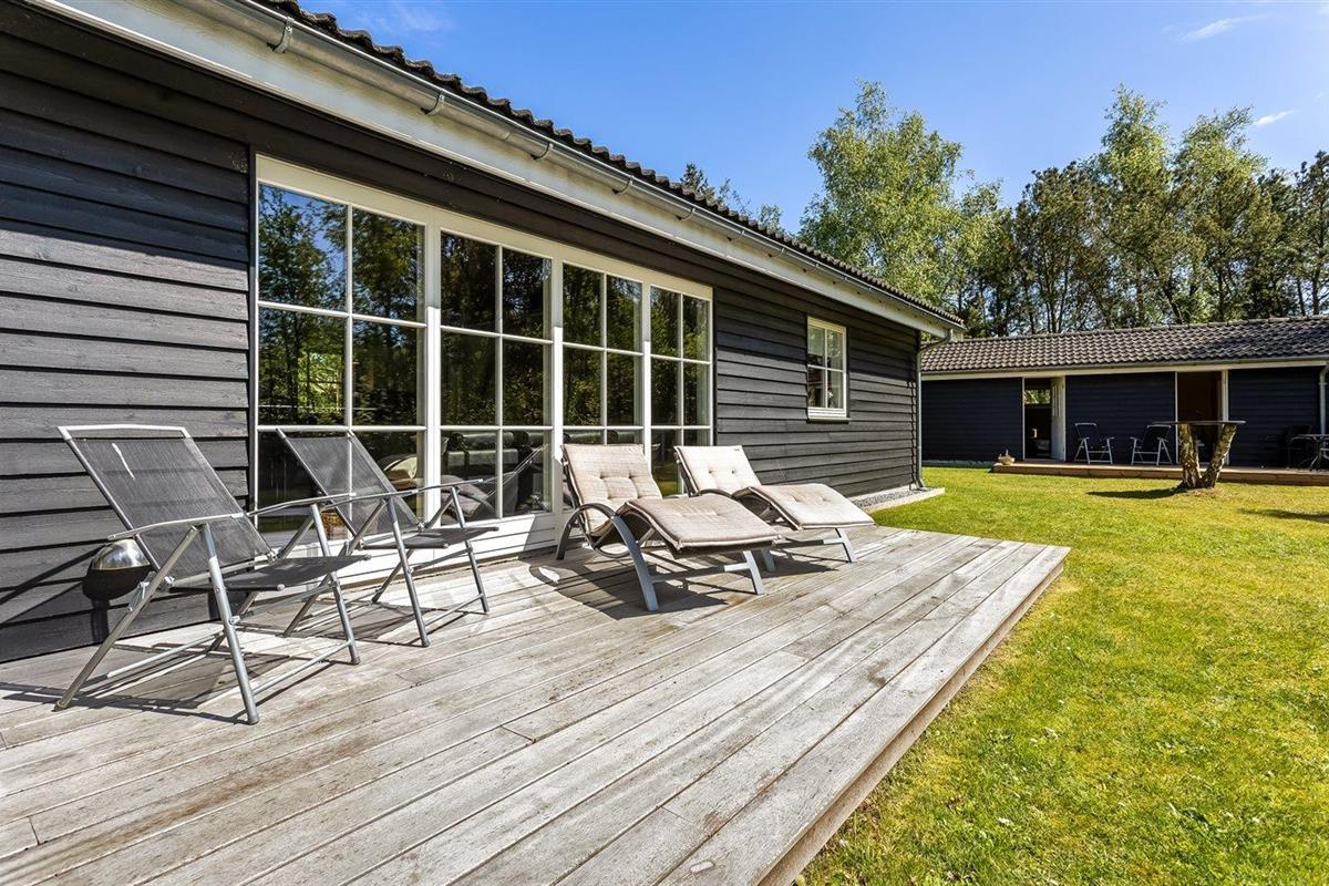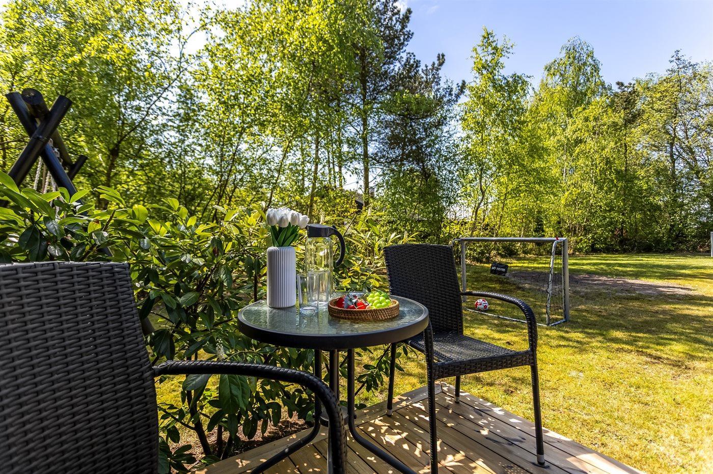 De vakantiewoning is gelegen op een 1000 m² groot natuural grond. De grond is omheind. Afstand tot de zee 1100 m. Bij de vakantiewoning hoort terras. Daarnaast is er een overdekt terras. Schommel. Voetbaldoel. Buitendouche. Barbecue. Parkeerplaats bij het huis.
