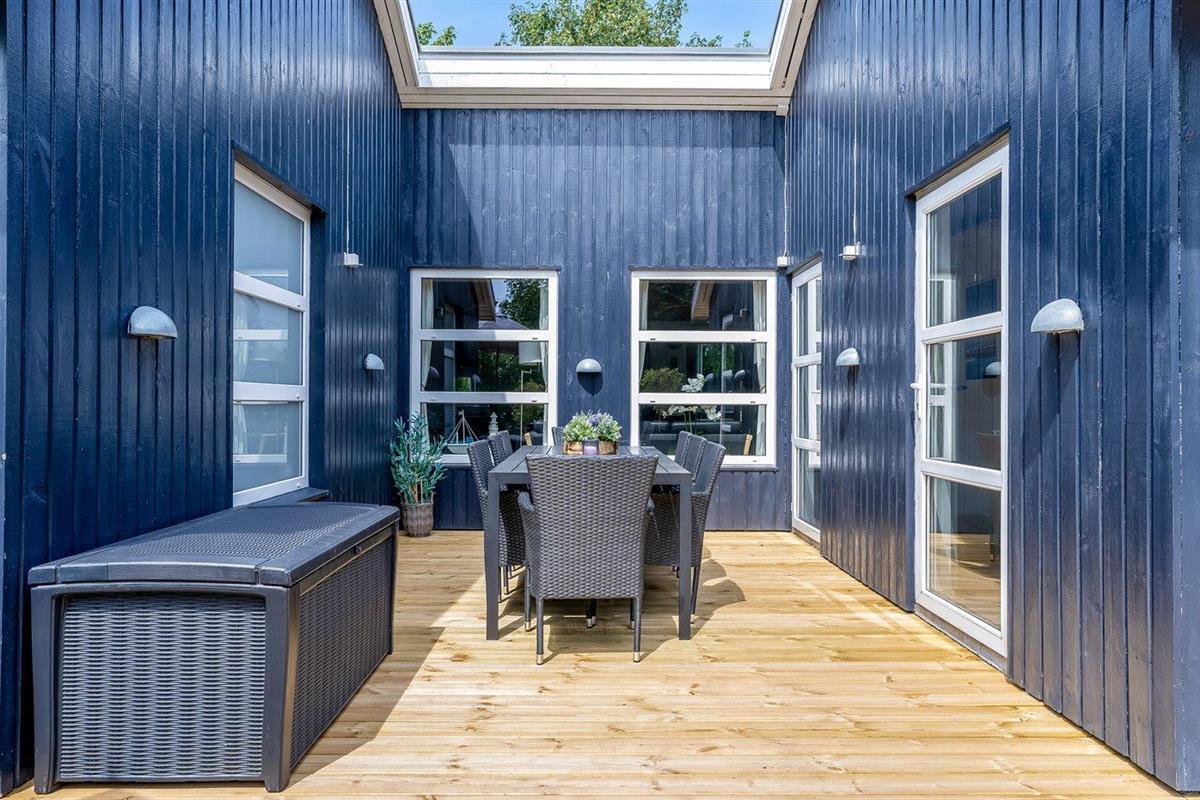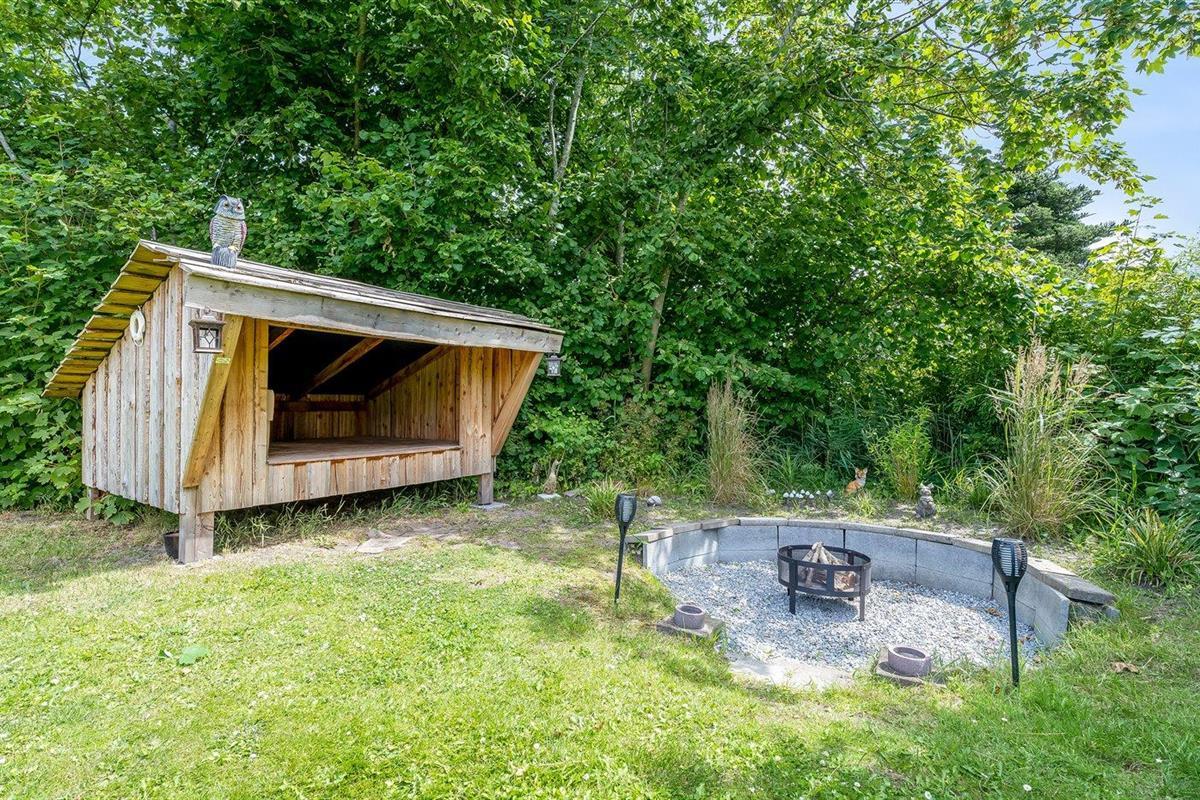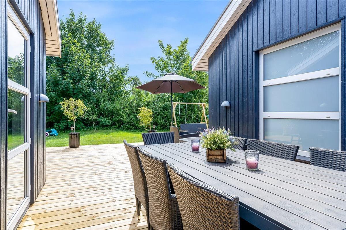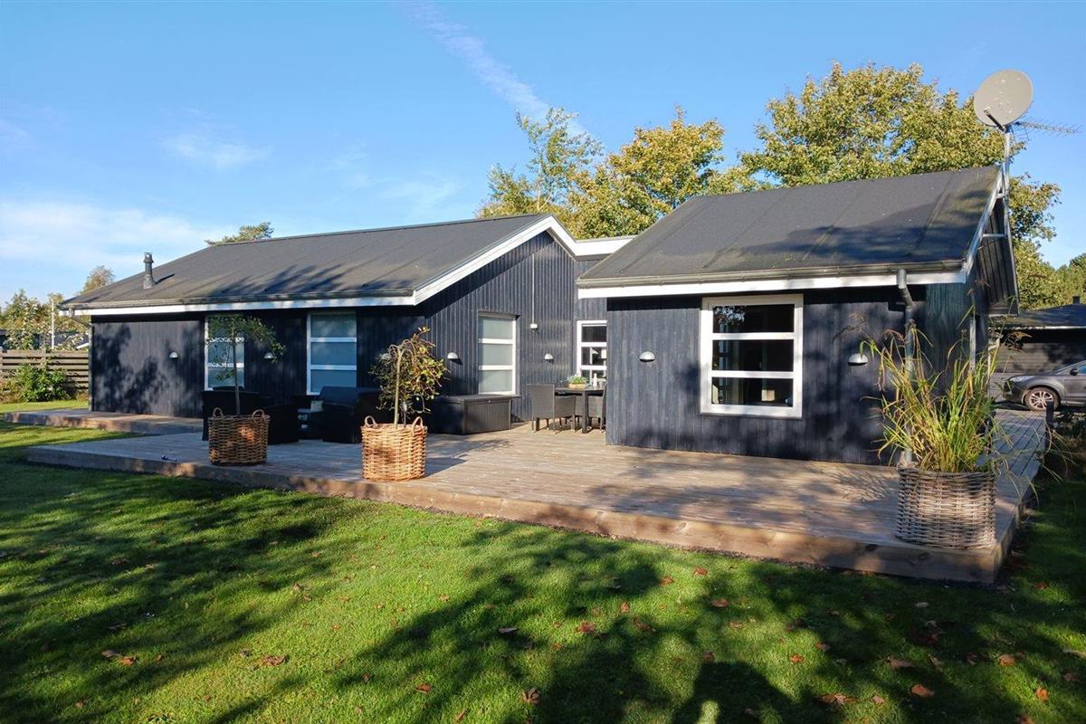 De vakantiewoning is gelegen op een 1186 m² groot aangelegde tuin. De grond is omheind. Afstand tot de zee 800 m. Dichtstbijzijnde winkel 1200 m. Er is een golfbaan op een afstand van 3000 m. Bij de vakantiewoning hoort terras. Daarnaast is er een overdekt terras. Gereedschapsruimte. Schommel. Zandbak. Trampoline. Voetbaldoel.Vuurplaats. Shelter. 2 Barbecues. Er zijn 2 bolgrills beschikbaar. Parkeerplaats bij het huis.