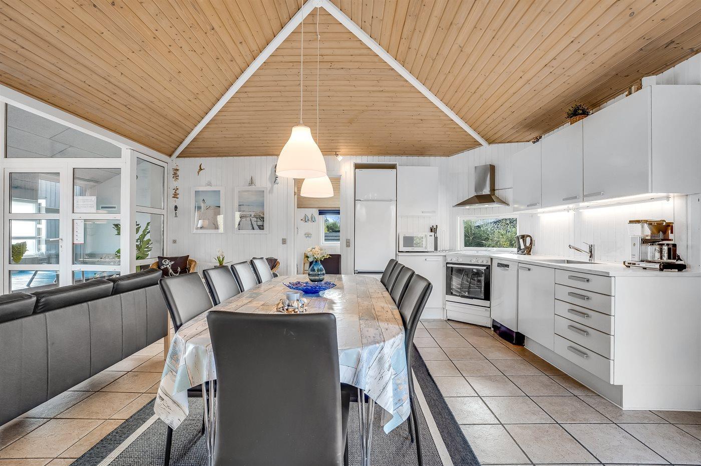 De keuken is uitgerust met 1 koelkasten. Er zijn 4 keramische kookplaten, heteluchtoven, magnetron en vaatwasser. Extra koelkast ter beschikking.