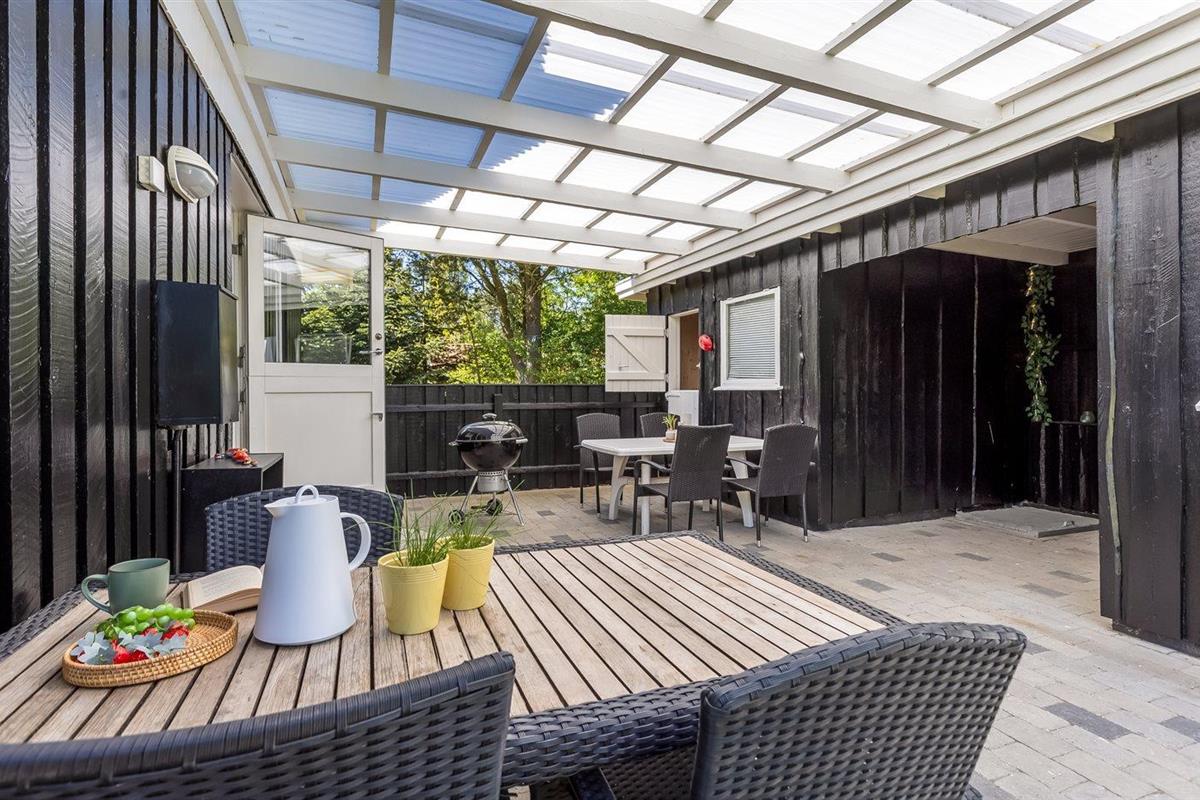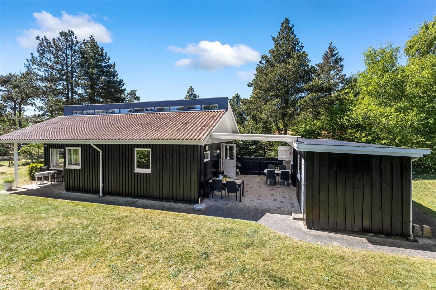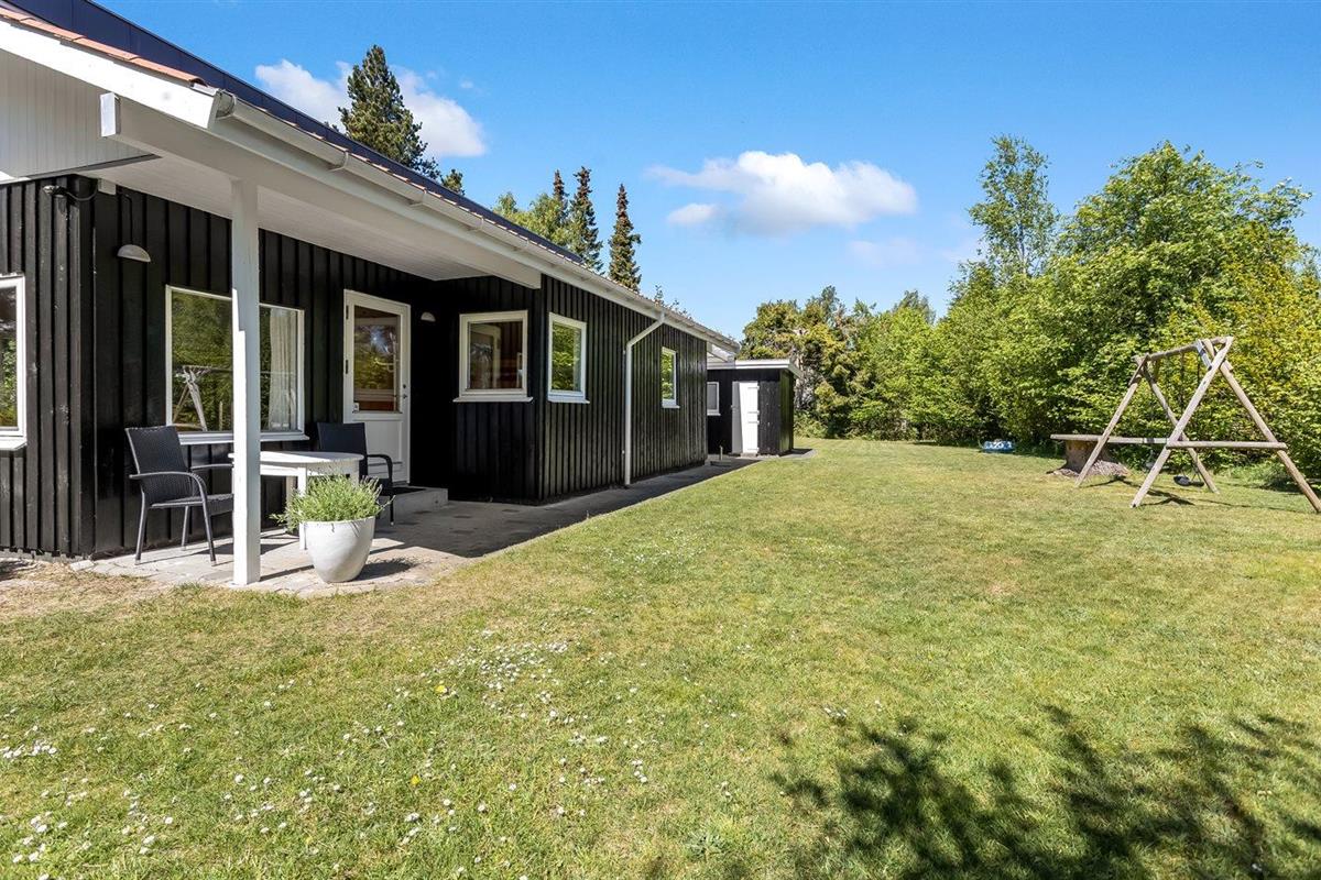 De vakantiewoning is gelegen op een 1225 m² groot aangelegde tuin. De grond is omheind. Afstand tot de zee 600 m. Dichtstbijzijnde winkel 900 m. Er is een golfbaan op een afstand van 2800 m. Daarnaast is er een 28 m² groot overdekt terras. Gereedschapsruimte. Schommel. Zandbak. Barbecue. Parkeerplaats bij het huis.