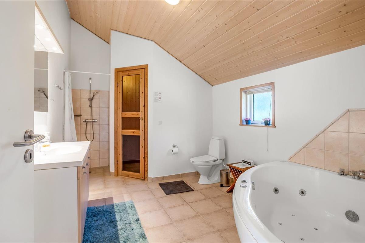 Er is 2 badkamers met douchehok en 2 toiletten. Er is vloerverwarming in 2 van de badkamers. De sauna biedt de gelegenheid tot ontspanning.