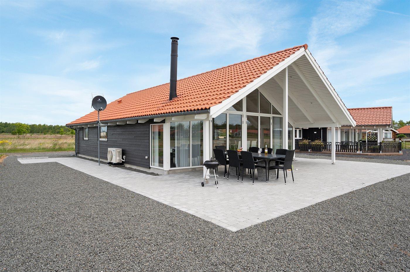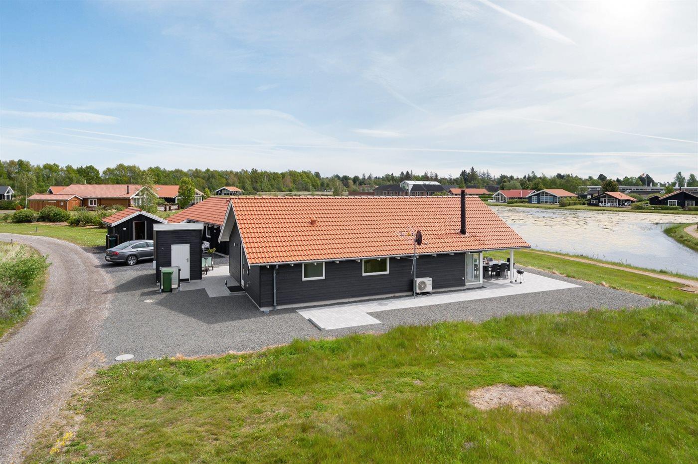 De vakantiewoning is gelegen op een 393 m² groot natuural grond. Afstand tot de zee 1200 m. Afstand tot meer 5 m. Dichtstbijzijnde winkel 800 m. Er is een golfbaan op een afstand van 1500 m. Bij de vakantiewoning hoort 60 m² terras. Daarnaast is er een 20 m² groot overdekt terras. Gereedschapsruimte. Parkeerplaats bij het huis.