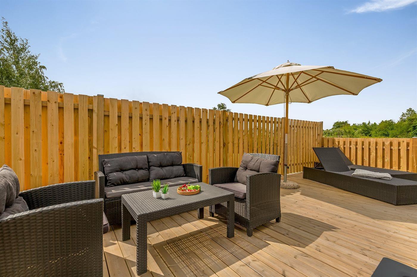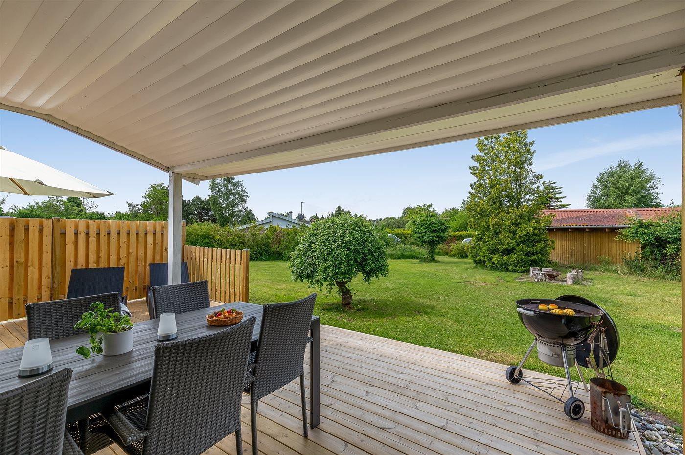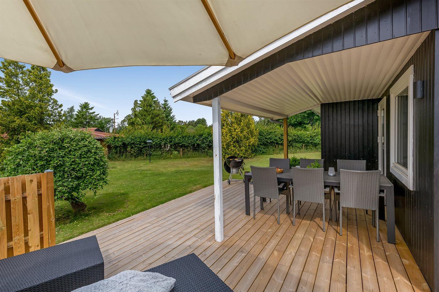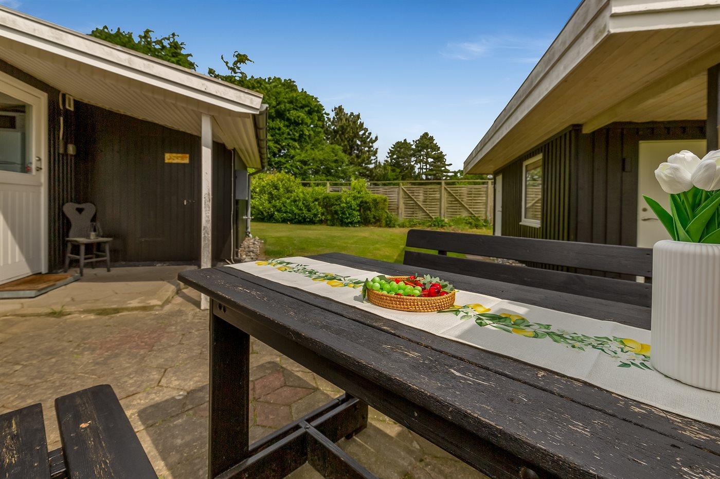 De vakantiewoning is gelegen op een 1179 m² groot aangelegde tuin. De grond is omheind. Afstand tot de zee 750 m. Dichtstbijzijnde winkel 400 m. Bij de vakantiewoning hoort terras. Daarnaast is er een overdekt terras. Gereedschapsruimte.Vuurplaats. Barbecue. Carport ter beschikking. Parkeerplaats bij het huis.