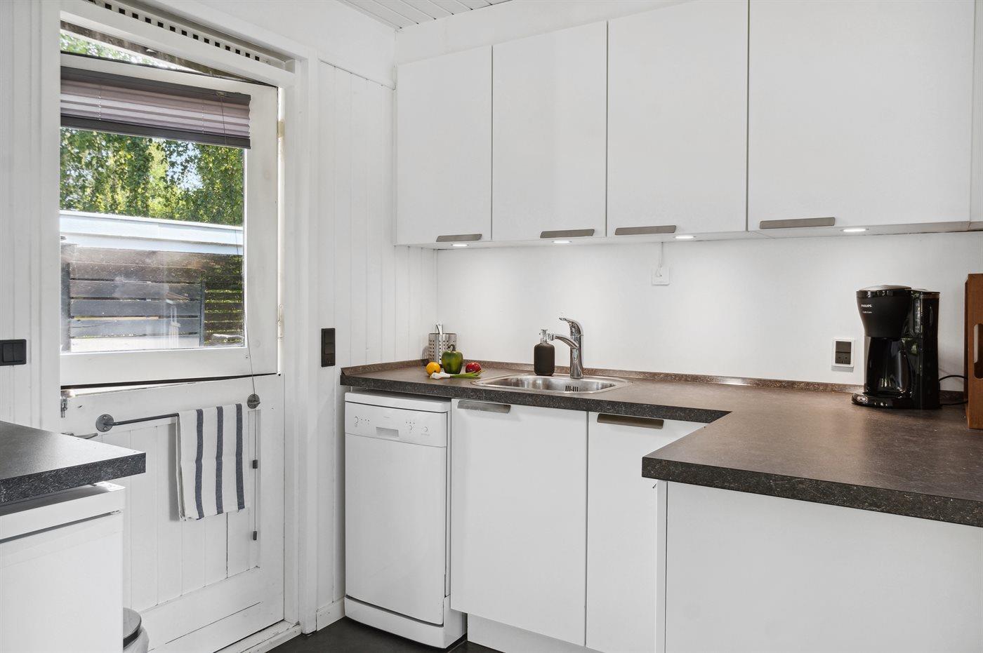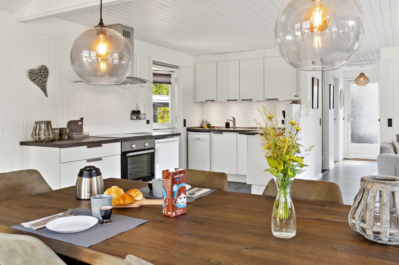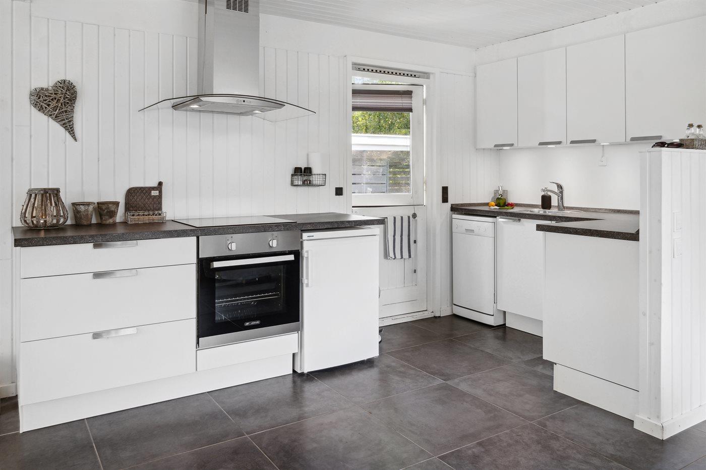 De keuken is uitgerust met koelkast Er is 4 inductiekookplaten, heteluchtoven, magnetron en vaatwasser.