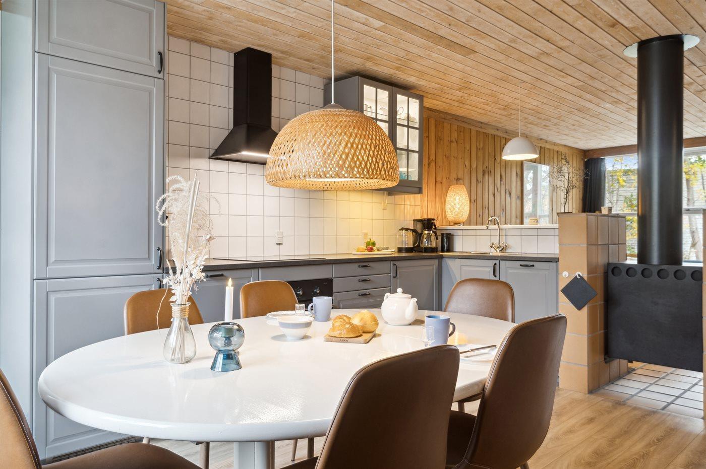 De keuken is uitgerust met koelkast Er is 4 inductiekookplaten, heteluchtoven, magnetron en vaatwasser.