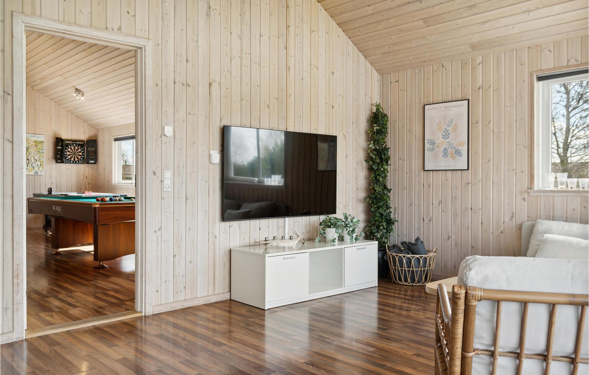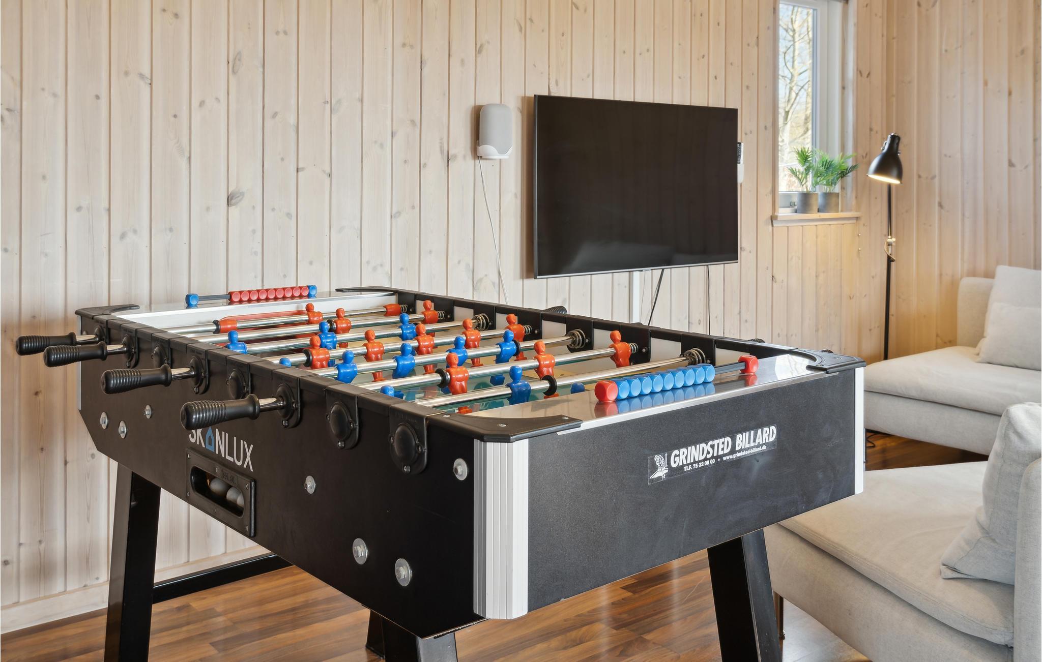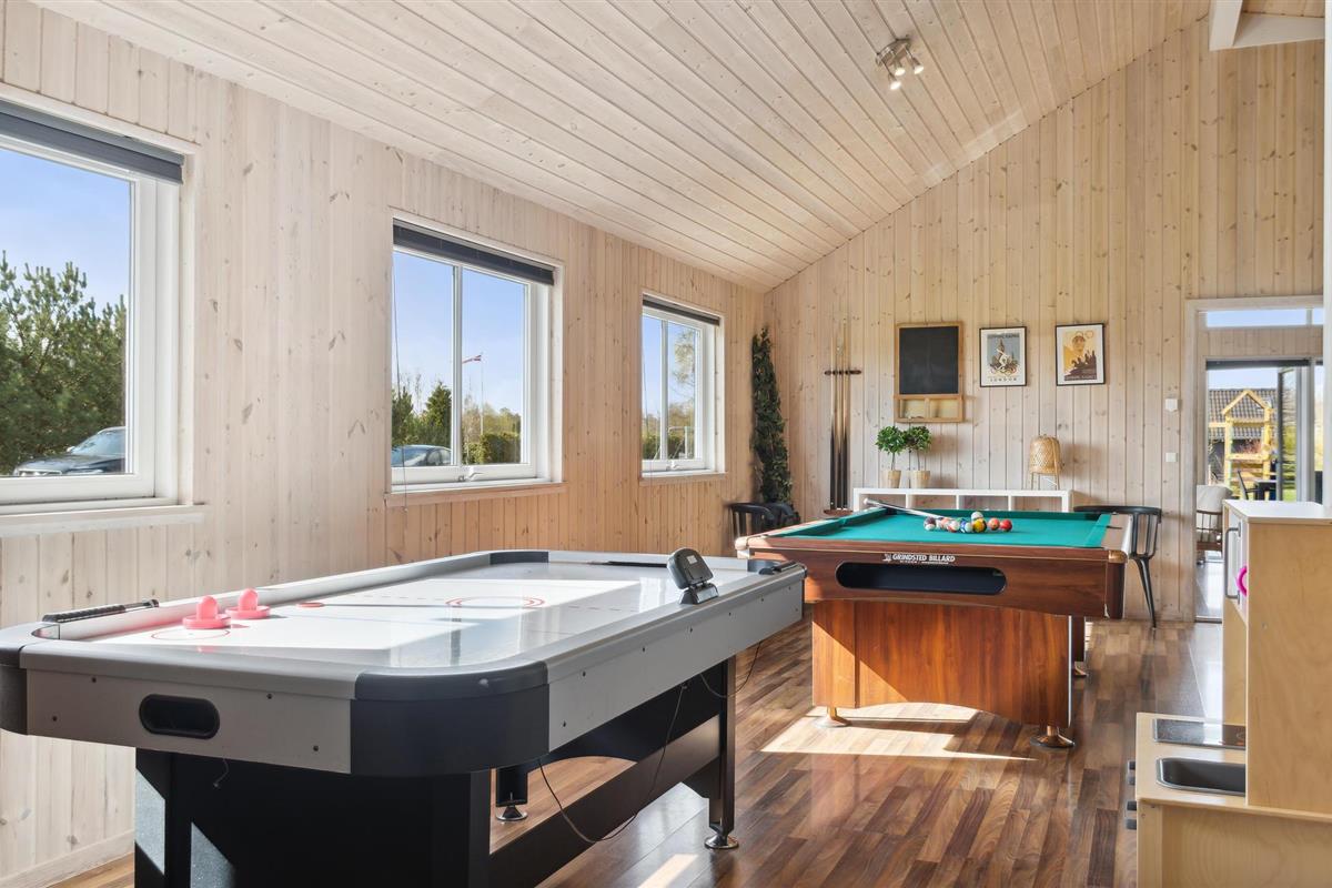 Fantastisch houten vakantiehuis met een buitenzwembad, jacuzzi (het hele jaar te gebruiken) en een groot, gedeeltelijk overdekt terras. Vloerverwarming in het zwembad, glijbaan, whirlpool voor 6 personen, sauna en meer zorgen ervoor dat u zich hier meteen thuis voelt. Keuken en woonkamer zijn modern en comfortabel uitgerust en ingericht. Houtkachel, stereo-installatie, tv-programma via een gemeenschappelijke antenne en veel slaapgelegenheid (7 slaapkamers met elk 2 eenpersoonsbedden) zorgen voor een heerlijk ruime feel-good sfeer. In de activiteitenruimte wordt u beziggehouden met biljart, tafeltennis, tafelvoetbal, air hockey en darts. In de tuin staan een speeltoren, een schommel en een zandbak. In Marielyst zult u een bewogen vakantie doorbrengen. Het hele gezin kan hier actief bezig zijn en ook cultuur opsnuiven. U kunt goed winkelen, of het nu gaat om levensmiddelen of lokaal geproduceerde souvenirs. U kunt kiezen uit verschillende restaurants en 's avonds is er ook vertier. Het strand is fantastisch, er is een bos en een vogelreservaat. Het huis wordt niet verhuurd aan jeugdgroepen.
