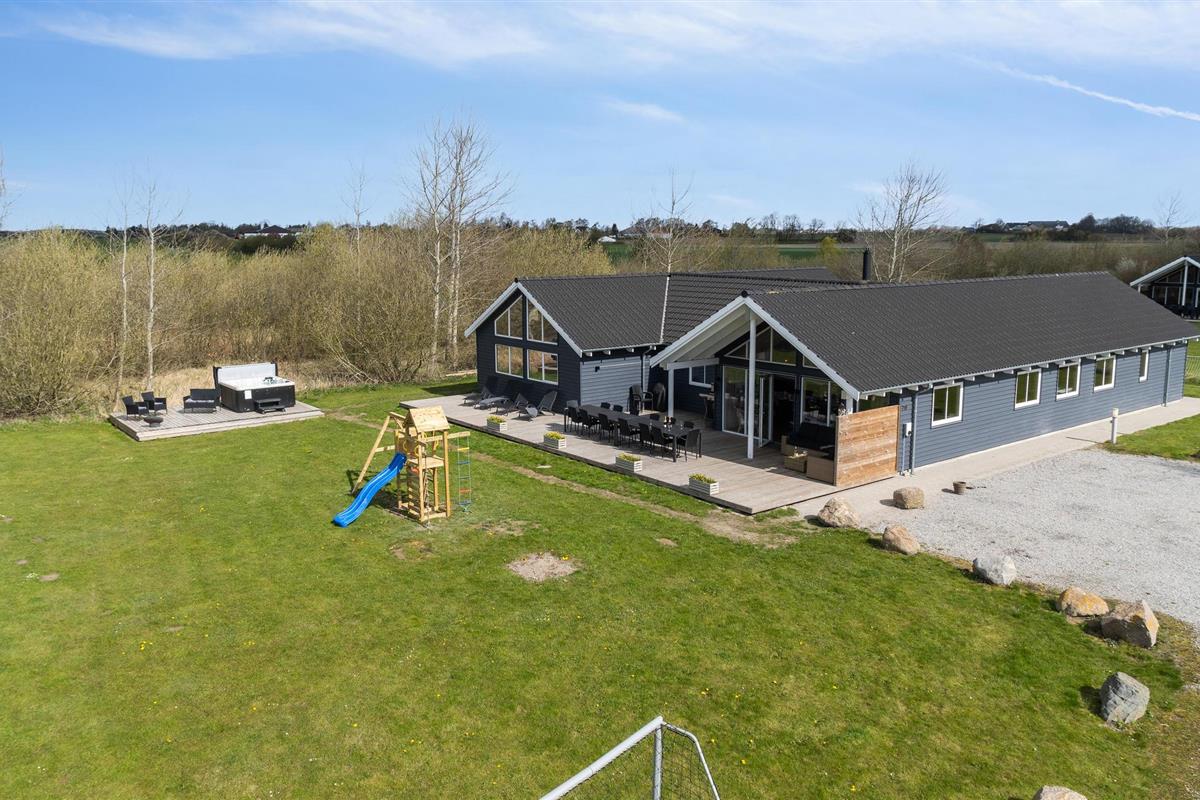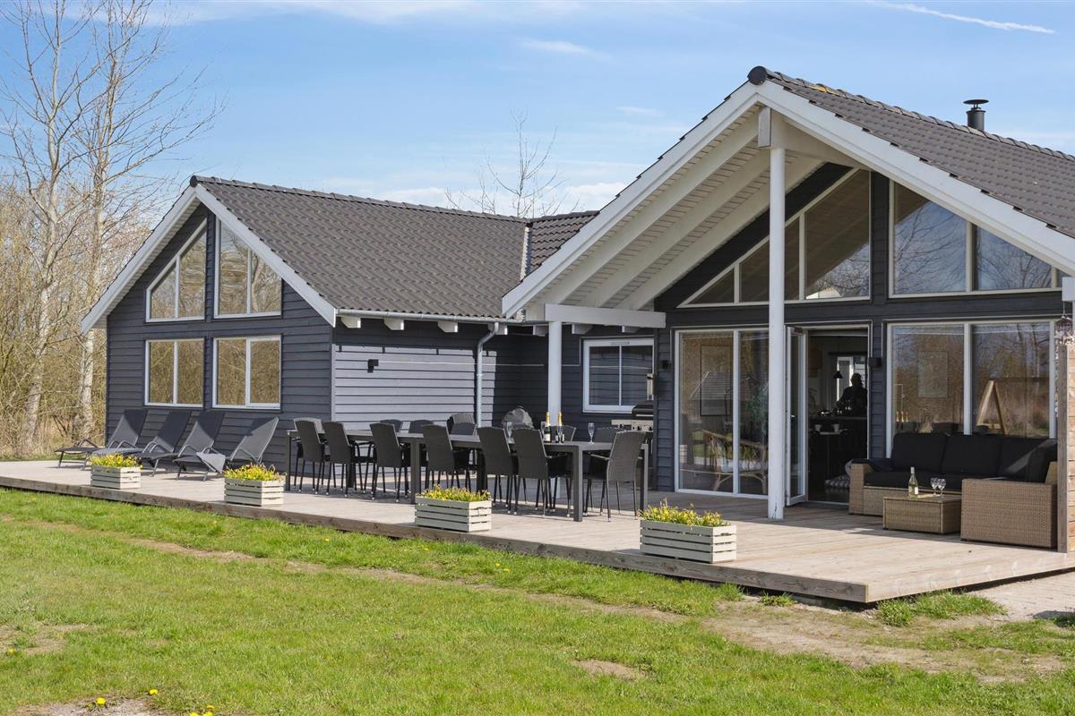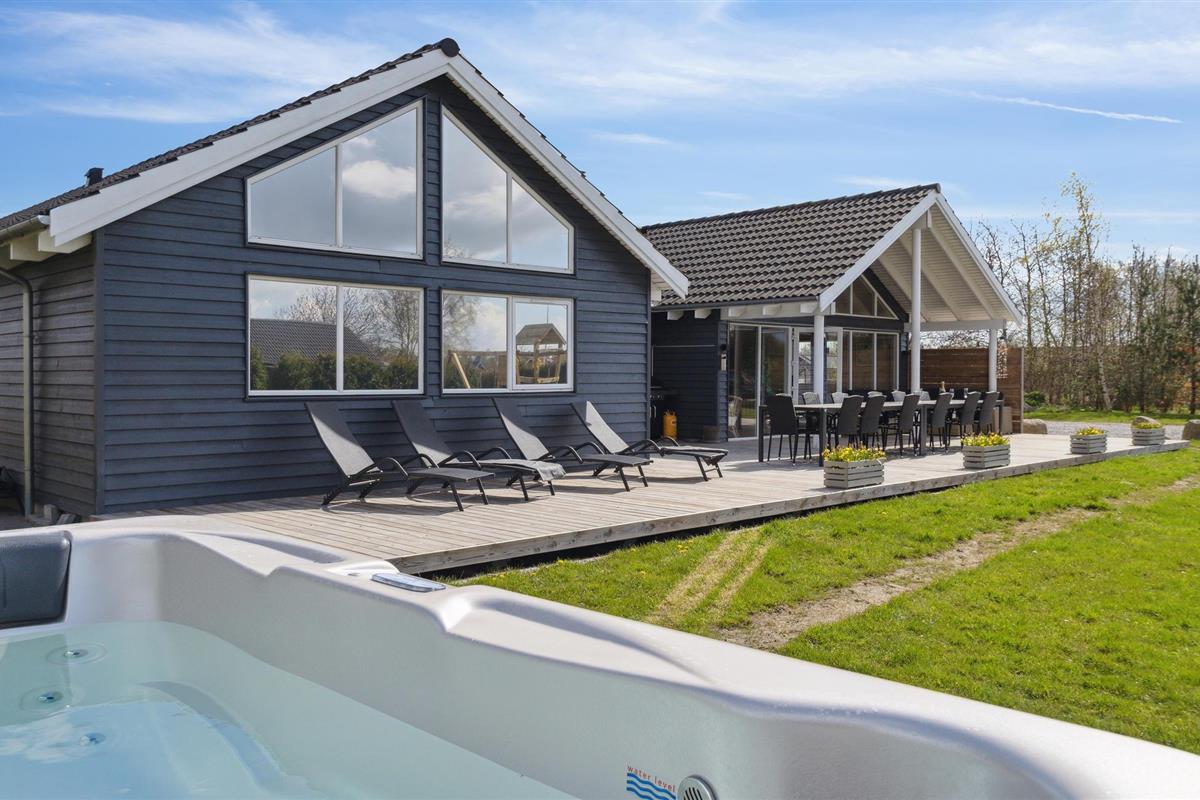 Ruim houten vakantiehuis met buitenzwembad, jacuzzi, sauna en moderne voorzieningen nabij het strand in Marielyst.