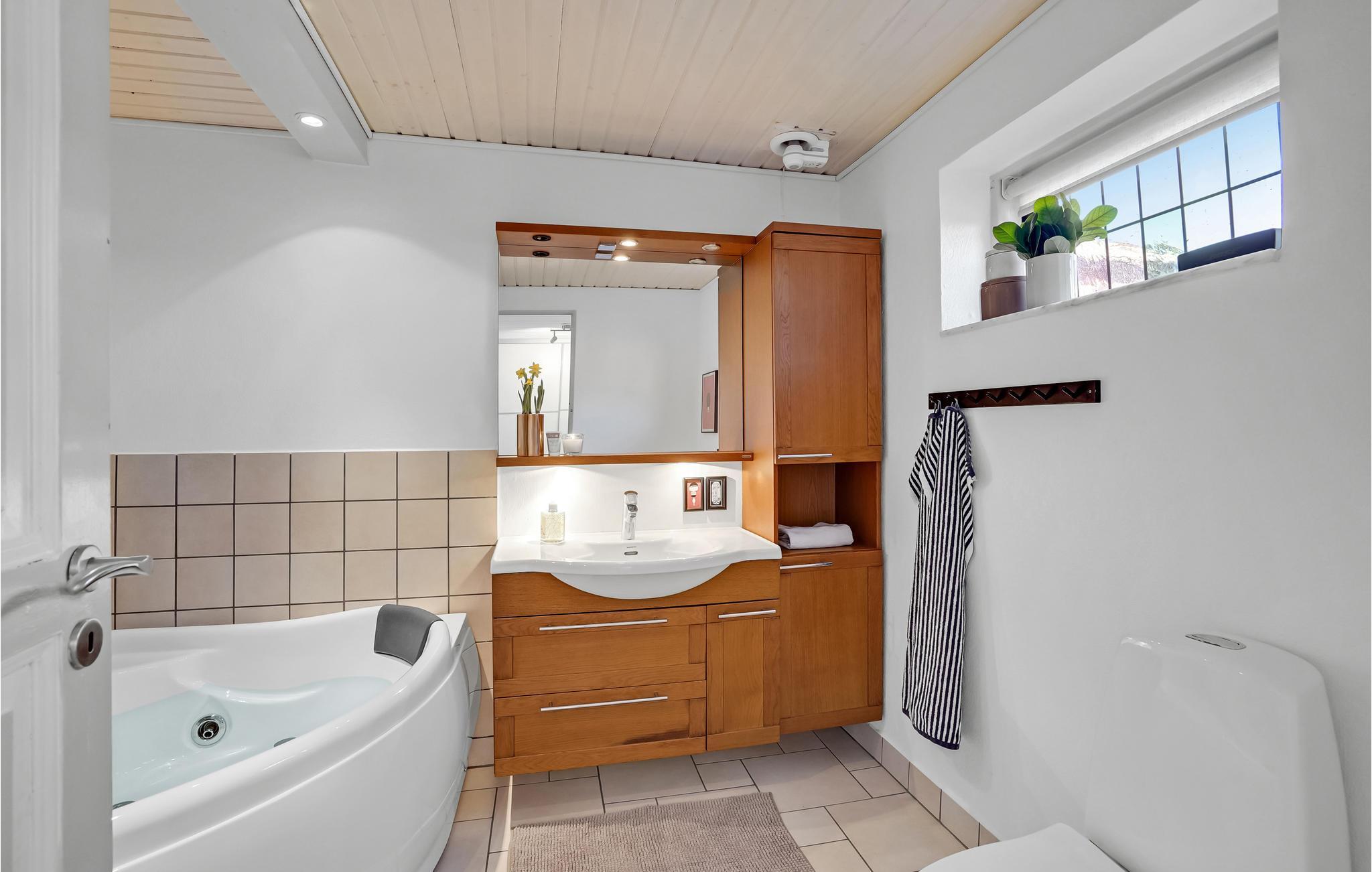 U woont direct aan zee, zodat u 's ochtends naar de zwemsteiger kunt wandelen en in het water kunt springen. In de privétuin nodigen tuinmeubelen en een barbecue uit tot ontspannende uren in de zon en gezellige zomeravonden met uitzicht op zee. In de buurt vindt u verschillende mogelijkheden om van de prachtige natuur van het eiland te genieten, bijvoorbeeld een wandeling in het bos Bøtøskoven.