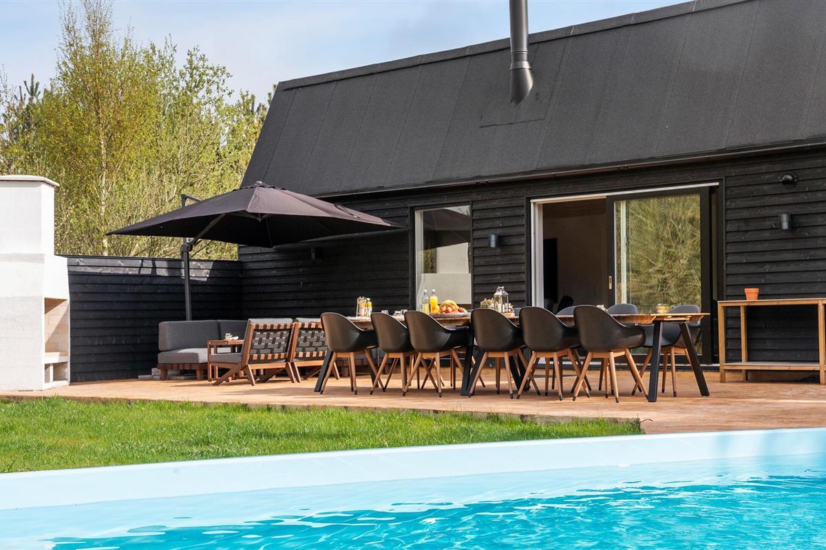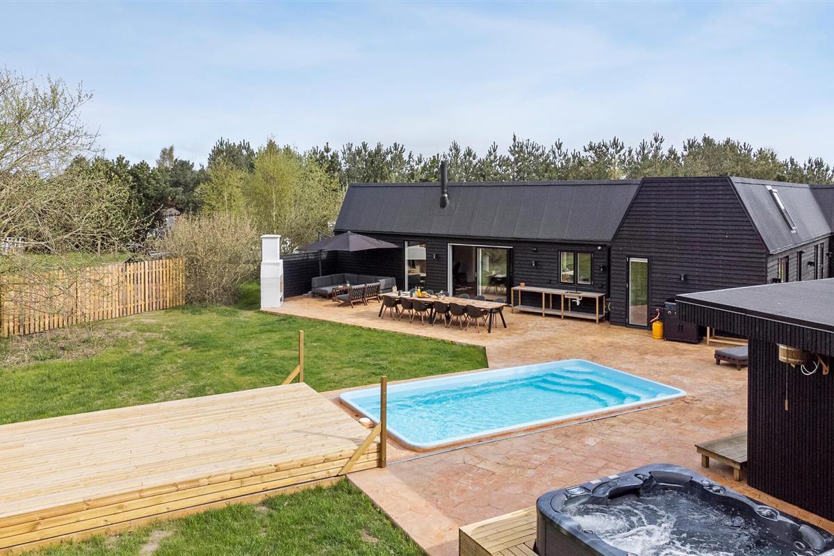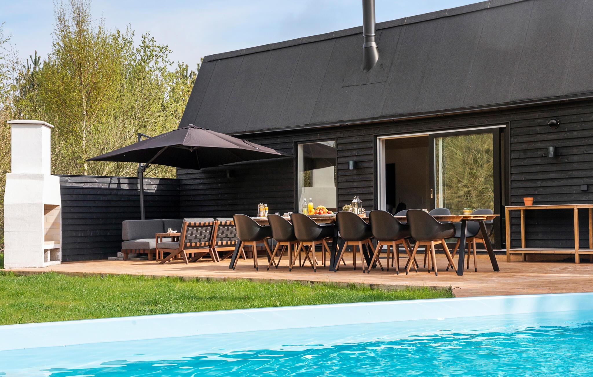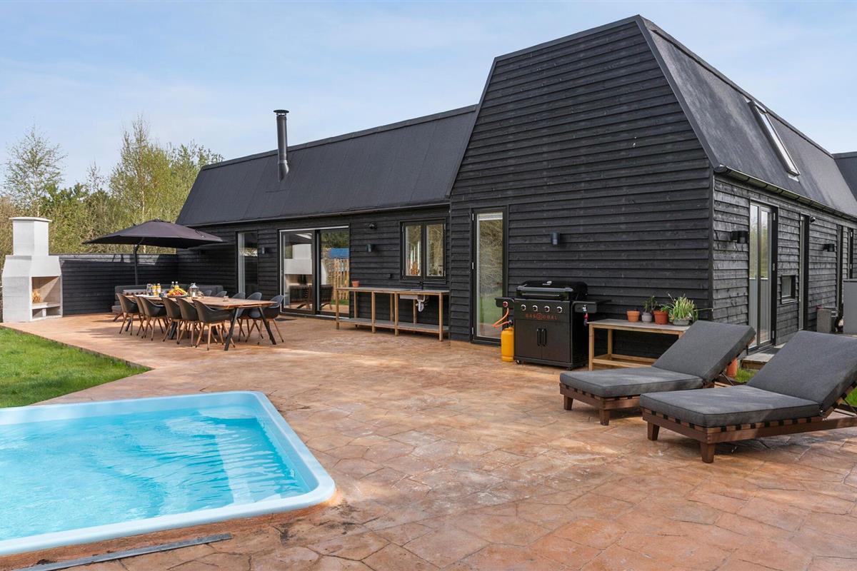 Geniet van een luxe vakantiehuis met privézwembad, sauna en ruime tuin in het levendige Marielyst.