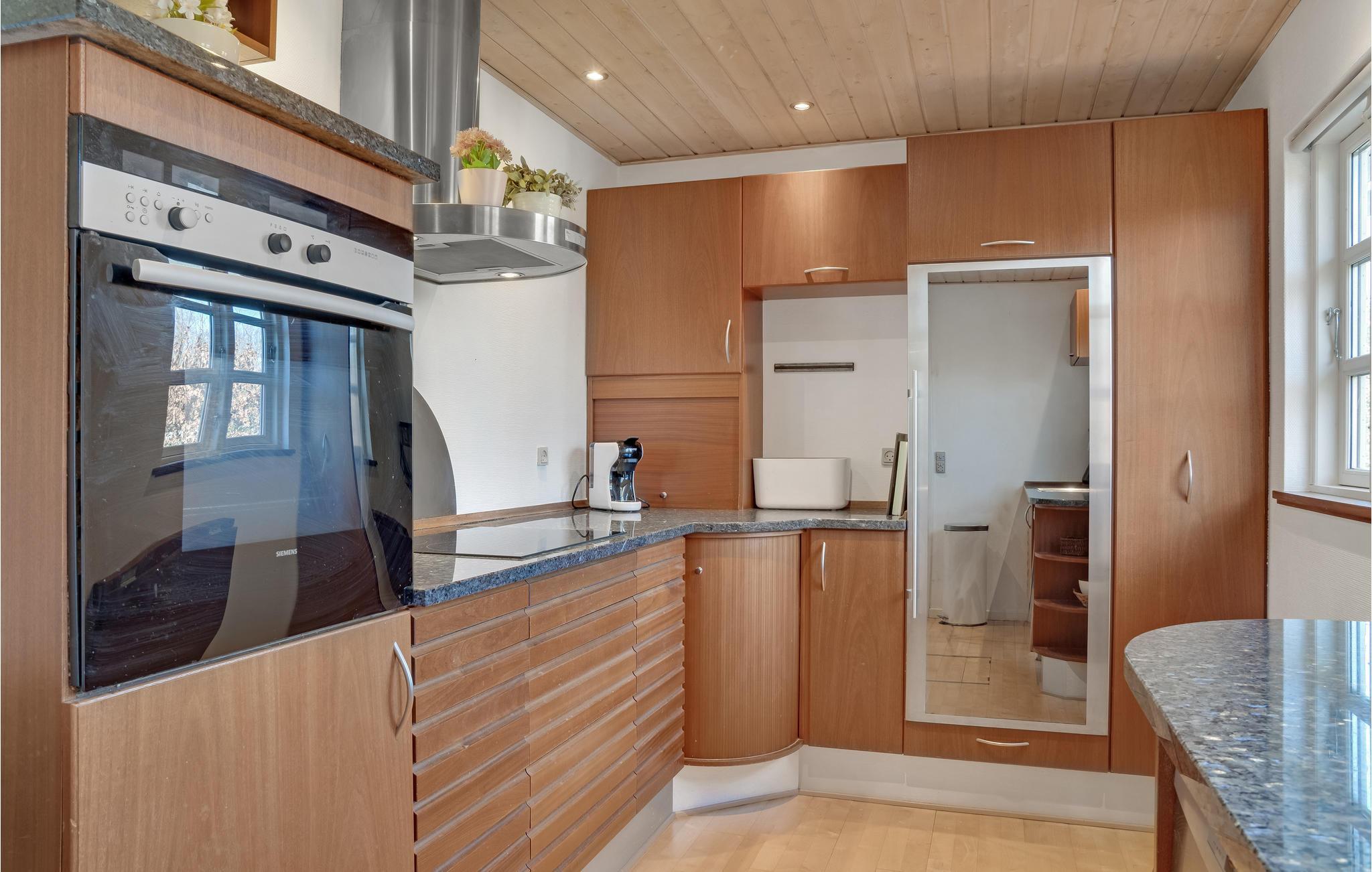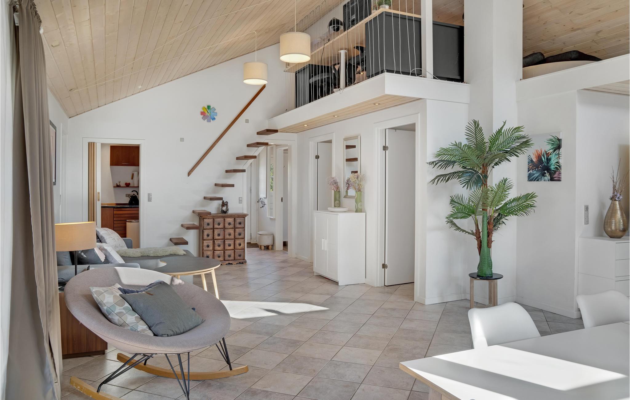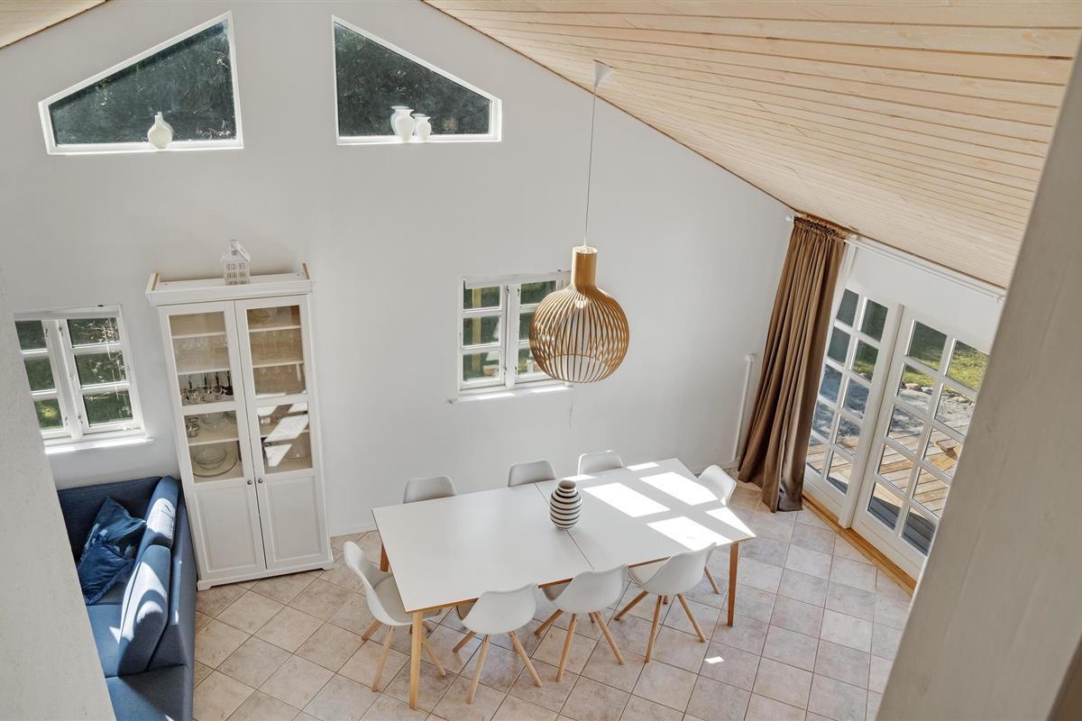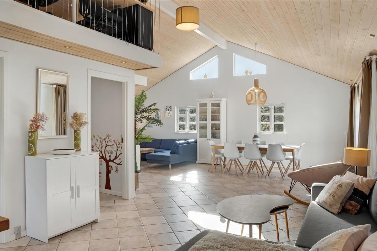 In de lichte kamers van het comfortabele huis kunt u met het hele gezin ontspannen in een stijlvolle omgeving. De moderne inrichting zorgt voor een huiselijke sfeer, en de vele glas-in-loodramen zorgen voor prachtig daglicht in het interieur van het huis. Kook hier met uitzicht op het buitenleven en geniet samen van de maaltijden aan de lange eettafel. Maak het u later gemakkelijk op de ruime bank. Na een heerlijke dag aan het strand of een excursie, afgerond met een sauna, kunt u hier 's avonds nog lang samen zitten.