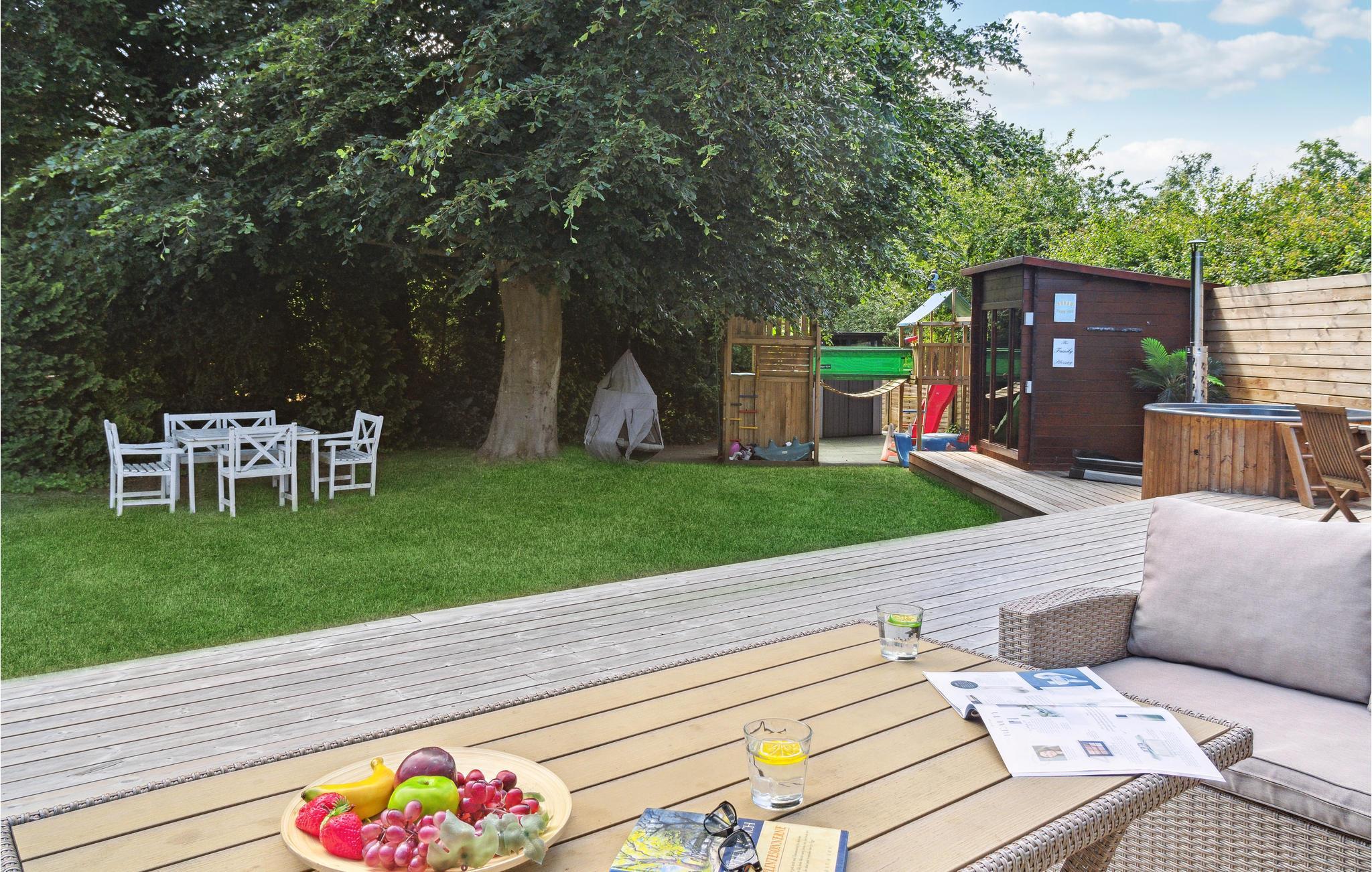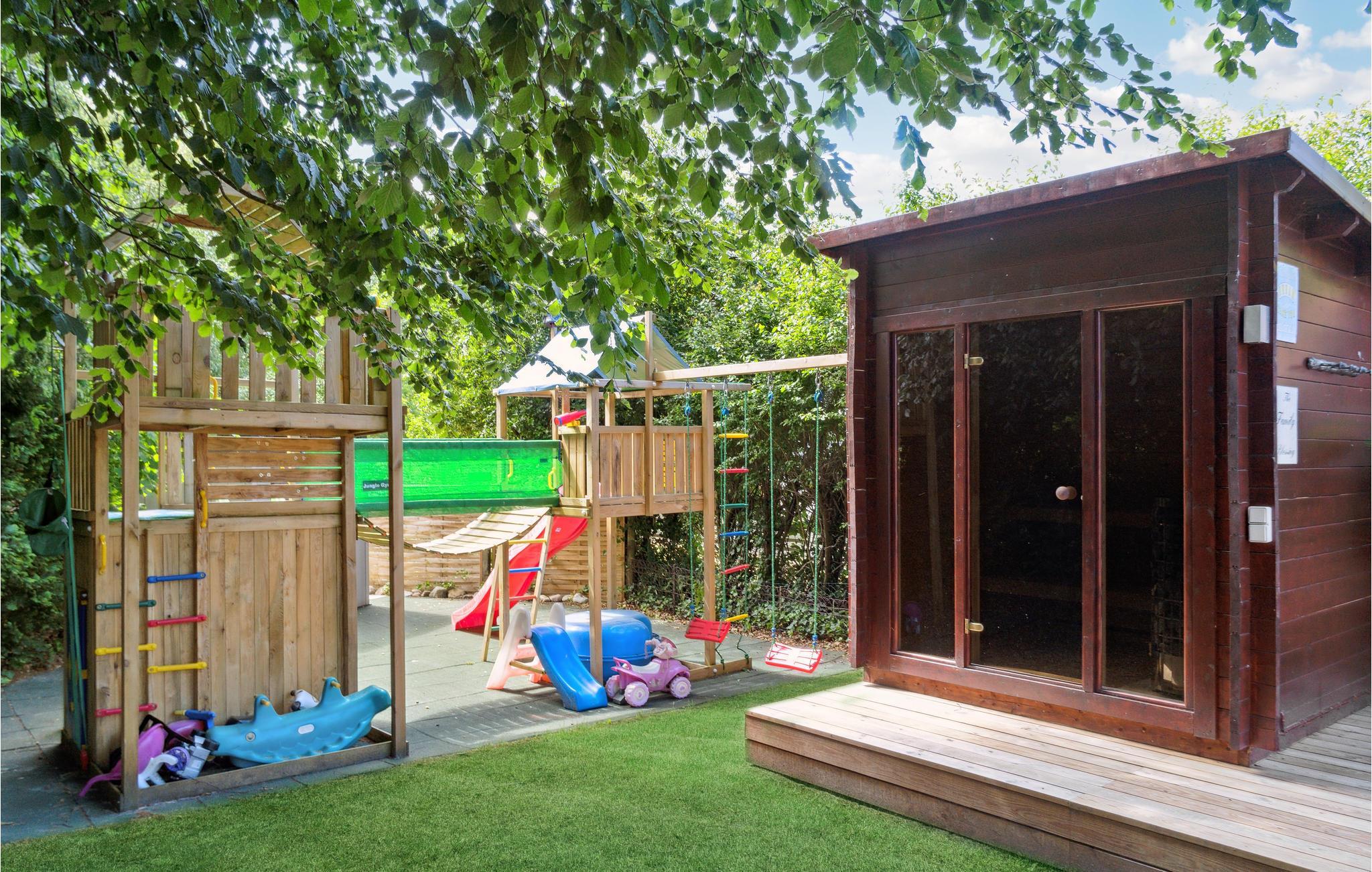 In de aantrekkelijke buitenruimte van het huis komen alle gezinsleden aan hun trekken. Geniet van de zon op het terras terwijl uw kinderen over het terrein rennen, klimmen, glijden en springen op de trampoline. Serveer daarna heerlijk barbecue-eten voor de hele troep en sluit de dag af in het Finse houten bad onder de sterrenhemel.