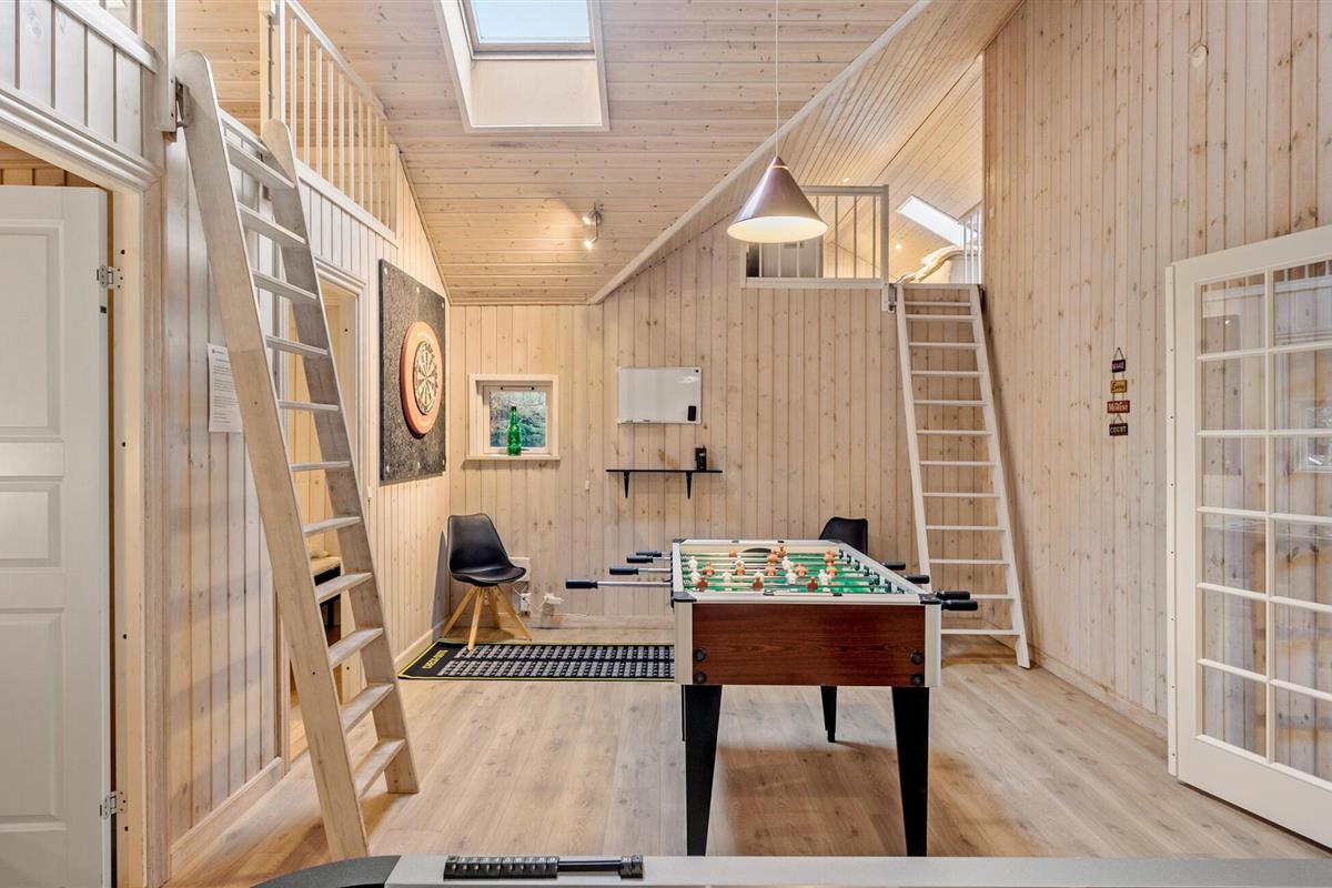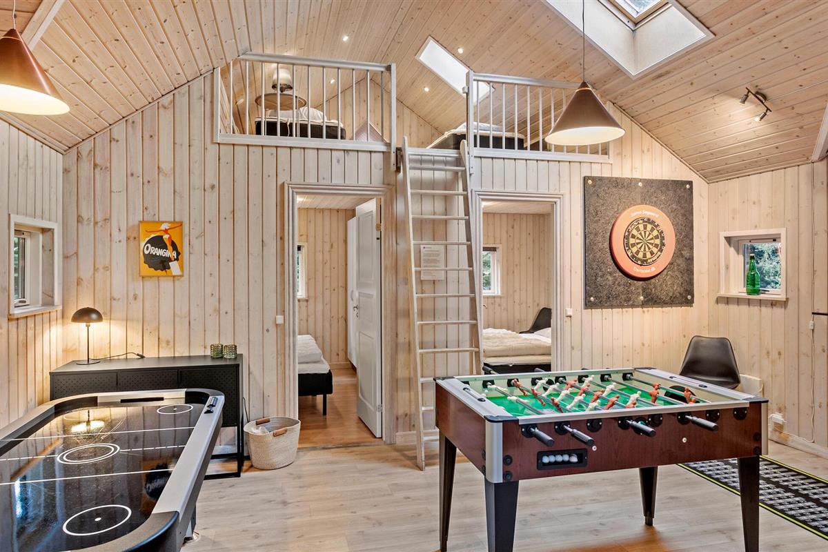 In het populaire Marienlyst ligt dit rustig gelegen vakantiehuis op loopafstand van het centrum en het strand. Tot meerdere gezinnen zullen zowel ruimte als comfort vinden in de gezellige en praktisch ingerichte kamers. Er zijn ook twee slaapzolders. Na een paar baantjes trekken in het zwembad kun je je spieren masseren in de whirlpool en helemaal ontspannen in de sauna. Een van de twee badkamers bevindt zich in de zwembadruimte. In de activiteitenruimte kun je elkaar uitdagen voor verschillende spelletjes.