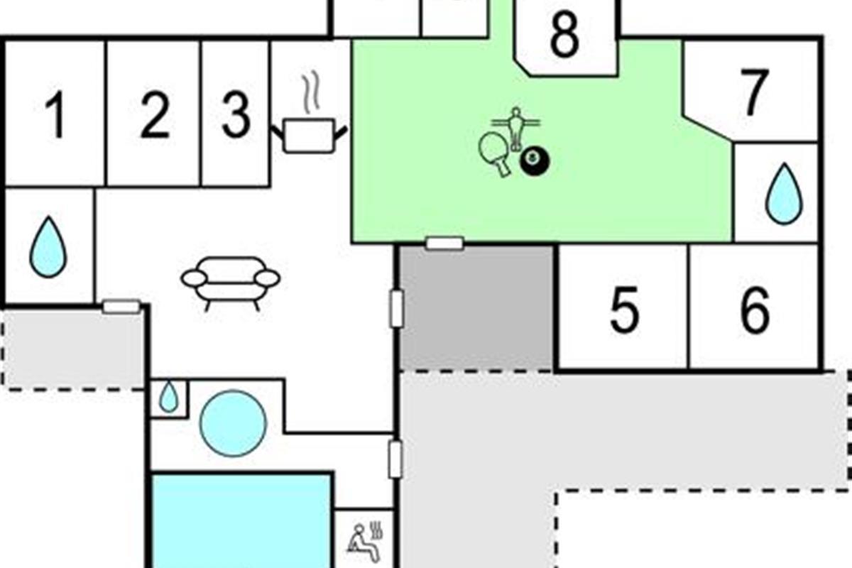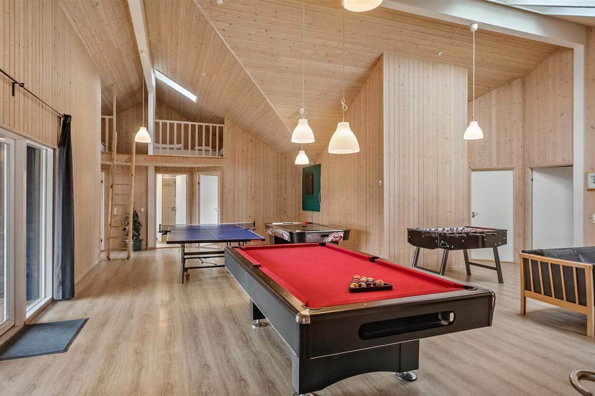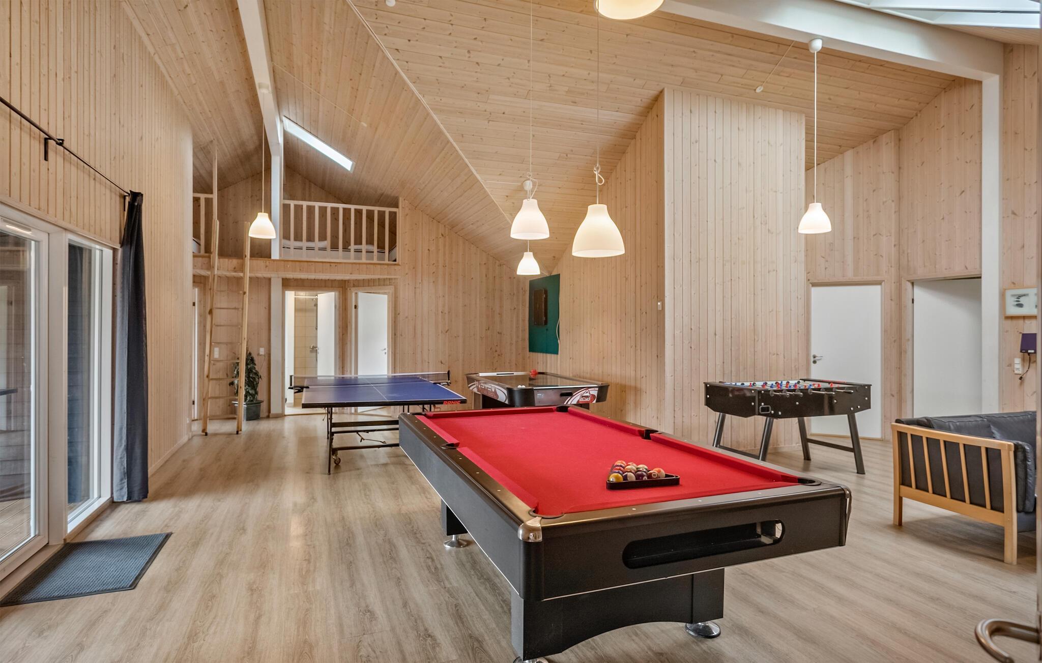 Breng een ontspannen vakantie door in dit vakantiehuis, dat speciaal ontworpen is voor grotere gezinnen of groepen vrienden. Verheug je op een goed doordacht ruimteconcept, veel ruimte en een verscheidenheid aan vrijetijdsactiviteiten, ideaal in elk jaargetijde. Stap binnen in de open woonkamer met hoge houten plafonds, een houtkachel en verschillende gezellige zithoeken. Speel samen een potje tafelvoetbal, biljart of tafeltennis in de activiteitenruimte of geniet van het samenzijn aan de lange eettafel. Bereid je favoriete gerechten in de moderne keuken of ontspan in de whirlpool na een duik in het zwembad met glijbaan. Er staat ook een sauna tot je beschikking.