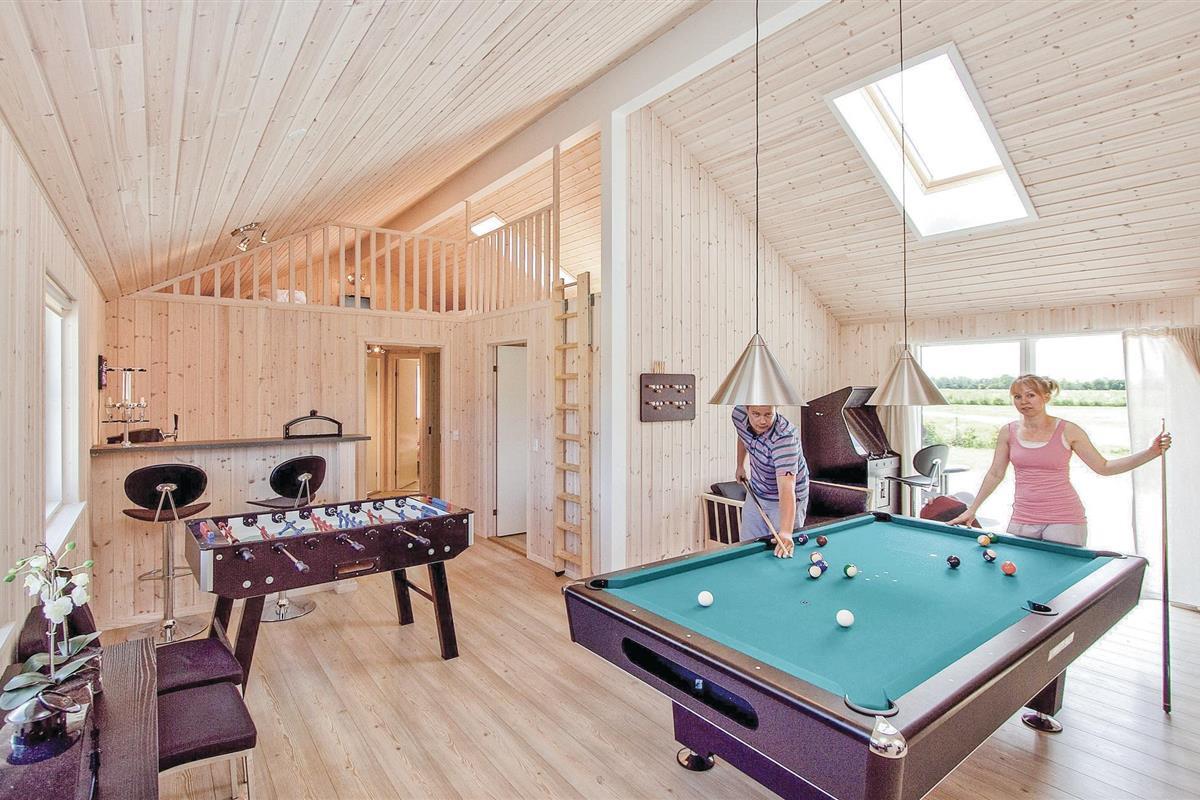Tot welke leeftijdsgroep u ook behoort, Marielyst heeft u veel te bieden. Misschien wilt u in de zon dommelen op het brede, witte strand aan de zachte Oostzee, of slenteren langs de winkels in de stad? Trek een paar baantjes in het mooie zwembad, ontspan in de whirlpool en speel vriendschappelijke vakantiewedstrijden aan het biljart of de tafeltennistafel. Ook in de grote woonkeuken zult u zich op uw gemak voelen, niet in de laatste plaats vanwege de open haard. Naast de slaapkamers zijn er ook slaapplaatsen op de slaapzolders. Drie badkamers zorgen ook voor weinig drukte in de ochtend. Hier kunt u op verschillende terrassen meteen van het buitenleven genieten en nieuwe energie opdoen. In de zomer heb je ook een grote trampoline in de tuin. Welkom!