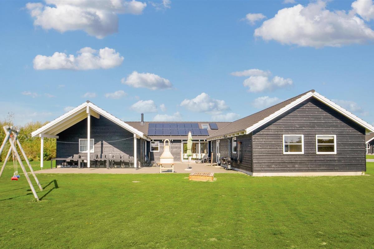Ruim en luxe vakantiehuis nabij Marielyst Strand met zwembad, sauna en diverse speelactiviteiten voor een ontspannen verblijf.