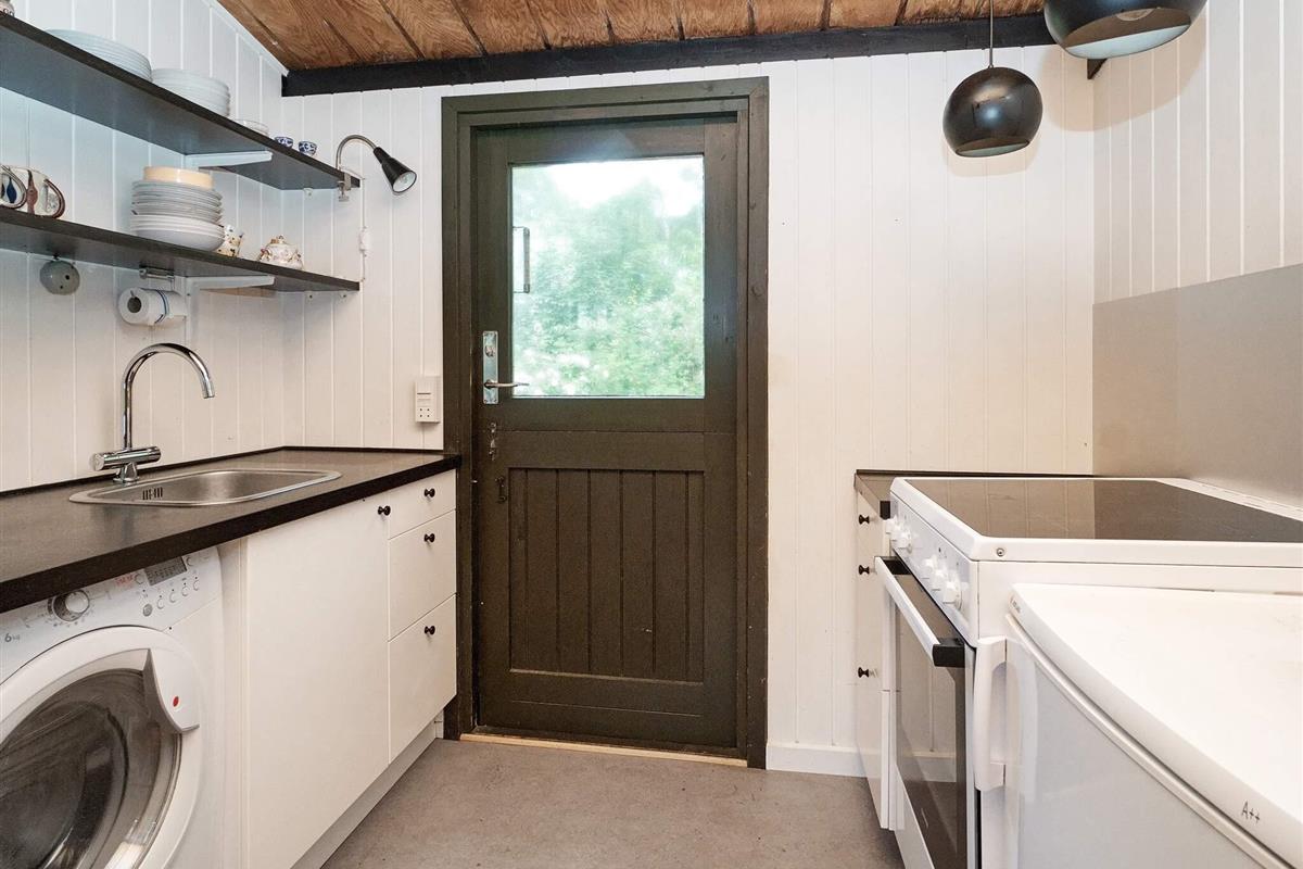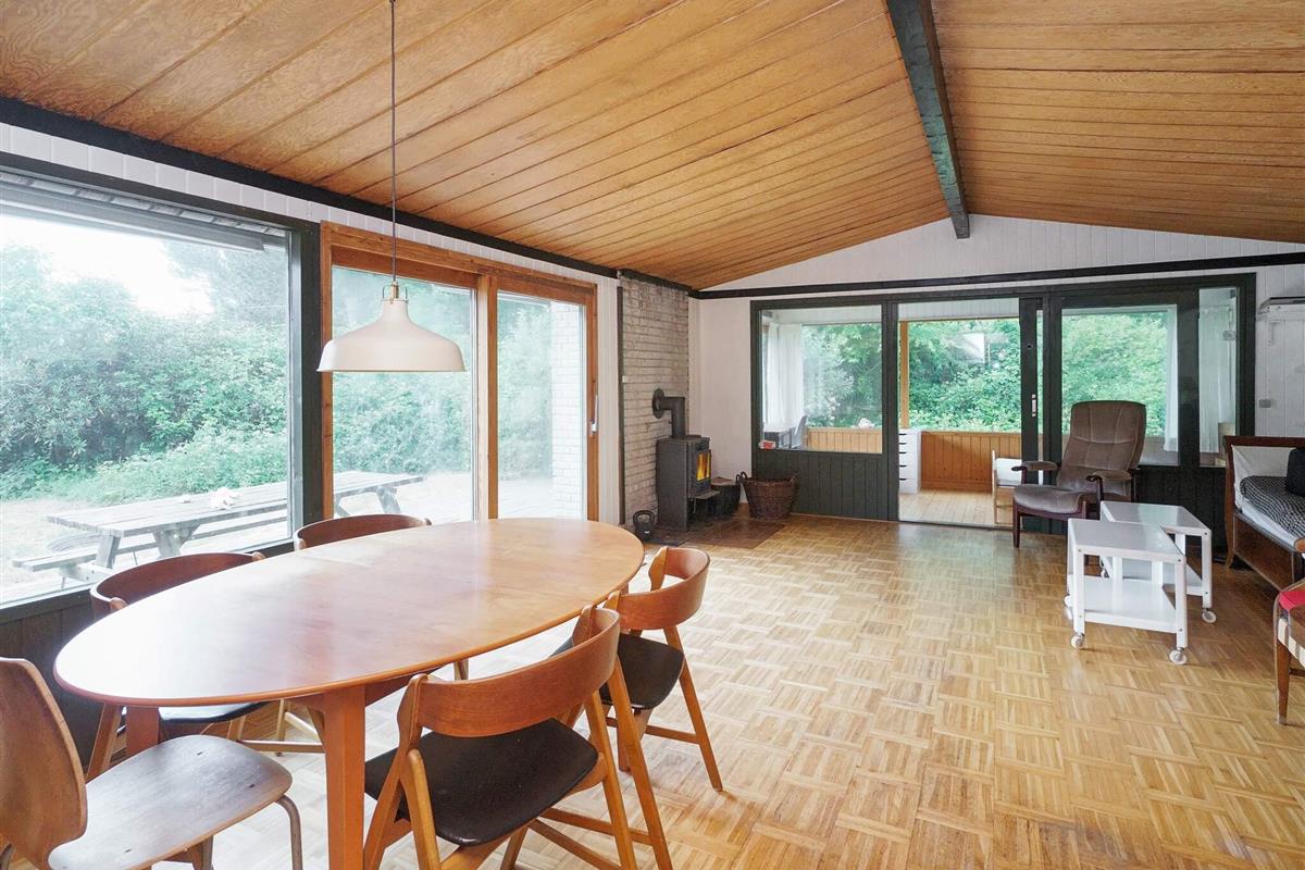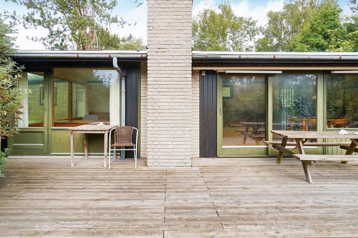 Das Haus verfügt über eine große Holzterrasse mit Mittagssonne, ideal für Mahlzeiten im Freien, Sonnenbaden oder einfach zum Entspannen mit einem guten Buch. Vom geräumigen Wohnzimmer mit kleiner offener Küche haben Sie direkten Zugang zur Terrasse und schaffen so eine nahtlose Verbindung zwischen Innen- und Außenbereich. Das Wohnzimmer verfügt außerdem über ein Einzelbett, während der Wintergarten mit einem Doppelbett und eigenem Eingang für zusätzliche Flexibilität bei der Schlafgestaltung sorgt.