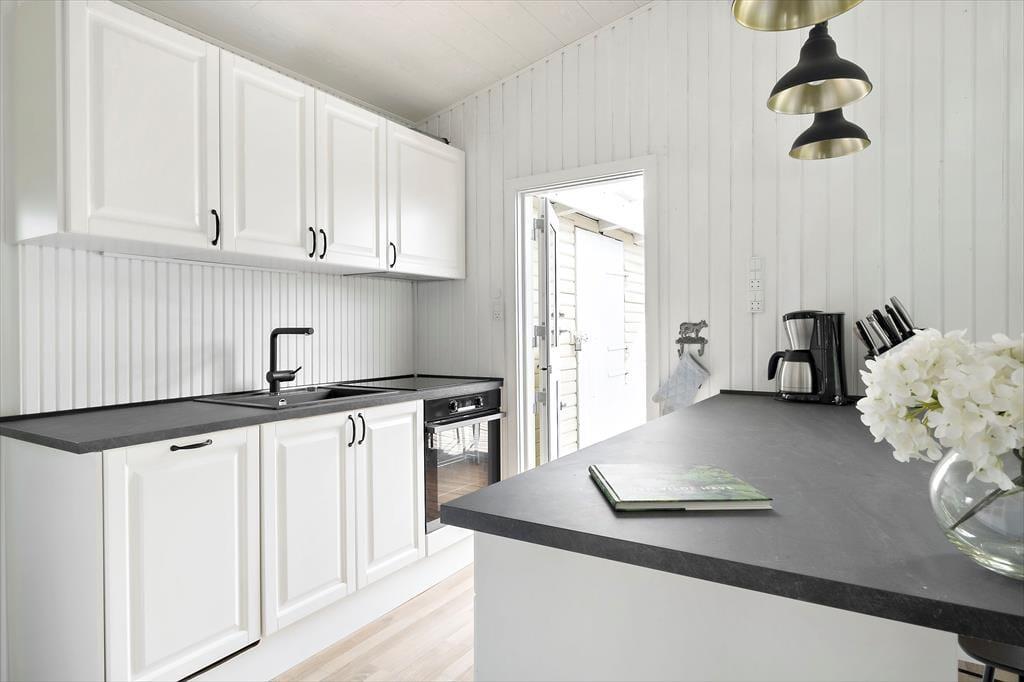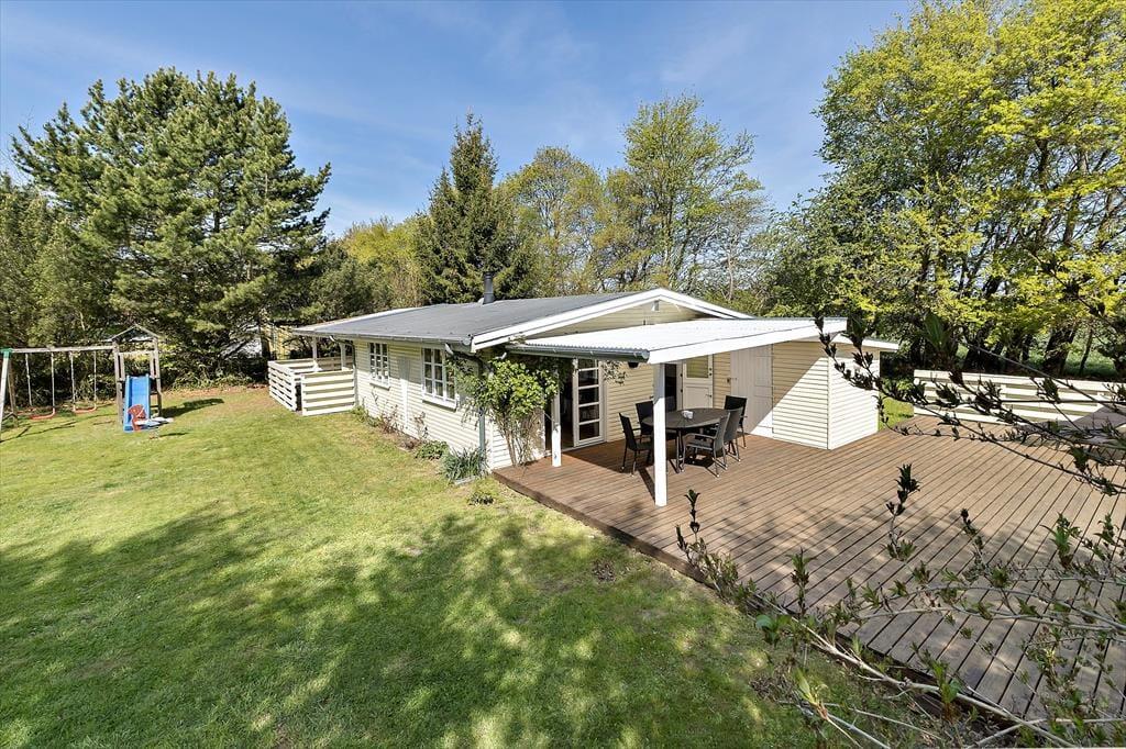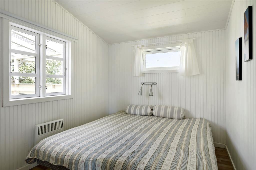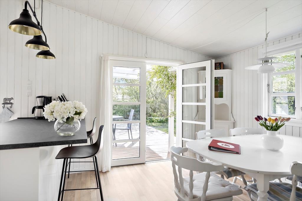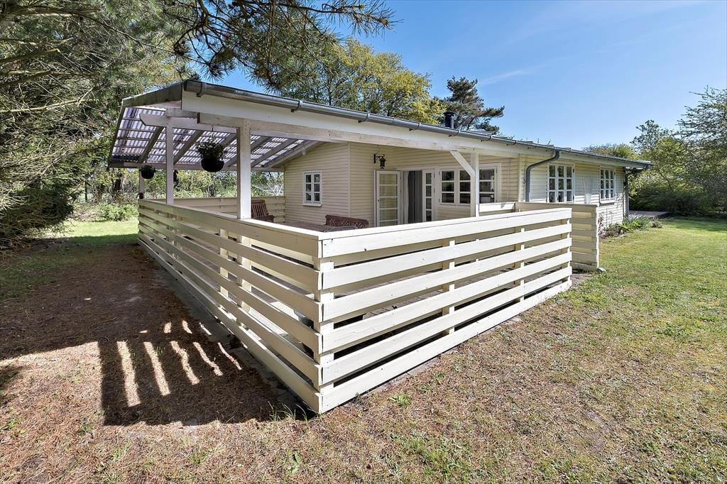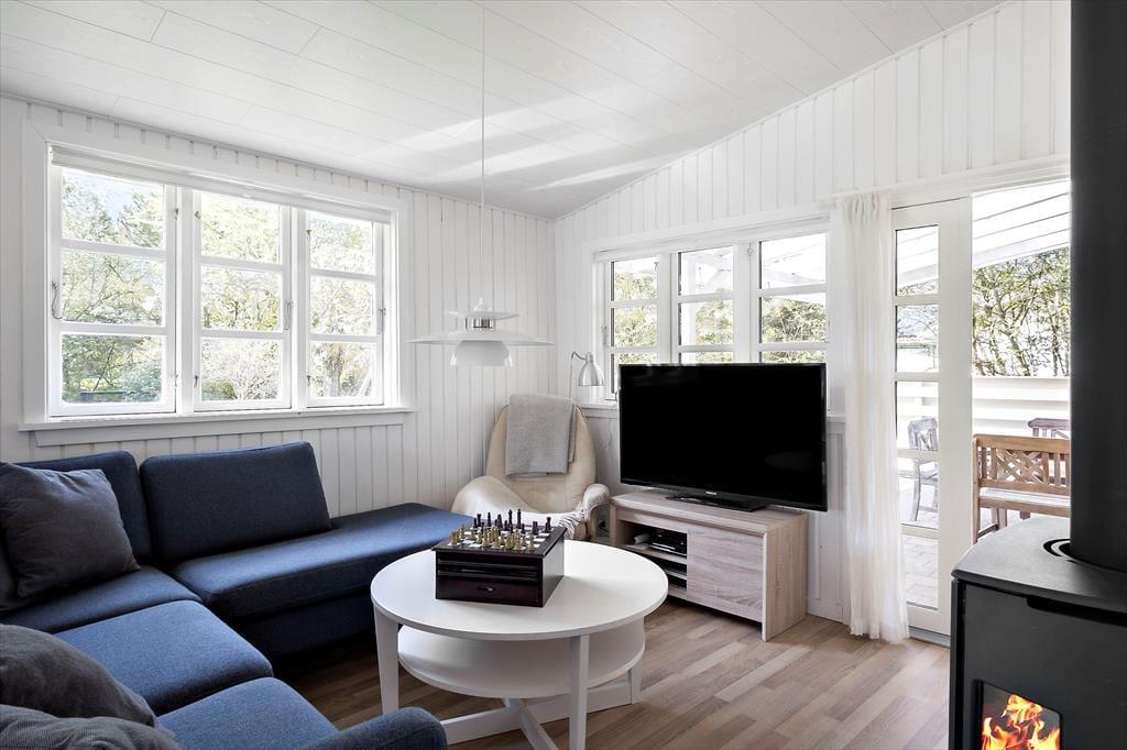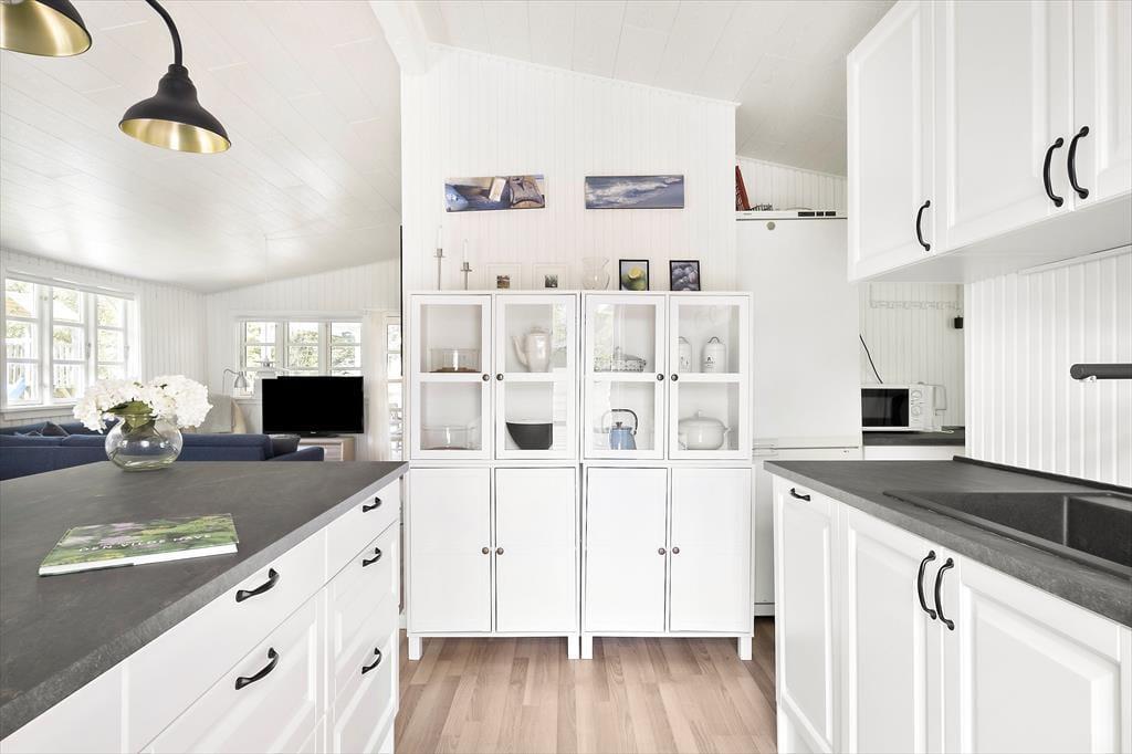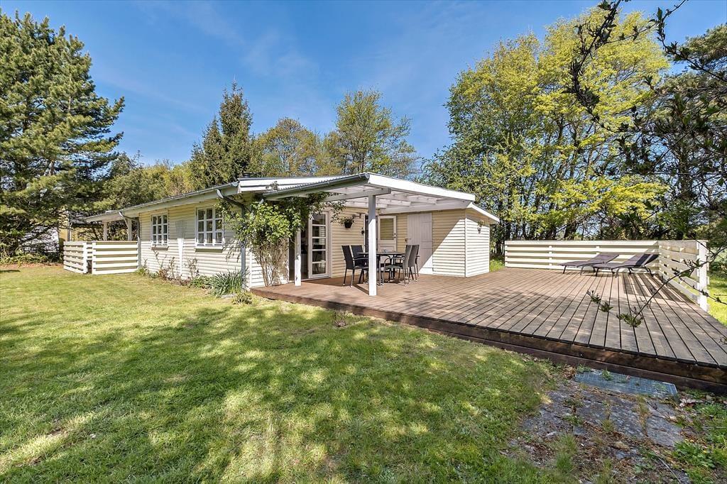 Dieses helle und charmante Ferienhaus bietet eine gemütliche Atmosphäre und eine funktionelle Einrichtung – perfekt für einen entspannten Urlaub. Das Wohnzimmer ist offen und lichtdurchflutet und hat direkten Zugang zur großen überdachten Terrasse, wo du deinen Morgenkaffee im Schatten genießen oder lange Sommerabende mit einem Glas Wein ausklingen lassen kannst. Angrenzend an das Wohnzimmer befinden sich der Essbereich und die offene Küche, sodass das Kochen und gemeinsame Mahlzeiten leicht von der Hand gehen. Das Ferienhaus verfügt über zwei schöne Schlafzimmer, in denen du mit den Geräuschen der Natur erwachen kannst, sowie ein helles und freundliches Badezimmer.