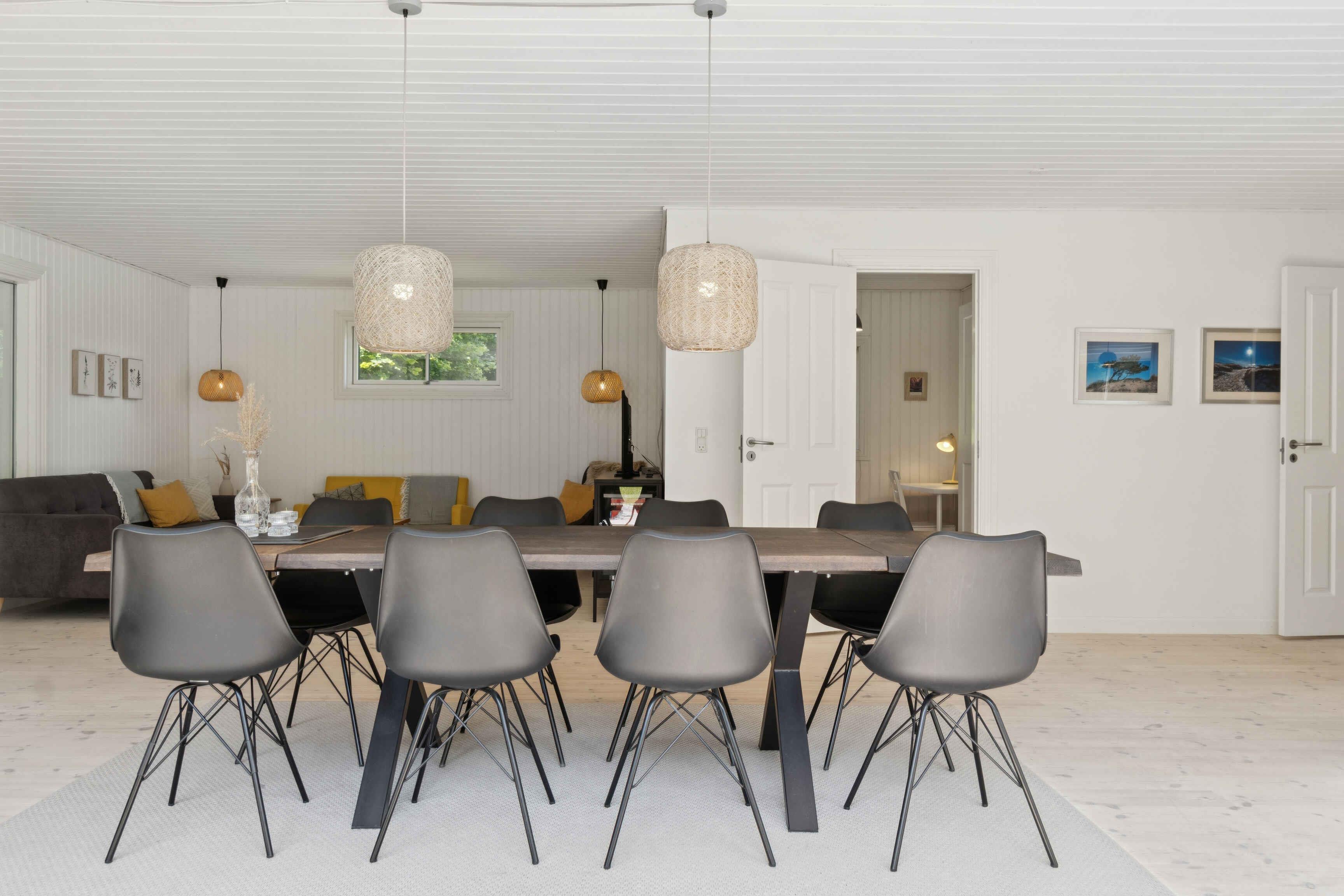 Deze recent gerenoveerde vakantiewoning van 160 m² biedt het perfecte decor voor een heerlijke gezinsvakantie. Met een lichte en luchtige sfeer, waar het daglicht rijkelijk binnenvalt en je uitzicht hebt op het groen, voelt alles precies goed aan. De tuin is beschut tegen de wind en het 100 m² grote houten terras nodigt uit tot zonnen, koffie in de middag of een boek in de schaduw, terwijl de kinderen misschien op de trampoline springen. De ruime keuken met kookeiland biedt plaats aan alle hobbykoks wanneer de lokale specialiteiten bereid worden. Dankzij de indeling – met twee grote badkamers en telkens twee slaapkamers ernaast – is er volop ruimte voor privacy binnen het samenzijn. Dit maakt het huis ideaal voor twee gezinnen of bijvoorbeeld een gezin met tienerkinderen. De woning ligt midden in de natuur en is perfect gelegen voor uitstapjes naar Hundested, Liseleje of Tisvilde, afhankelijk van of je zin hebt in strand en ijs, winkelen en cultuur, of de beste "Moules Frites" van de streek (Hundested). Let op: Niet te huur voor commercieel gebruik.