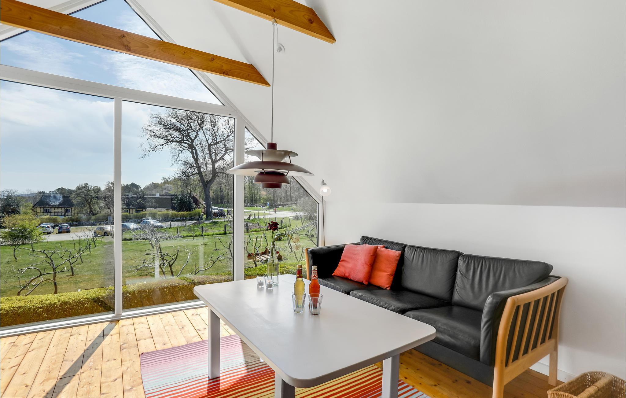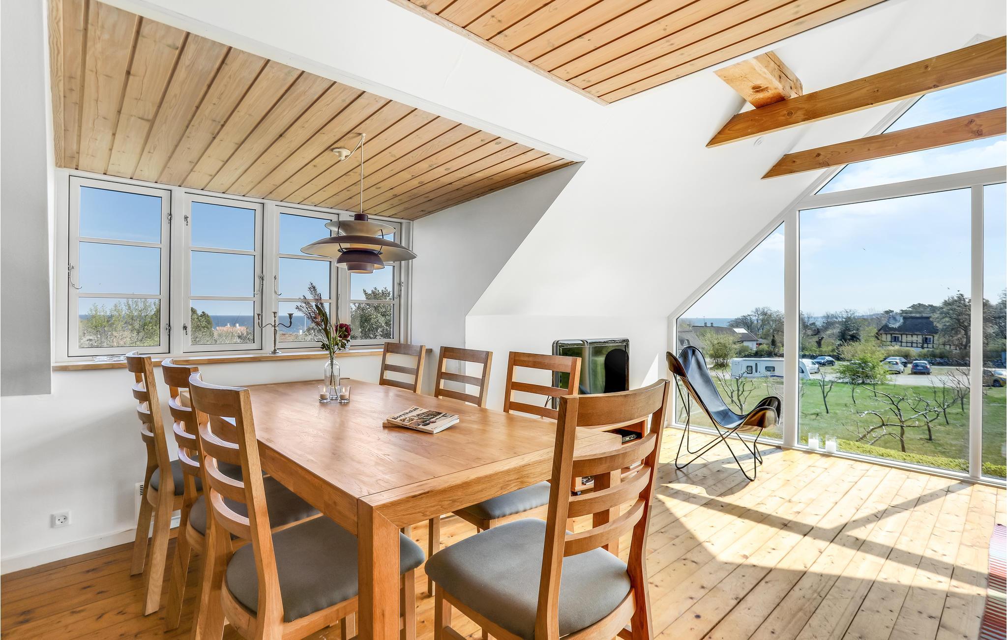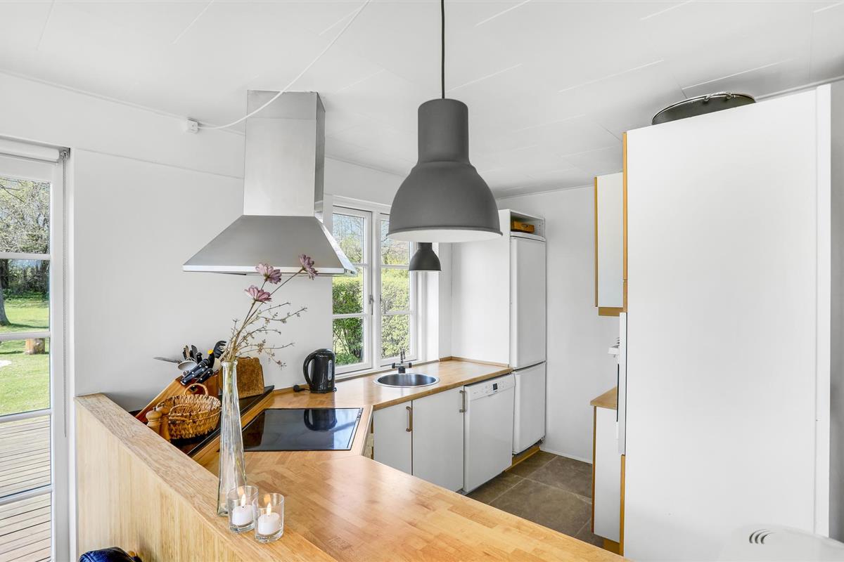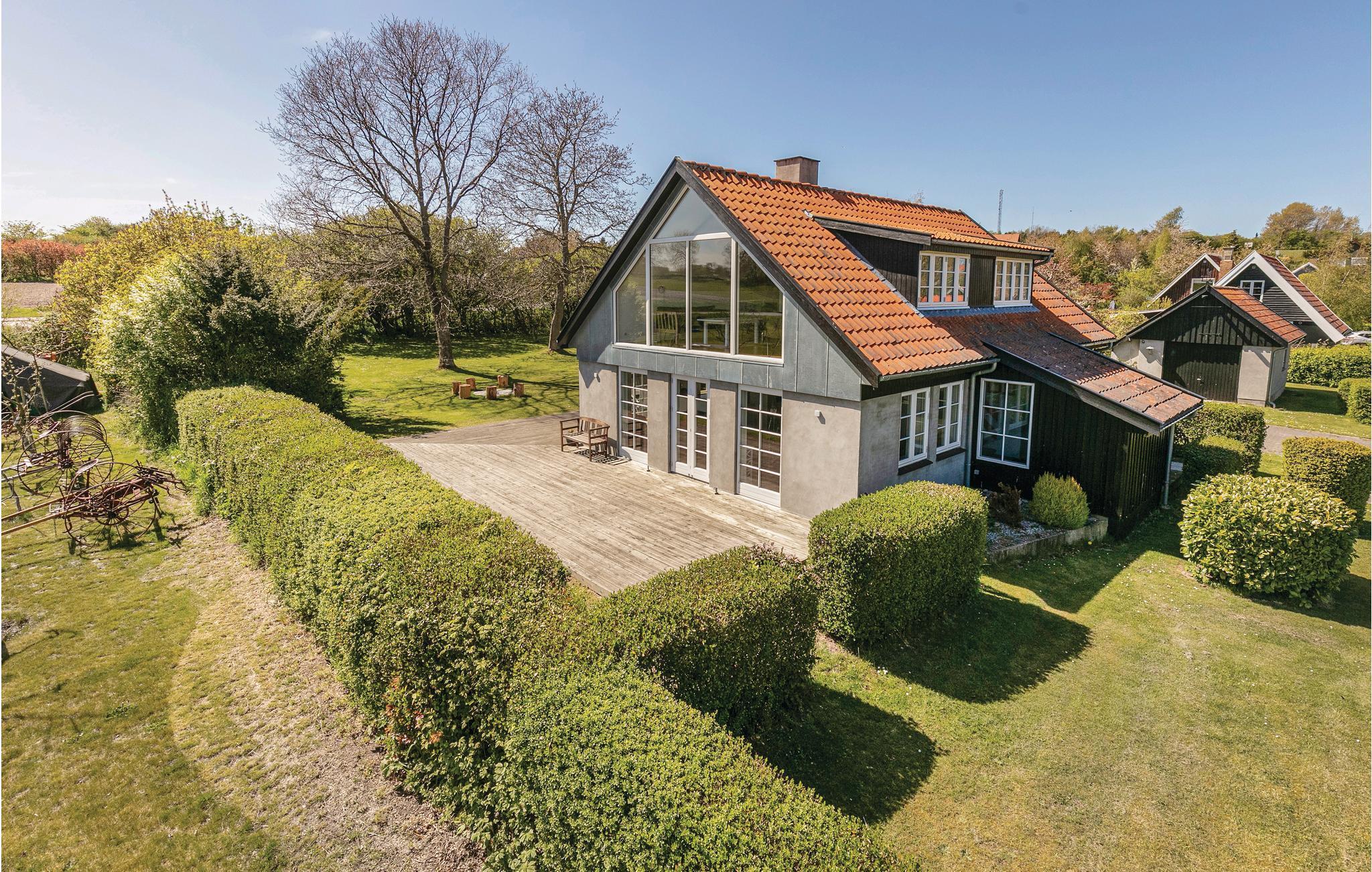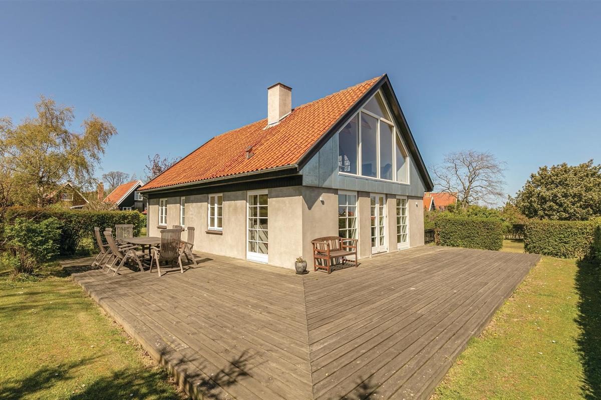 Het huis is goed onderhouden en het hele jaar door bewoonbaar. Er zijn in totaal twee badkamers. De keuken, die open is naar de woonkamer, heeft een eethoek en de woonkamer biedt directe toegang tot het prachtige houten terras. Er is veel ruimte voor plezier en spelletjes in de tuin. Het huis ligt op een groot perceel in een prachtige omgeving niet ver van Gudhjem. Als buur heeft u Melstedgårds Landbouwmuseum.