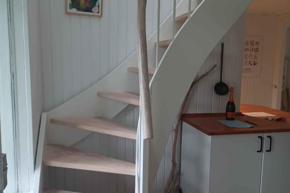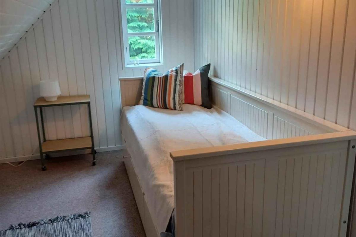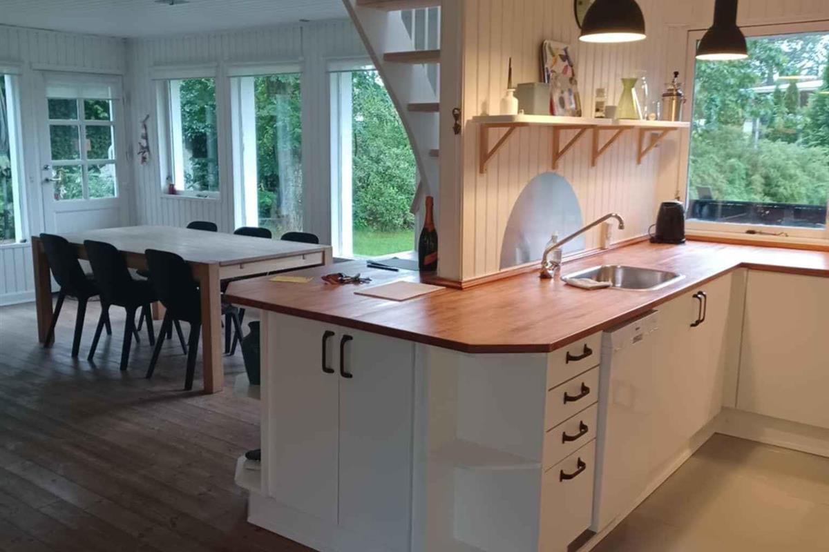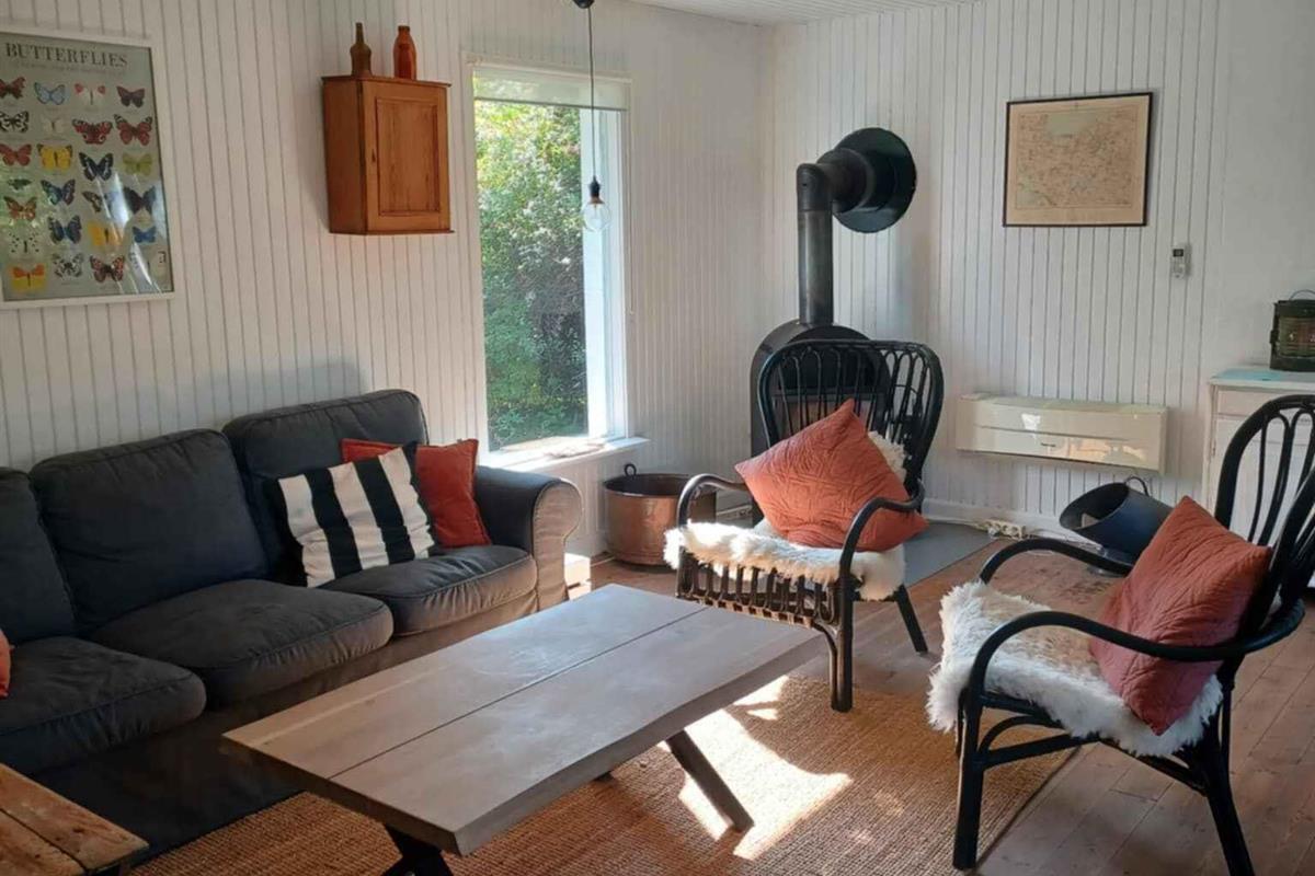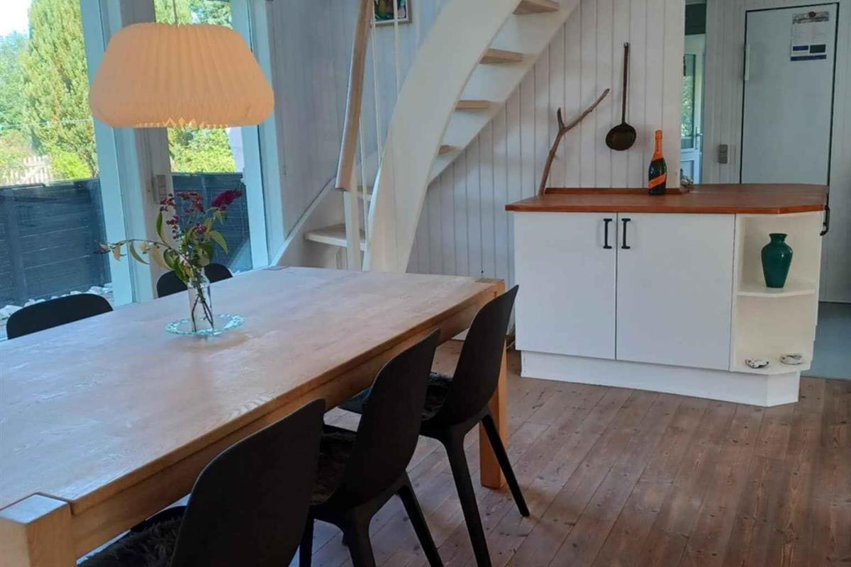 Gezellig zomerhuis in twee verdiepingen met goede indeling en veel licht. Zonnig perceel met gezellige hoekjes en omheinde achtertuin. Gewilde, rustige ligging, 150 m van fijn strand. Camping met winkel i nærheden.