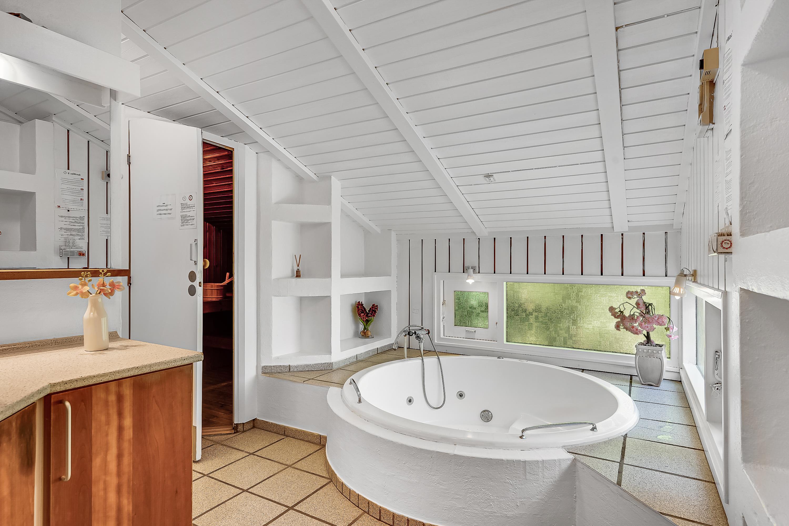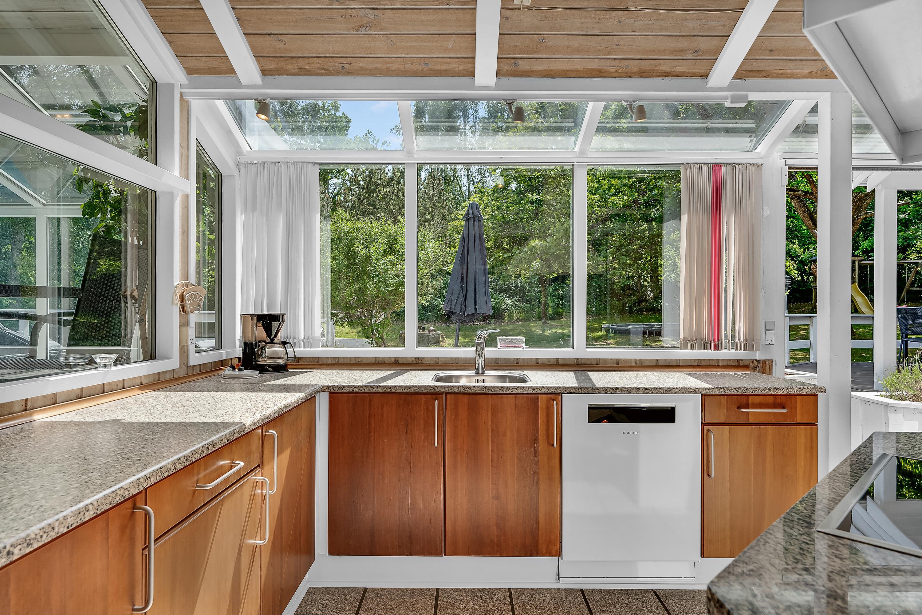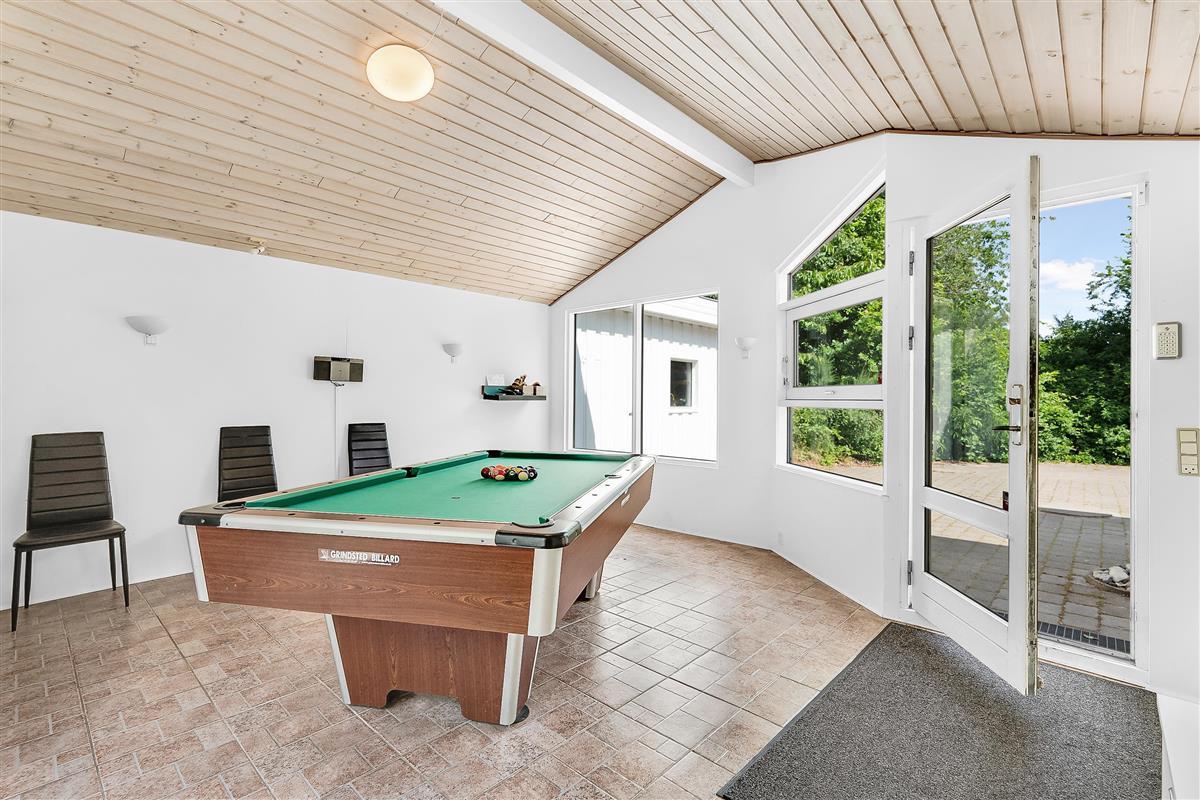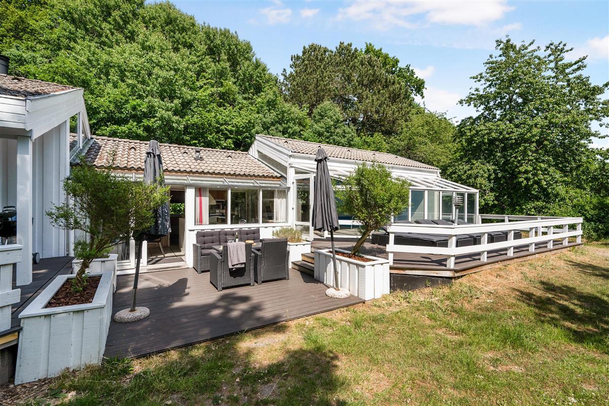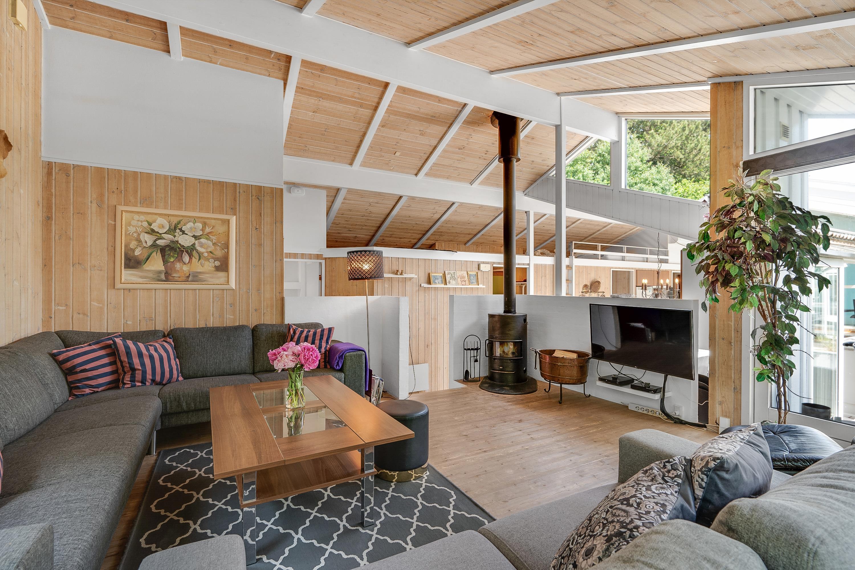 In a truly beautiful and peaceful natural area, just 100 meters from a lovely sandy beach, you’ll find this delightful and well-maintained holiday home with a swimming pool. The house, built on split levels, features a lovely living room, comfortably furnished with good furniture, a wood-burning stove, and a heat pump. The kitchen is spacious and includes a good dining area, with access to the large terraces of the house. There are two lovely bathrooms, one with a spa bath and access to a sauna. The house offers sleeping arrangements in 4 comfortable bedrooms. There’s also a separate activity room with a pool table.