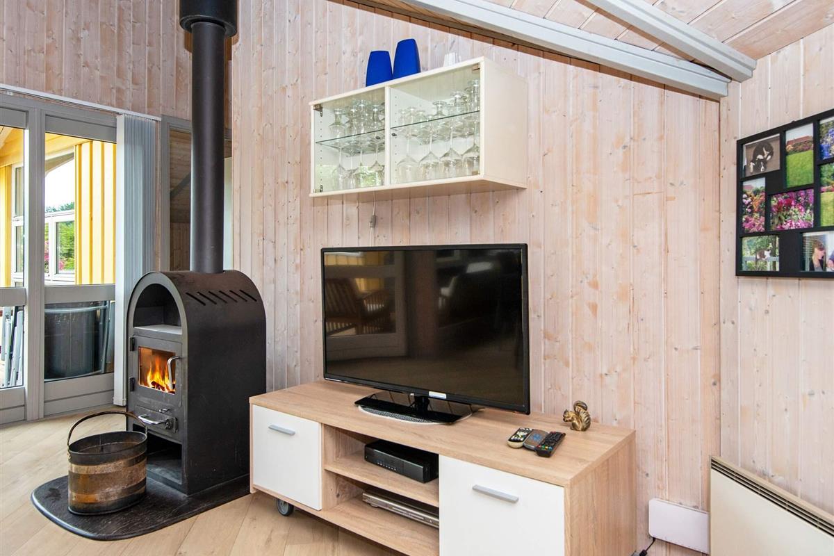 Das 1998 erbaute Ferienhaus präsentiert sich gut instand gehalten. Es ist umfassend ausgestattet und hat eine gute Kücheneinrichtung, inklusive Heißluftofen, Mikrowelle und Geschirrspüler. Es gibt ein Badezimmer mit Dusche und angenehmer Fußbodenheizung sowie ein praktisches Gäste-WC. In der Sauna und im Whirlpool können Sie sich wunderbar entspannen. Im Wohnbereich stehen TV, mit einigen deutschen Sendern zur Auswahl, sowie WLAN und Stereoanlage bereit. Es gibt auch einen Holzofen für die kühlere Jahreszeit. Vier Schlafzimmer zur Auswahl, zudem Kinderbett und Hochstuhl für die ganz Kleinen im Haus.