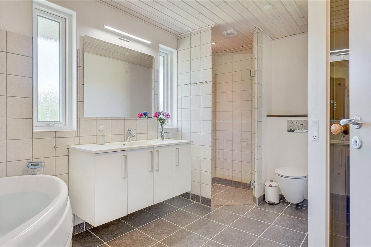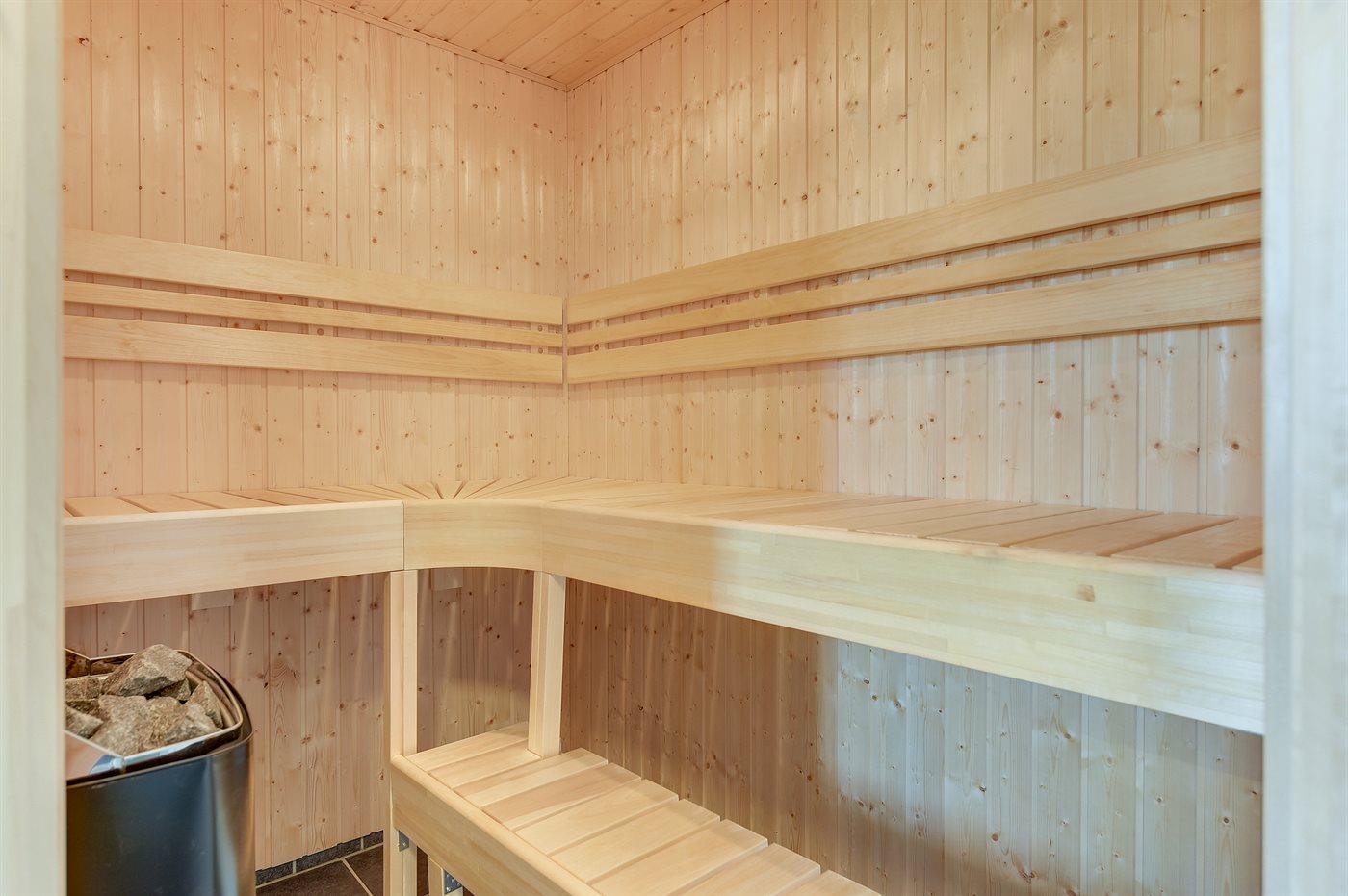 Er is 2 badkamers met douchehok en 2 toiletten. Er is vloerverwarming in 2 van de badkamers. De sauna biedt de gelegenheid tot ontspanning.