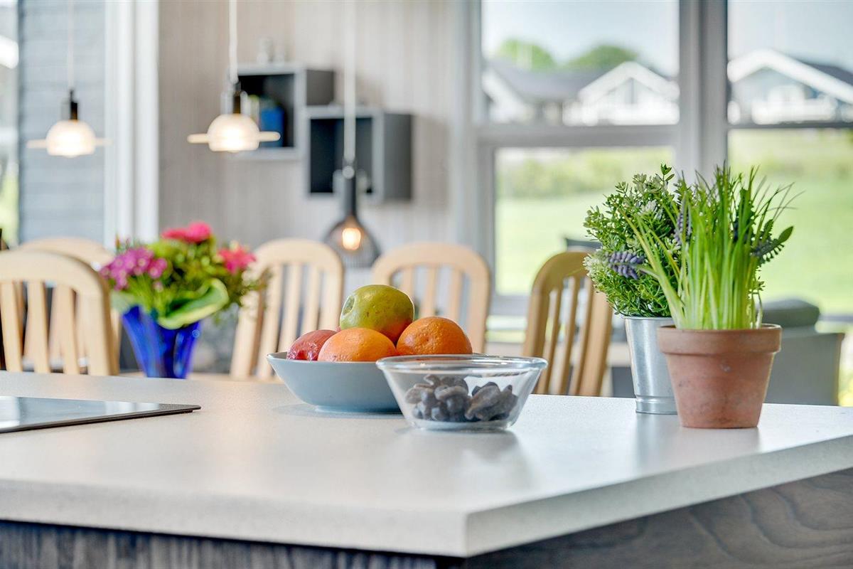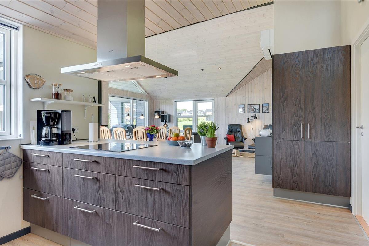 De keuken is uitgerust met koelkast Er is 4 inductiekookplaten, heteluchtoven, magnetron en vaatwasser.