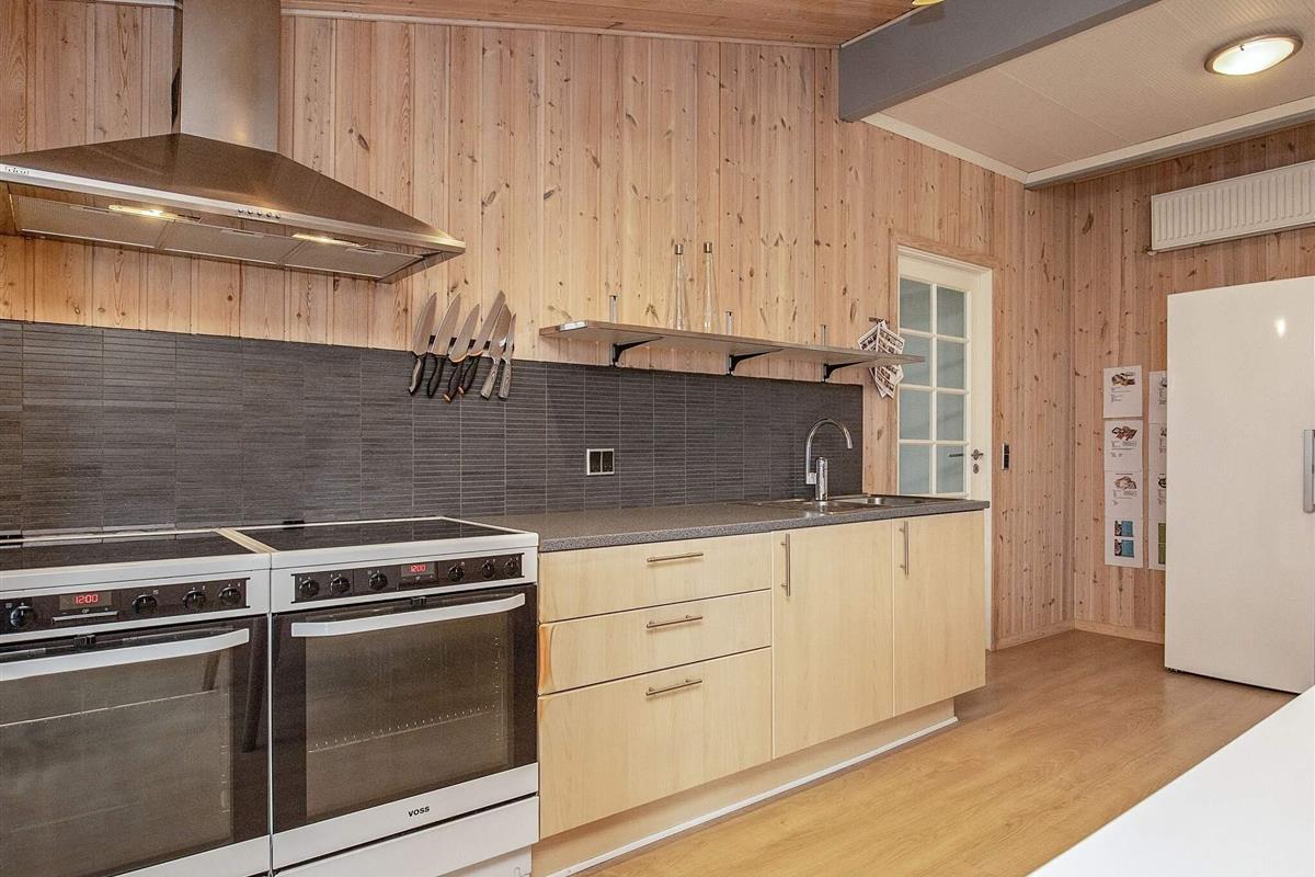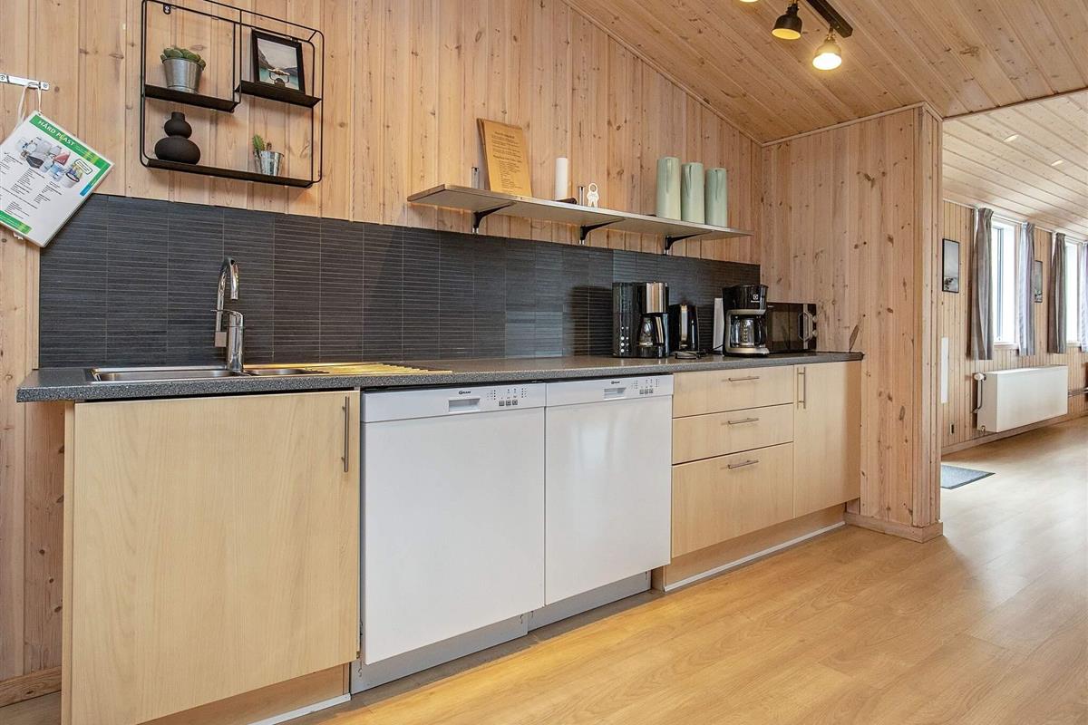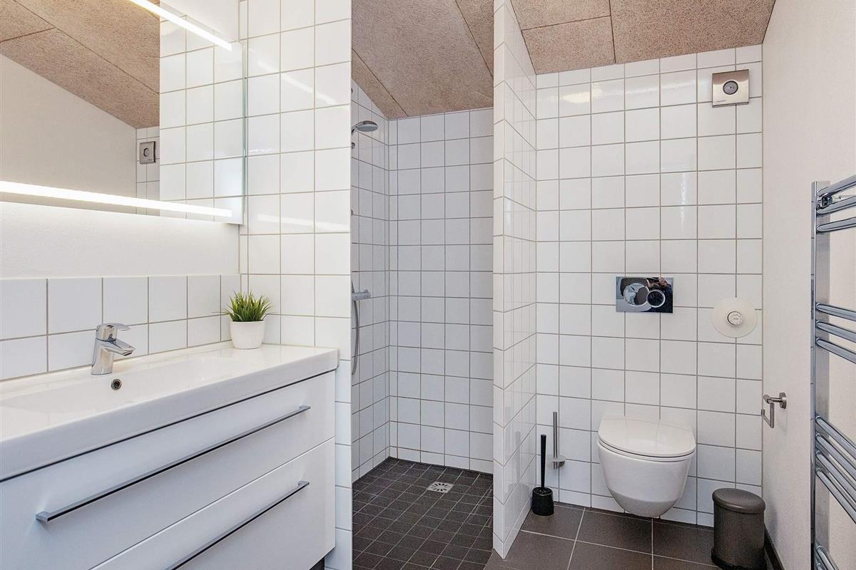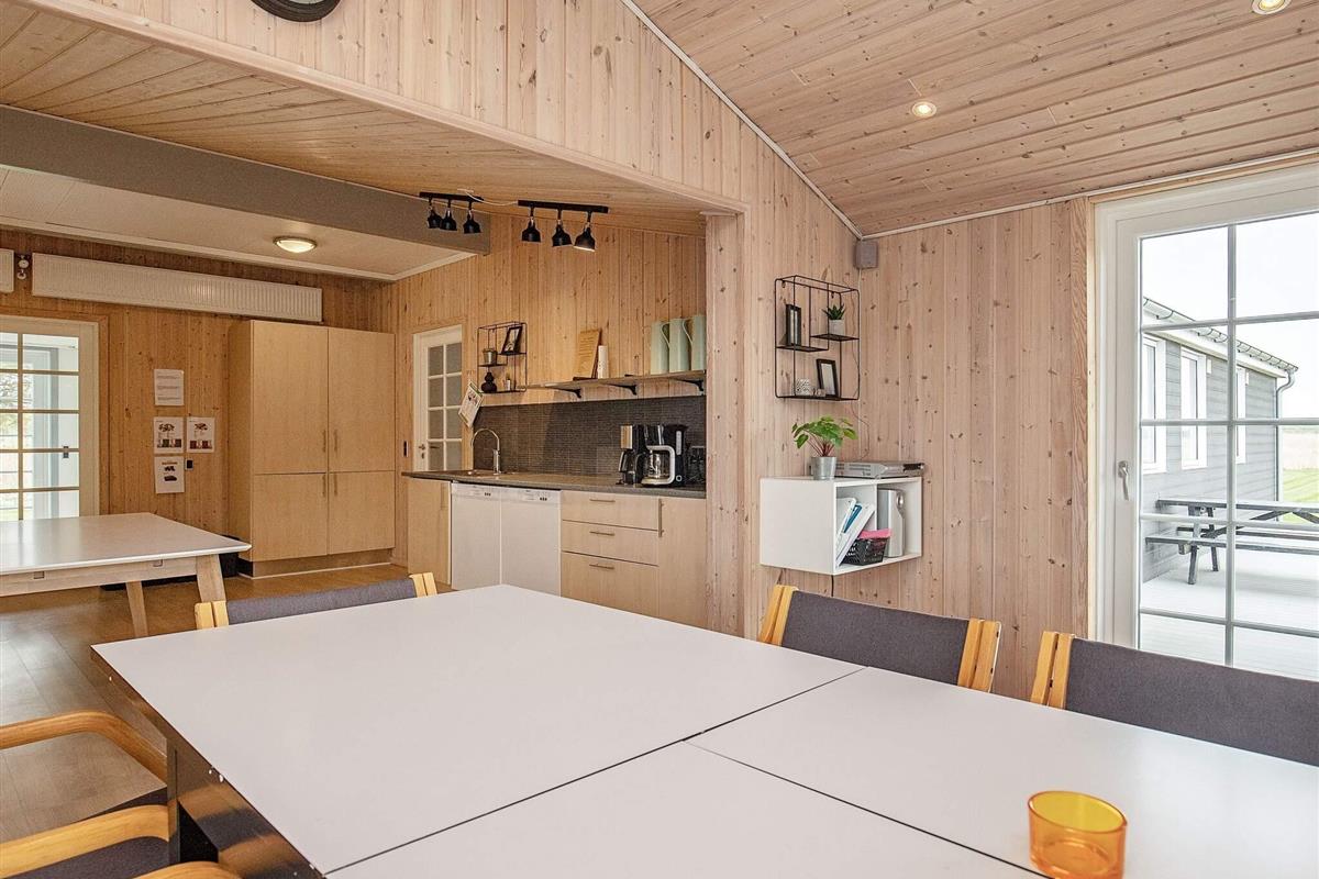 Den Mittelpunkt des Hauses bildet der offene Küchen-/Wohnbereich mit Essplatz und Zugang zu den beiden großen Terrassenflächen mit jeweils Sonne am Morgen oder am Nachmittag. Von hier aus schweift der Blick zu nahen See und über das landschaftlich reizvolle Feuchtbiotop Sillerslev Ørding. In eine Terrassenfläche wurde ein kleiner Sandkasten für die Jüngsten eingelassen.