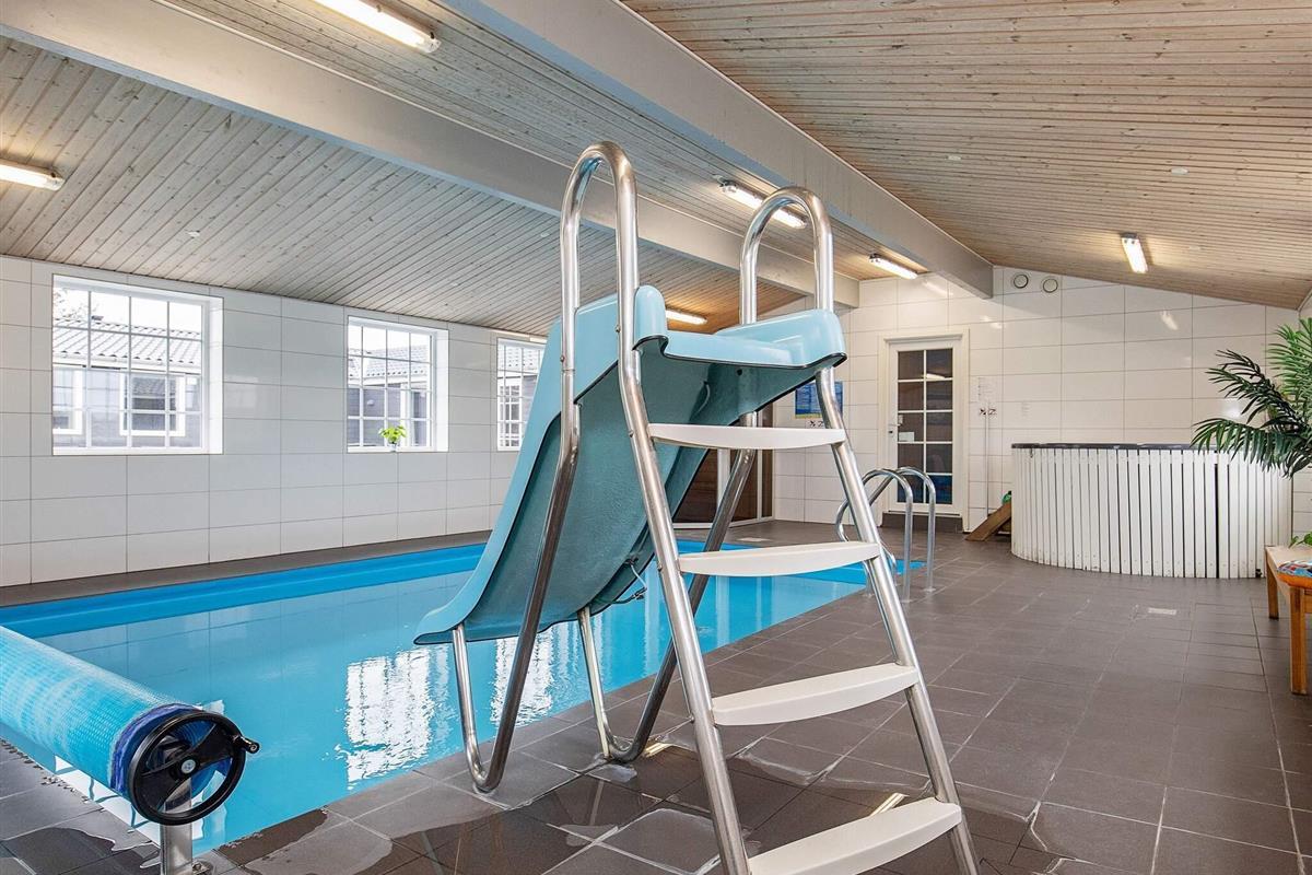 Der Swimmingpool des Hauses ist 24 m² groß und hat eine beliebte Wasserrutsche für Kinder. Genießen Sie hier den Badespaß in vertrauter Runde und relaxen Sie anschließend im Whirlpool oder in der Sauna, die im Poolbereich bzw. im direkten Anschluss daran untergebracht sind!