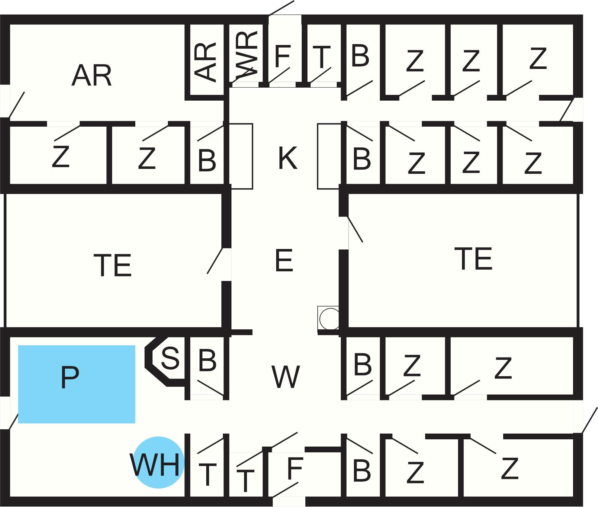 12 Schlafz.: (1DB)+(1DB)+(1DB)+(1DB)+(1DB)+(1DB)+(1DB)+(1DB)+(1B)+(1B)+(1DB+1B)+(1DB+1B), Kinderbett