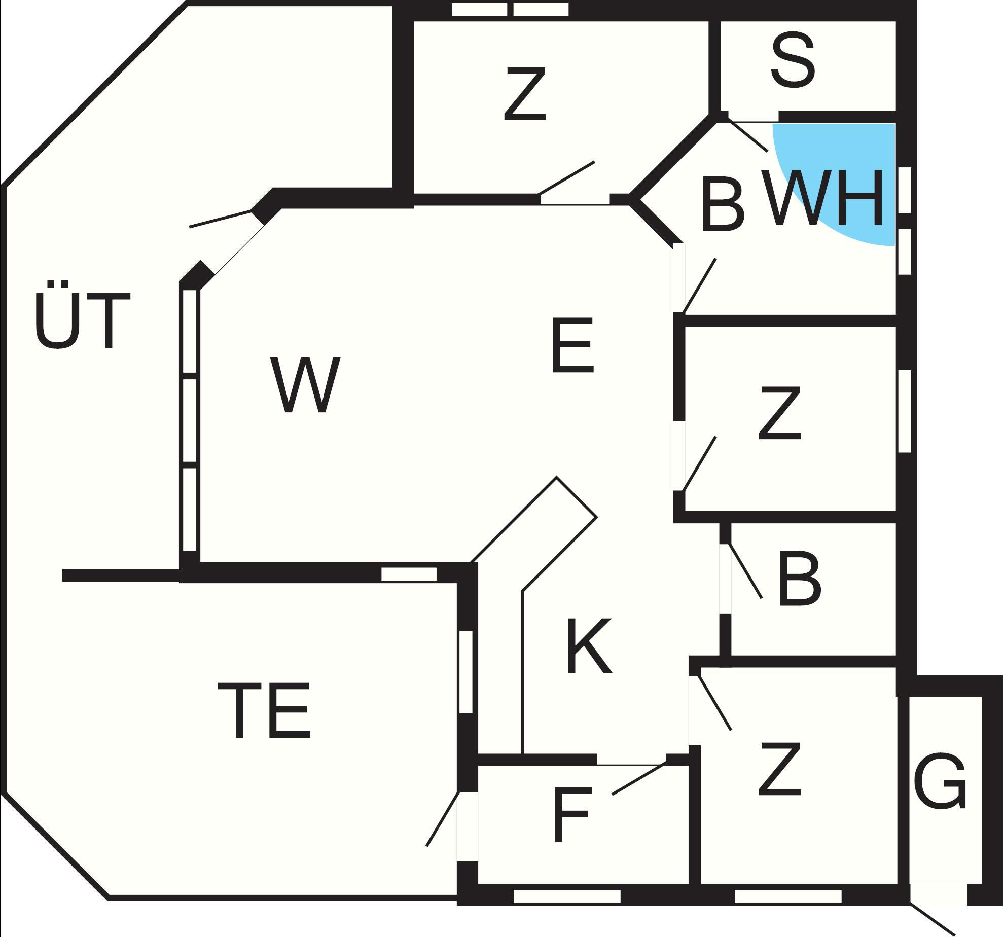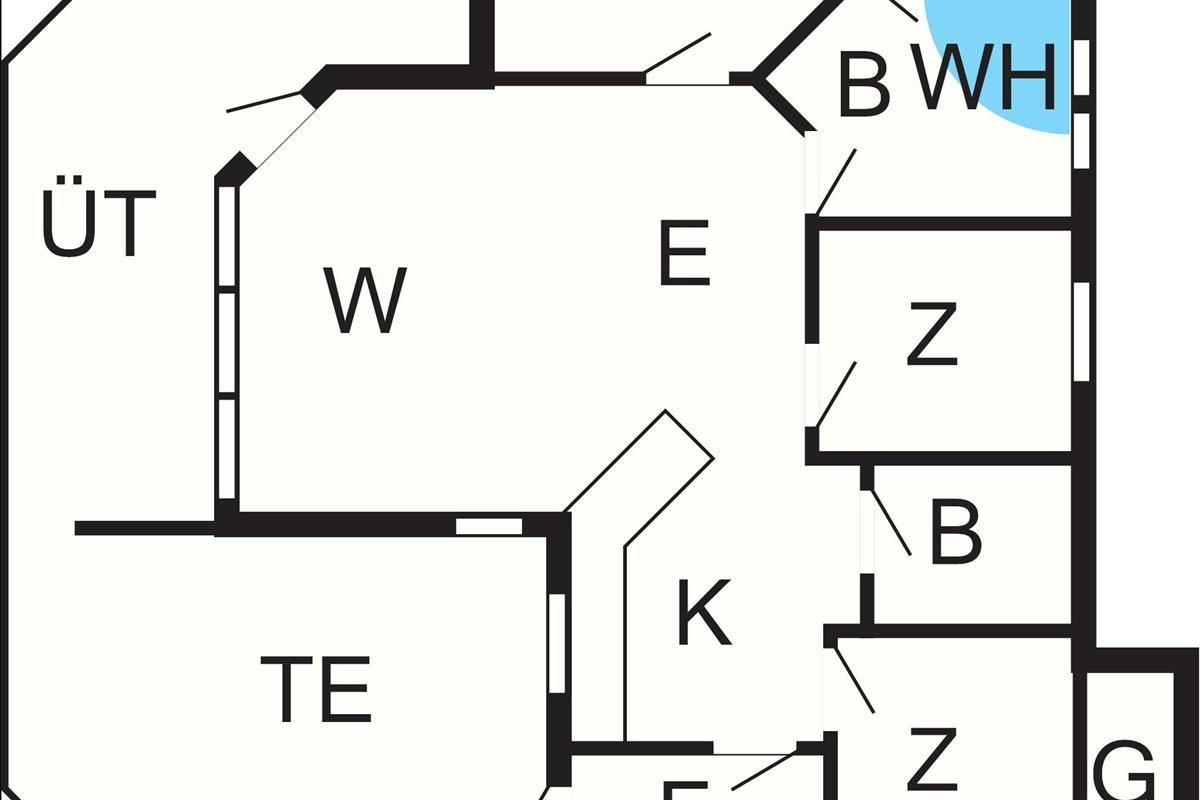 Bad: WC, Waschb., Dusche, Fußbodenheiz.