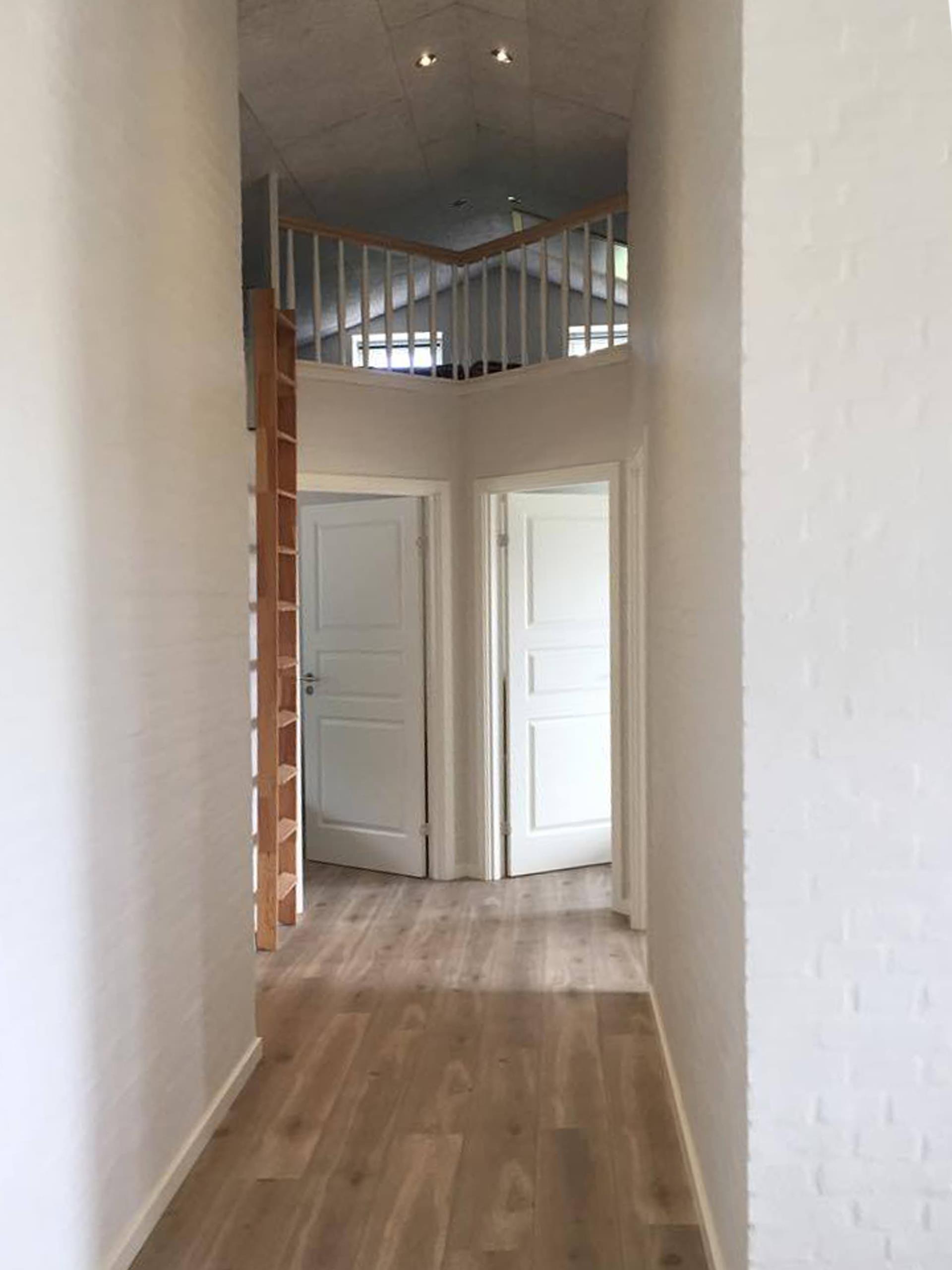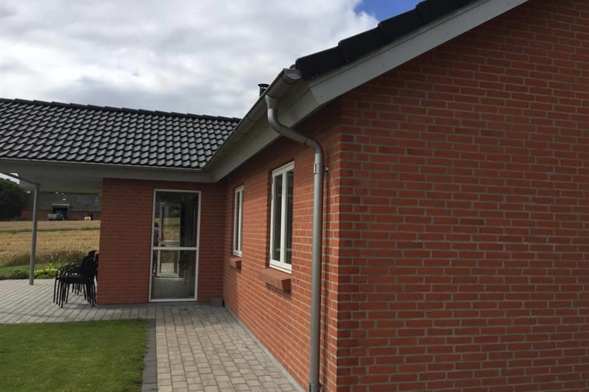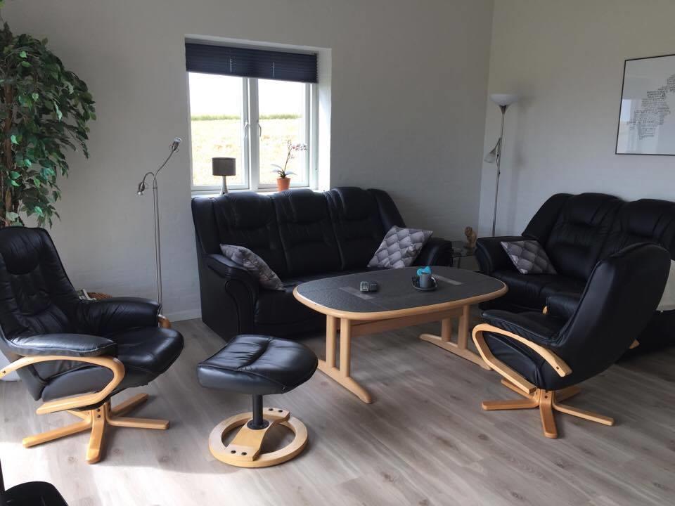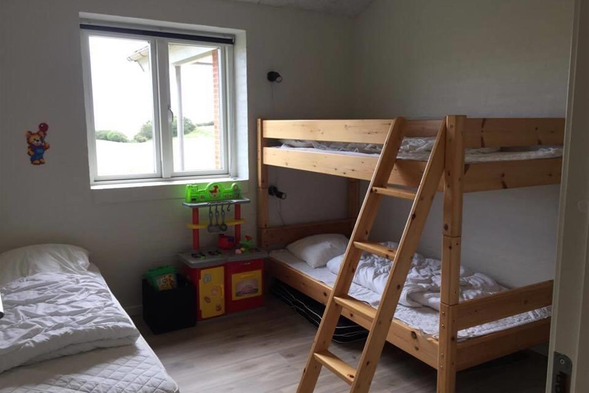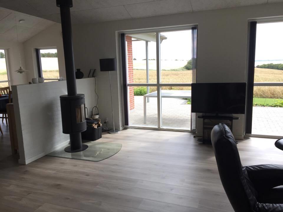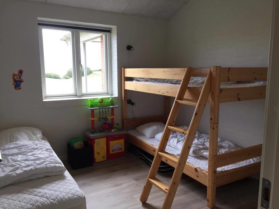 It has 4 rooms, where there are 2 beds in 3 of the rooms and the last room has a single bed and a 2-persons bunk bed. In addition, it has a large loft with 3 sleeping spaces for the children. Its large combined kitchen/dining and living room has a beautiful view of the fields and the Limfjord. It also has an open and covered terrace where possibility to find shelter around the house is not a problem.