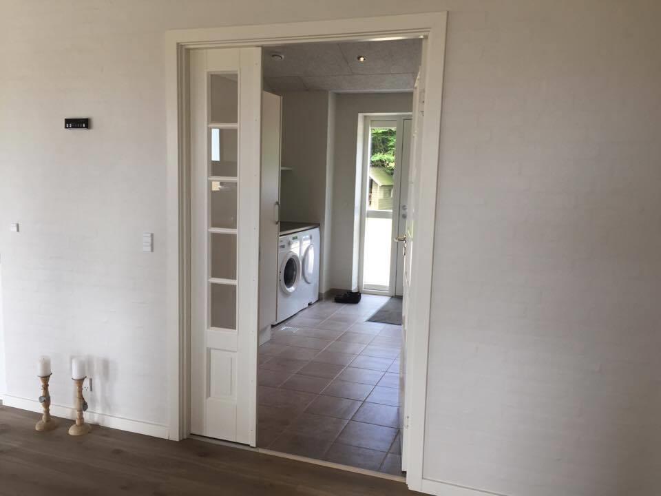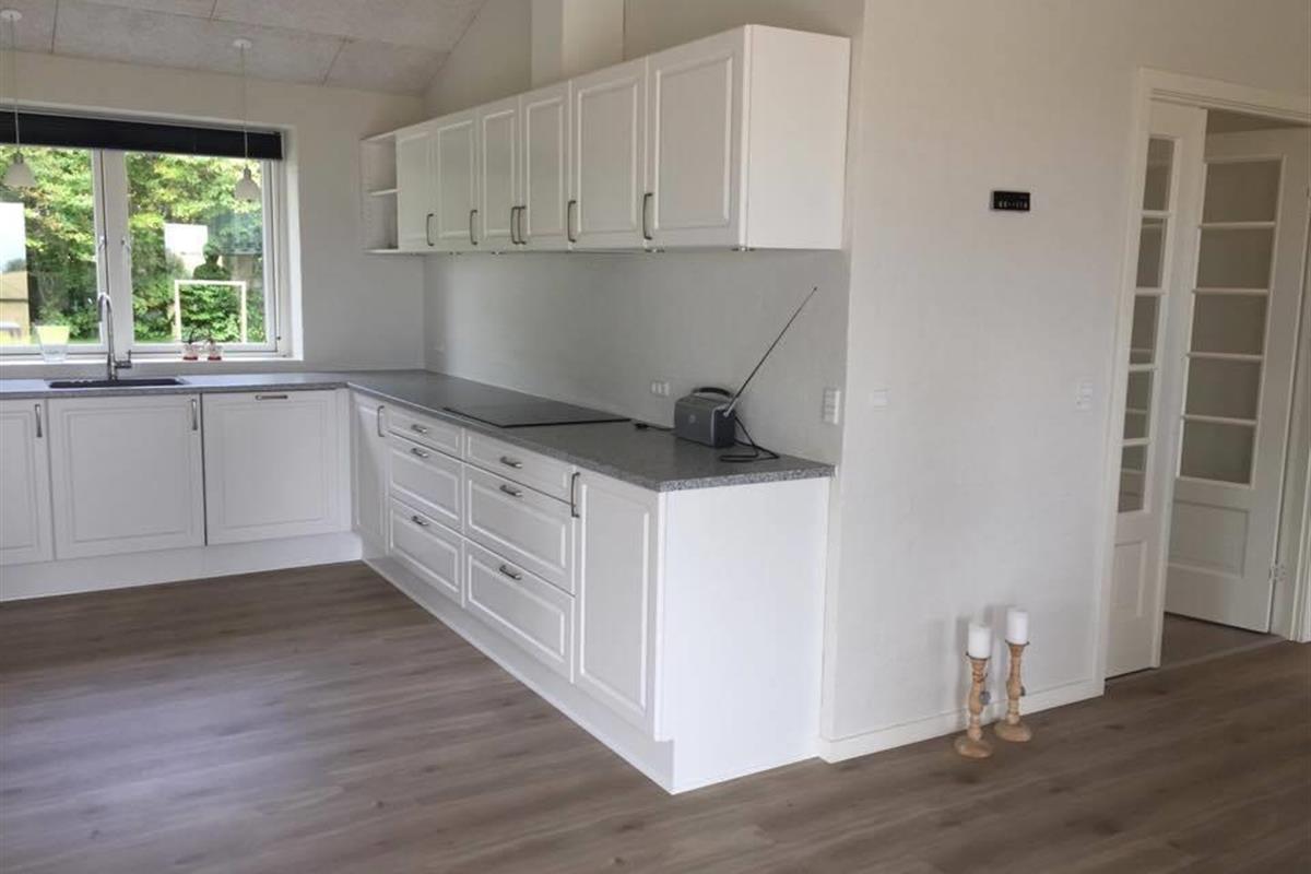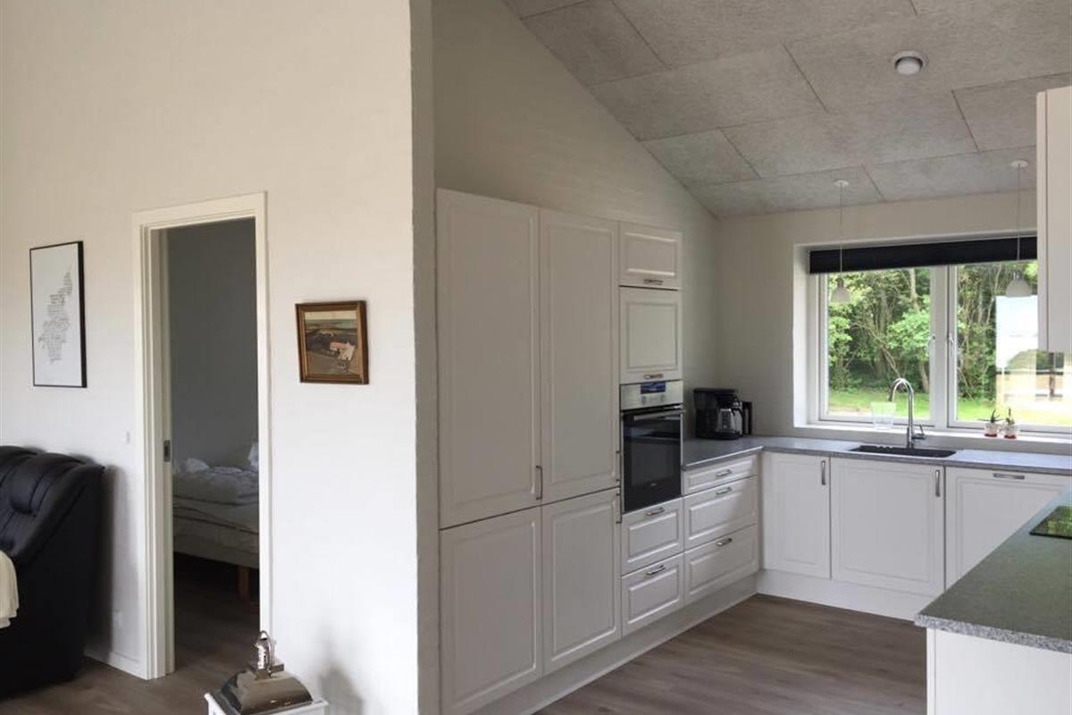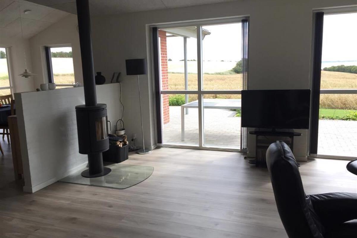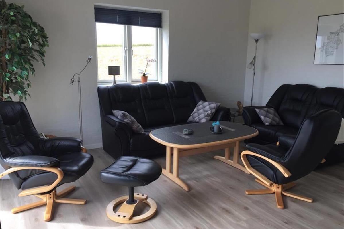 It has 4 rooms, where there are 2 beds in 3 of the rooms and the last room has a single bed and a 2-persons bunk bed. In addition, it has a large loft with 3 sleeping spaces for the children. Its large combined kitchen/dining and living room has a beautiful view of the fields and the Limfjord. It also has an open and covered terrace where possibility to find shelter around the house is not a problem.