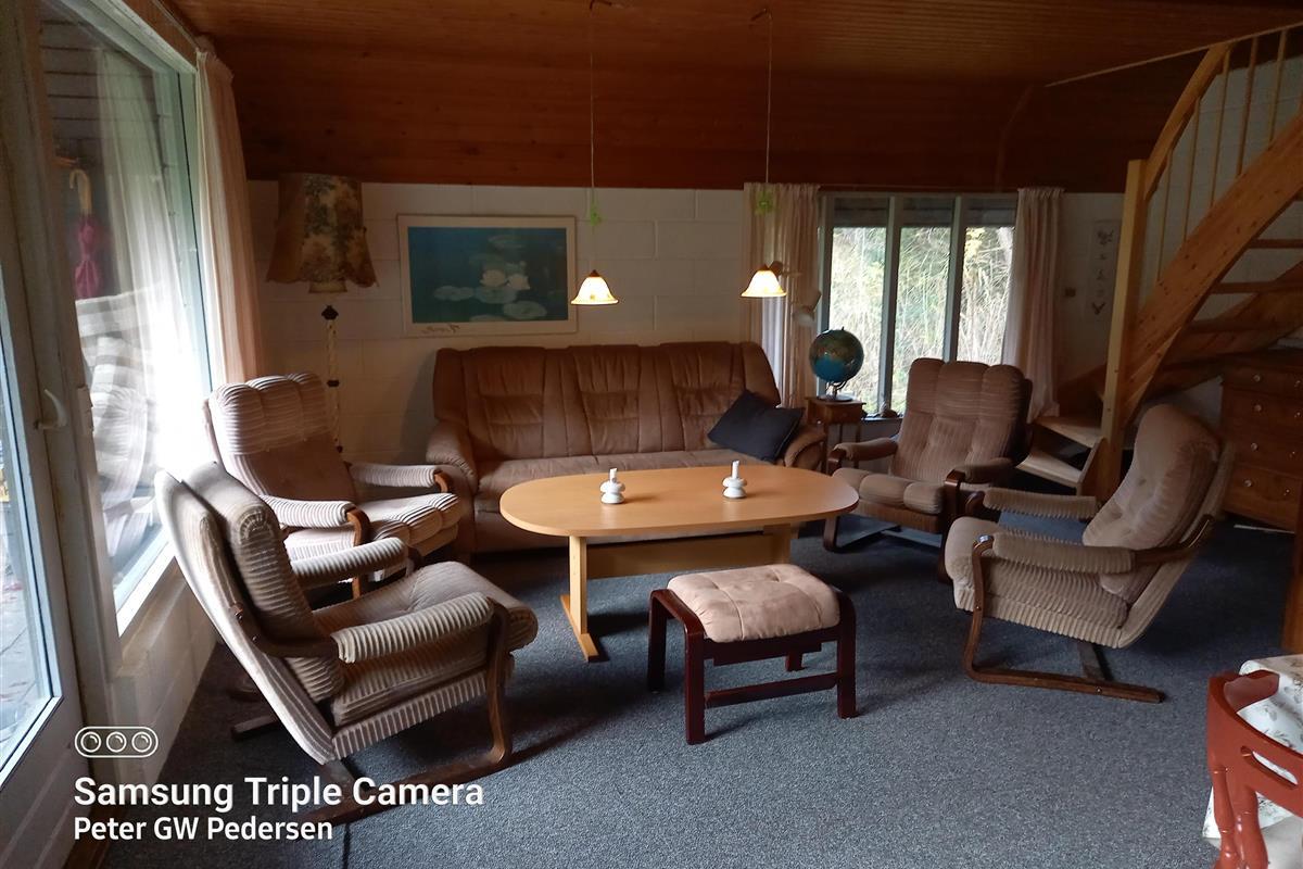 Attraktives Haus auf 2 Ebenen auf einem schönen geschlossenen und abgelegenen Ferienhausgrundstück in Sillerslevøre. Es bietet 3 Zimmer. 1 im Erdgeschoss mit 1 db. Schlafsofa. Im 1. Stock gibt es ein Zimmer mit 1 db. Bett und eines mit 1 db. Bett und 1 Couch. Von hier aus gelangt man in den Aussengang. Es gibt WiFi und TV mit Altibox. Offene und überdachte Terrasse. Gasgrill - Gas muss vom Mieter mitgebracht werden.