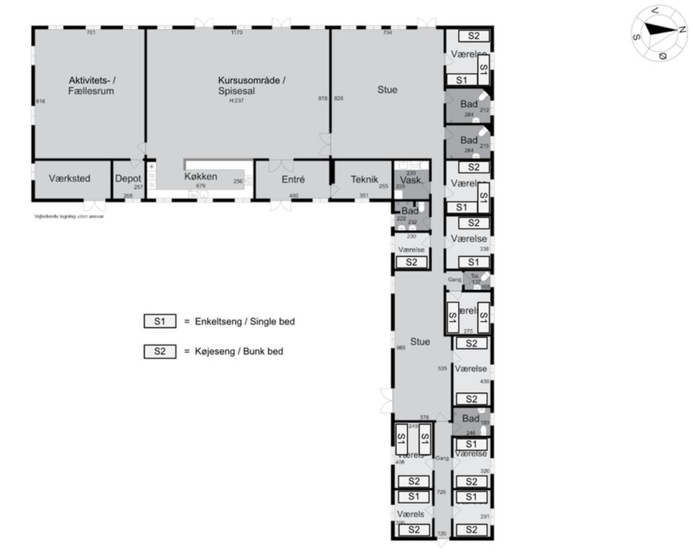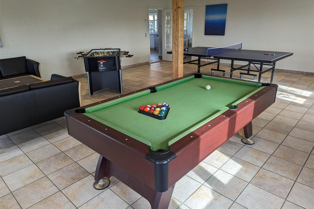 Hanklit holiday home, party rooms & course property is located in a fantastic natural area only 400m from Hanklit and has been continuously renovated over the past few years. The home has 32 sleeping places divided into single beds and bunk beds. Also 10 loose mattresses. However, there are only duvets and pillows for 32, so if you come more, you must bring your own. There are new mattresses in the bunk beds in 2020. In connection with the renovation, a large kitchen has been made with all modern facilities. The kitchen is connected to the large living room. There are 4 bathrooms with 5 showers and 5 toilets. There is a wireless network. Lovely activity room with various games, pool table, table tennis and table football. Apple TV and Google Chromecast. On the large west-facing terrace there are 2 large party grills and a fire pit. From January 2022, there is a 10-person sauna cabin.