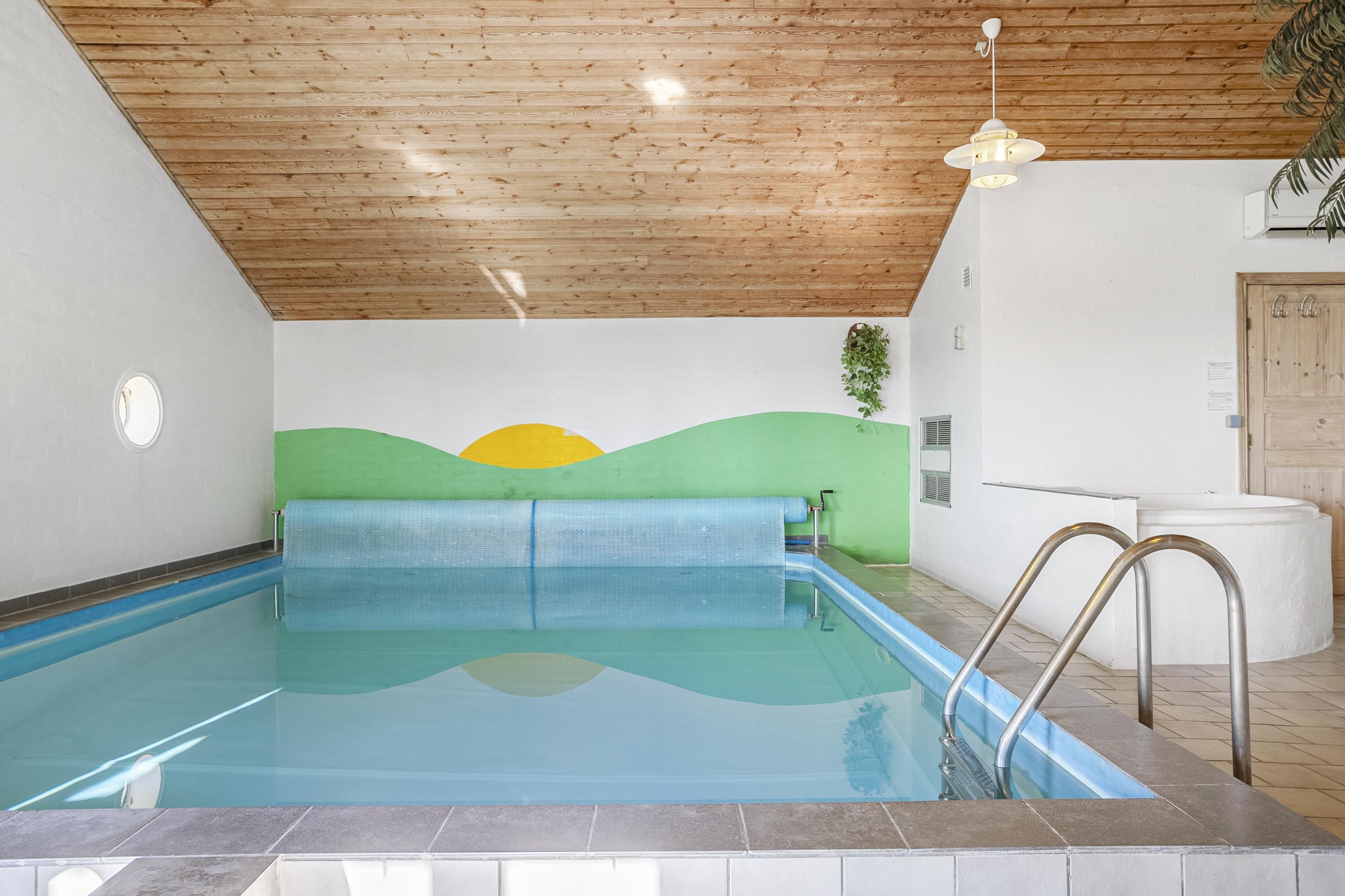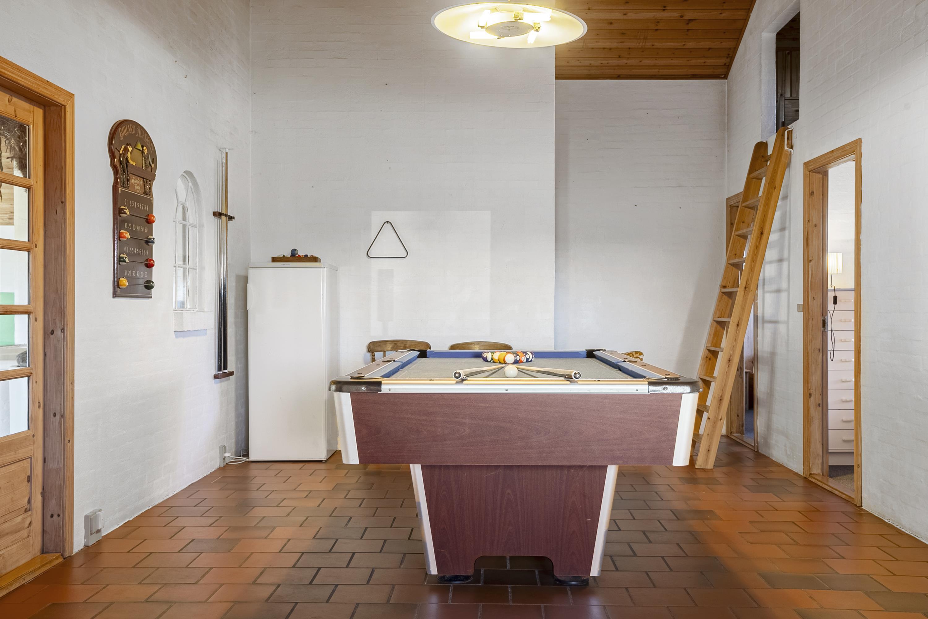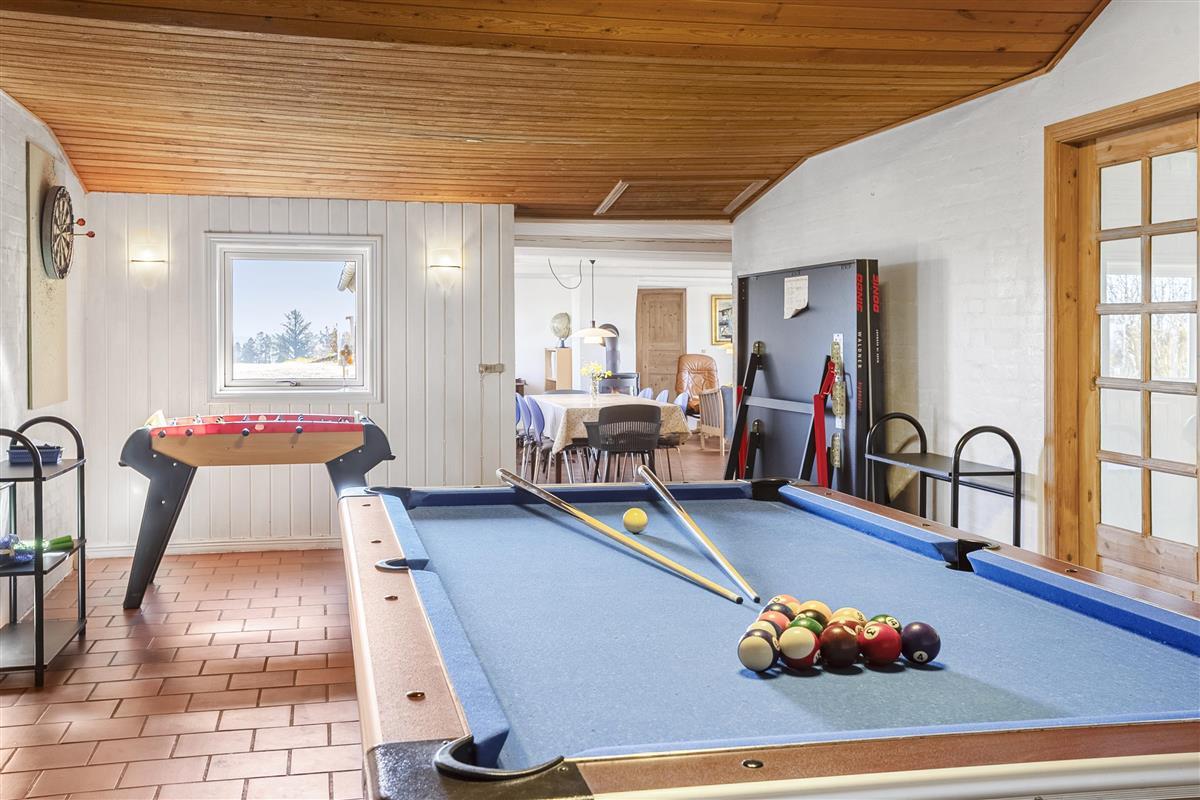 Inside, you’ll find a large living room with a wood-burning stove and open kitchen – perfect for cozy evenings. The house features a private indoor pool, hot tub, sauna, and an activity room with billiards, table tennis, and darts. Free WiFi, a flat-screen TV, and energy-efficient solutions such as solar panels and a heat pump make the home both modern and sustainable.
