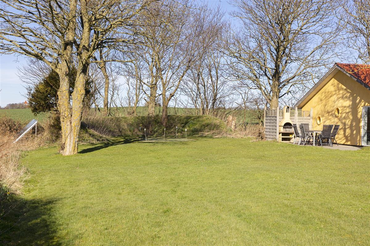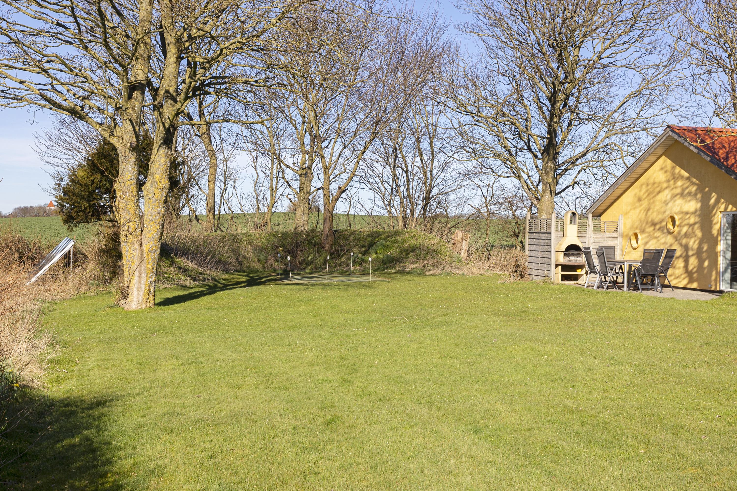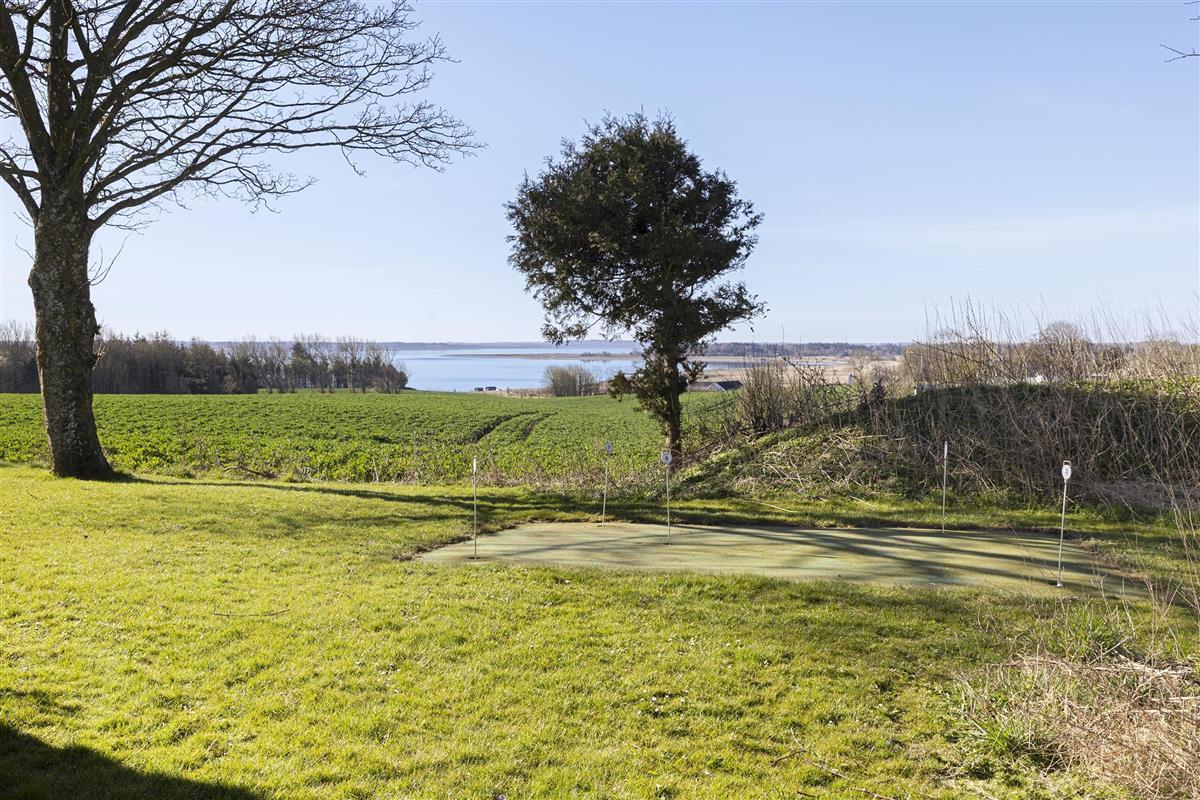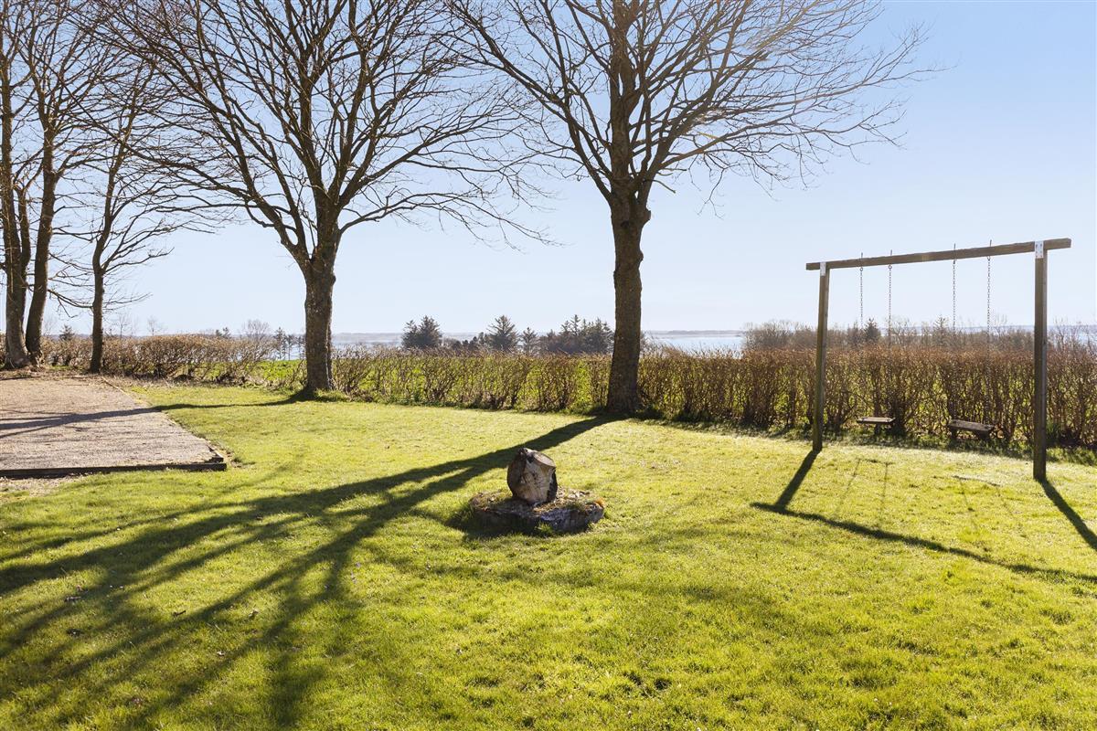 Outdoors, the 1800 m² natural plot includes a barbecue area, putting green, pétanque court, swings, and a sandbox – ideal for play and relaxation. You can also explore the fjord with the house’s original Limfjord kayak.