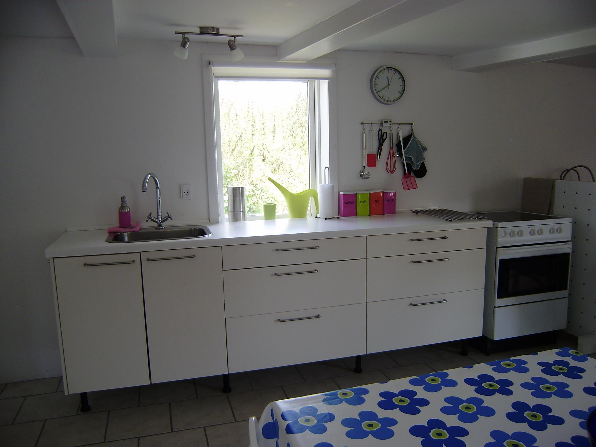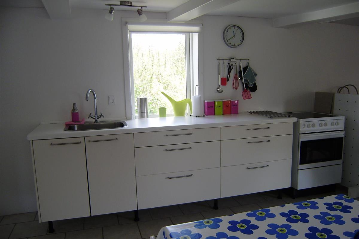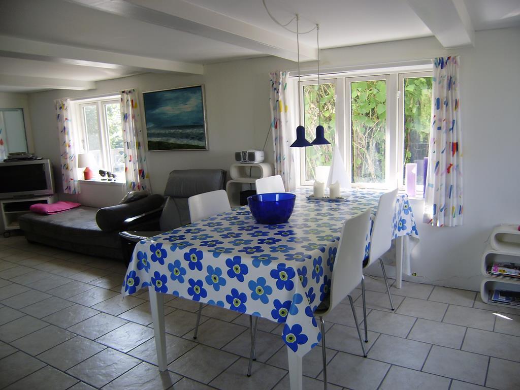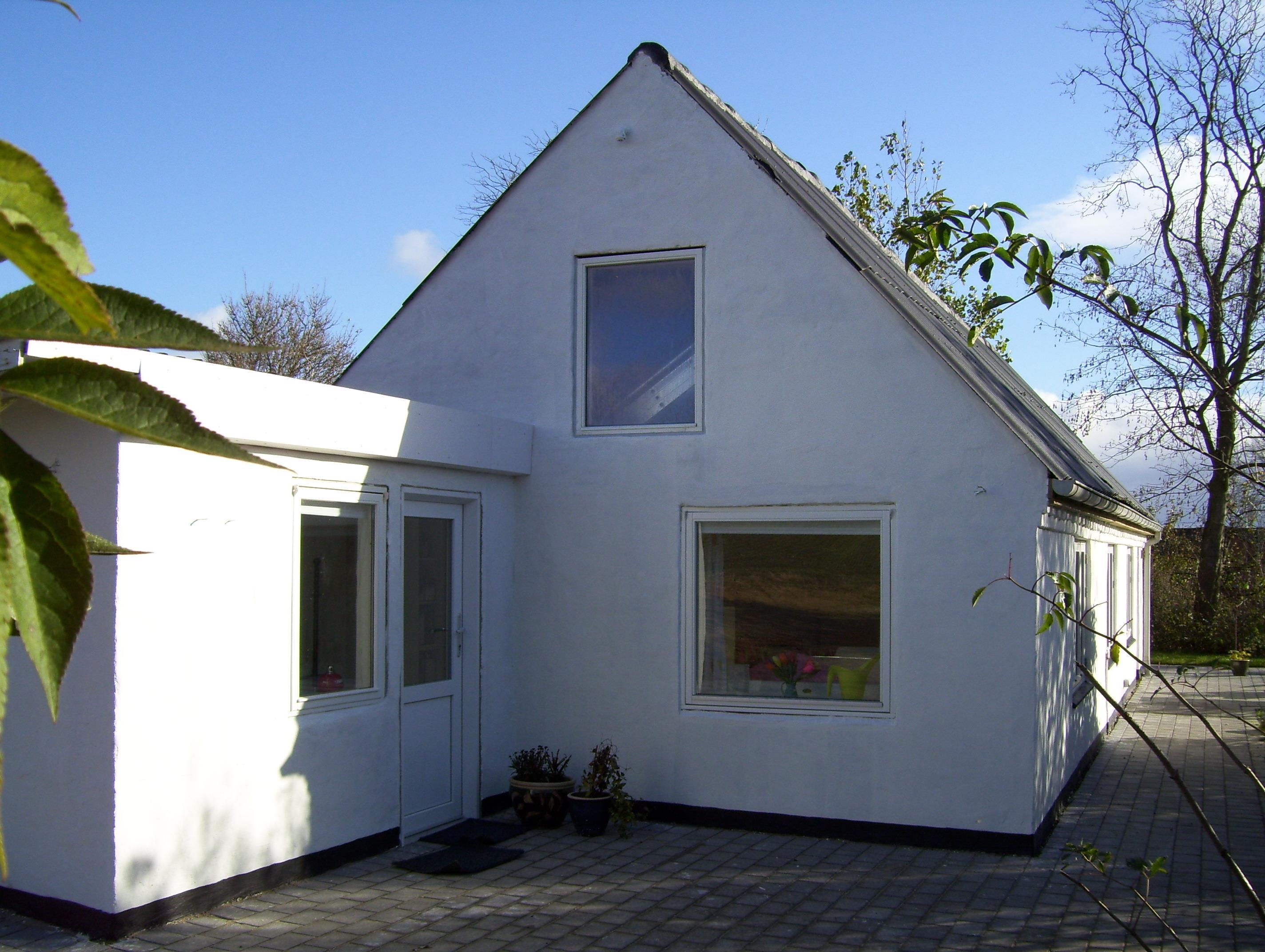 White-painted wall and the floor is made of quarry tiles all-over. Low ceiling. 1 room: (1DB) + 2 DB in the livingroom. 70m2 terraces around the house with garden furniture and grill. The house is located near katalog nr. 16, so the house is ideal for 2 families who wishes to get on a holiday together. The house is located in a peaceful surrounding. Smoking is prohibited. Pet is not allowed. WiFi.